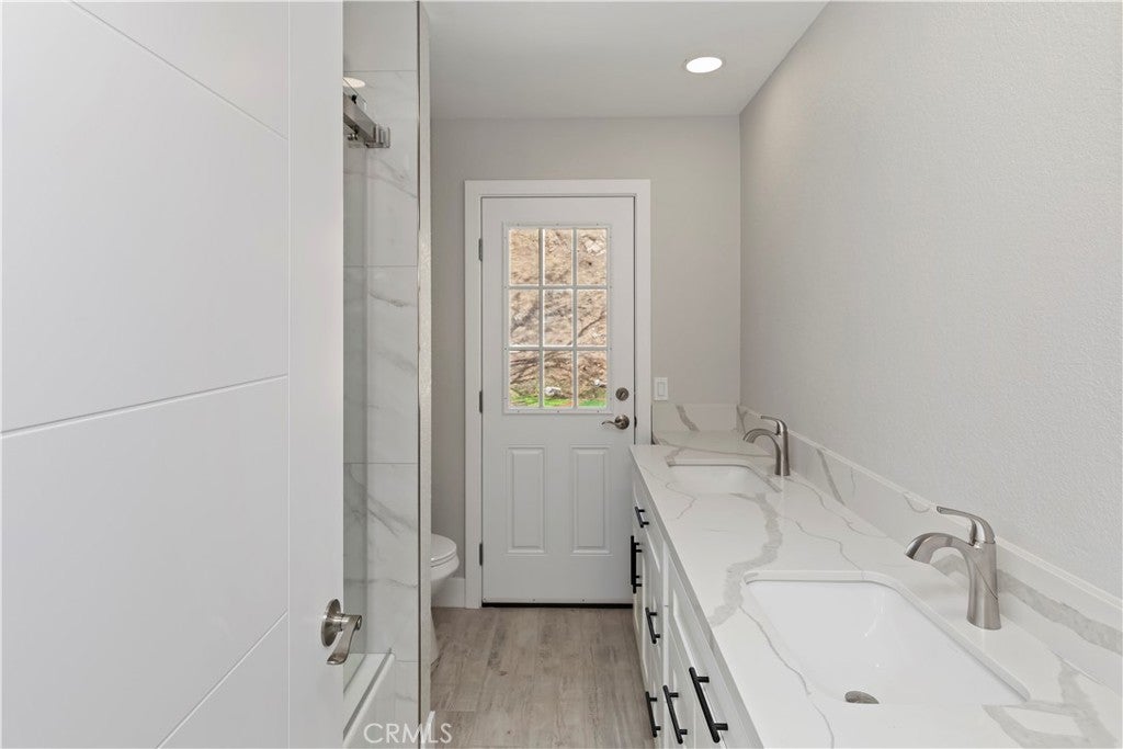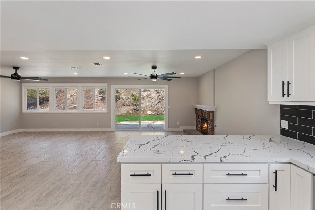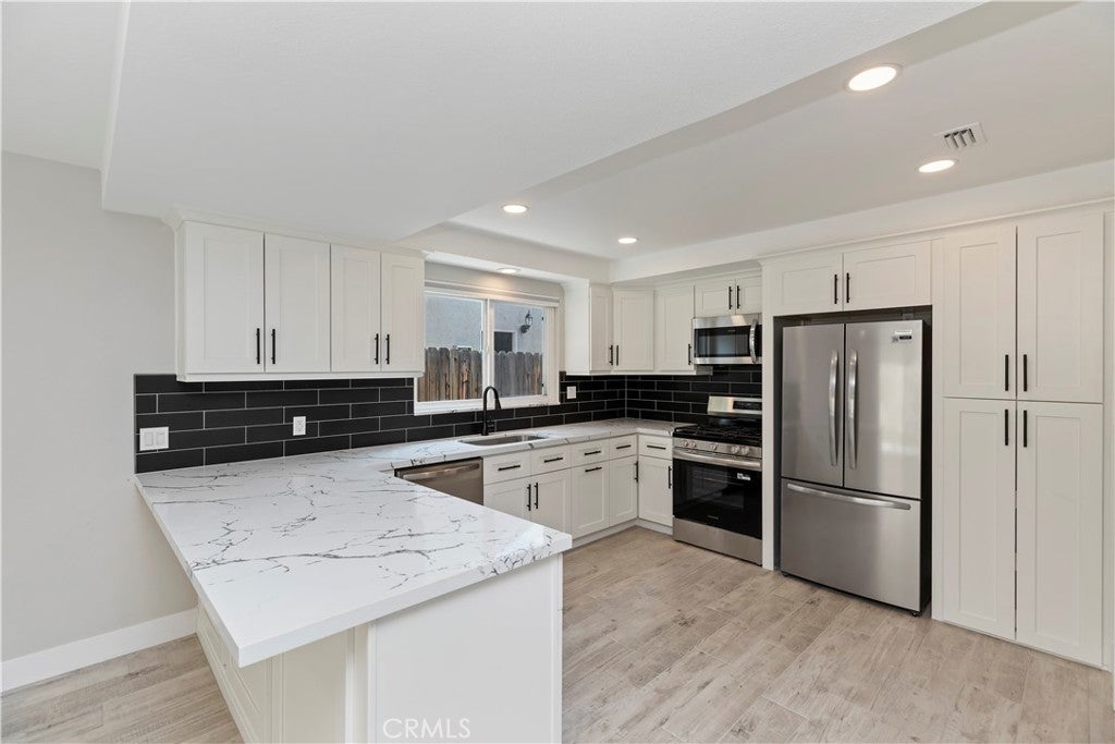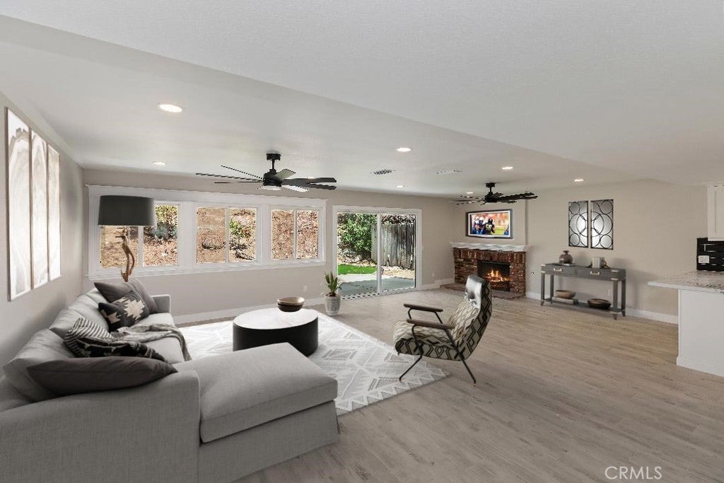 Experience refined living in this fully remodeled Corona Hills residence, where every detail reflects quality craftsmanship and modern elegance. Featuring 3 bedrooms, 2 baths, and 1,623 sq/ft of beautifully designed living space, this home is completely turnkey. The grand entry welcomes you with a custom Dutch glass door, leading into an expansive open-concept floor plan. A spacious family room with a classic wood-burning brick fireplace flows seamlessly into the designer kitchen, appointed with quartz countertops, breakfast bar, white Shaker cabinetry with soft-close features, lazy Susan, stainless steel sink, and a premium suite of stainless steel appliances—including refrigerator. Retreat to the primary suite with plush new carpeting, a large walk-in closet, and a spa-inspired bath with quartz counters, custom cabinetry, and a frameless glass shower. Two additional bedrooms, equally spacious, complete the home’s private quarters. Additional highlights include wood-look plank tile flooring, new interior and exterior paint, dual-pane windows, tankless water heater, recessed LED lighting, modern baseboards, and a convenient indoor laundry room. The backyard offers tranquility with a 25-year-old blue jacaranda tree and a charming brick patio—perfect for private gatherings. With no HOA, low taxes, and a prime location minutes from shopping, golf, and less than 2 miles to commuter train station, this is the Corona Hills home you’ve been waiting for. Just Move In!