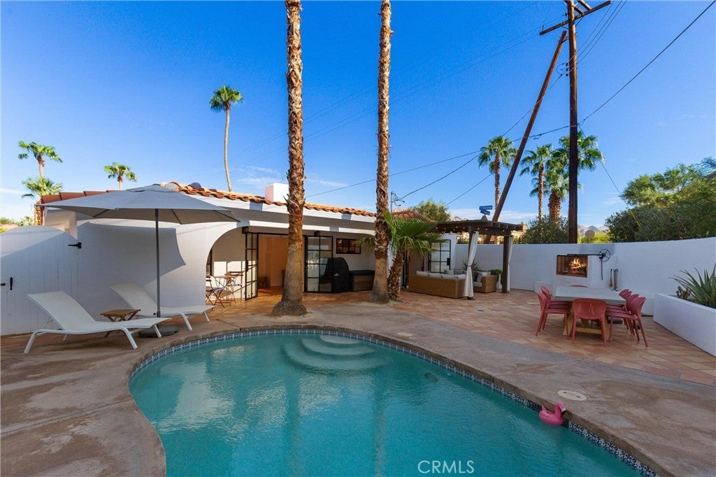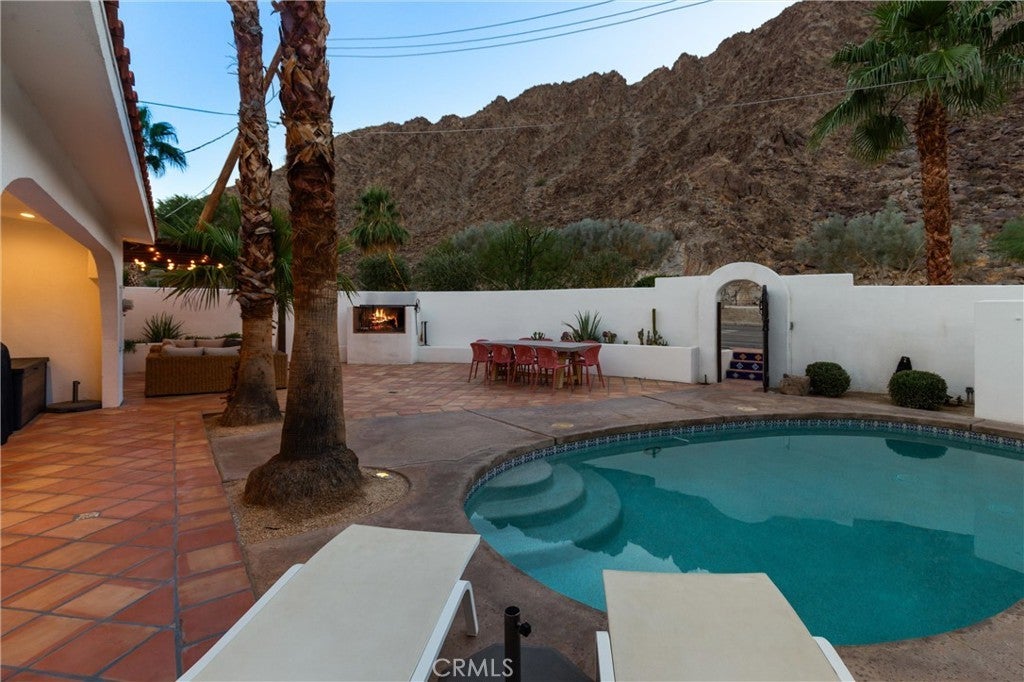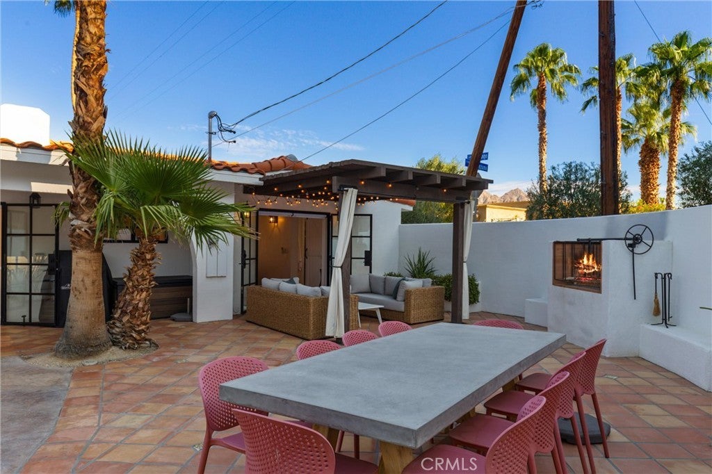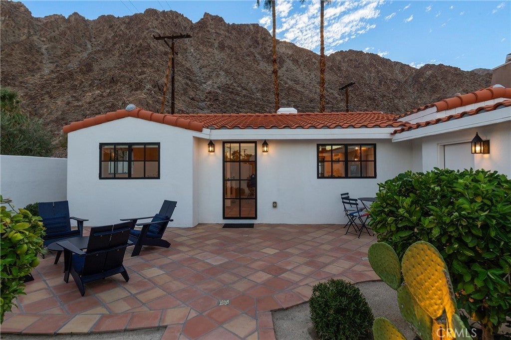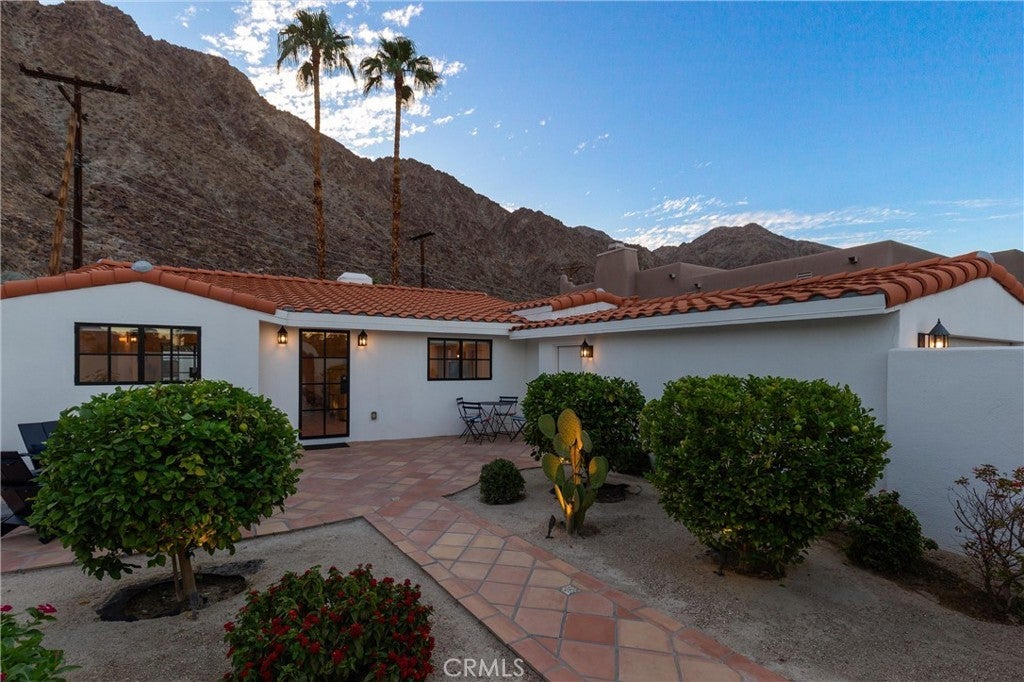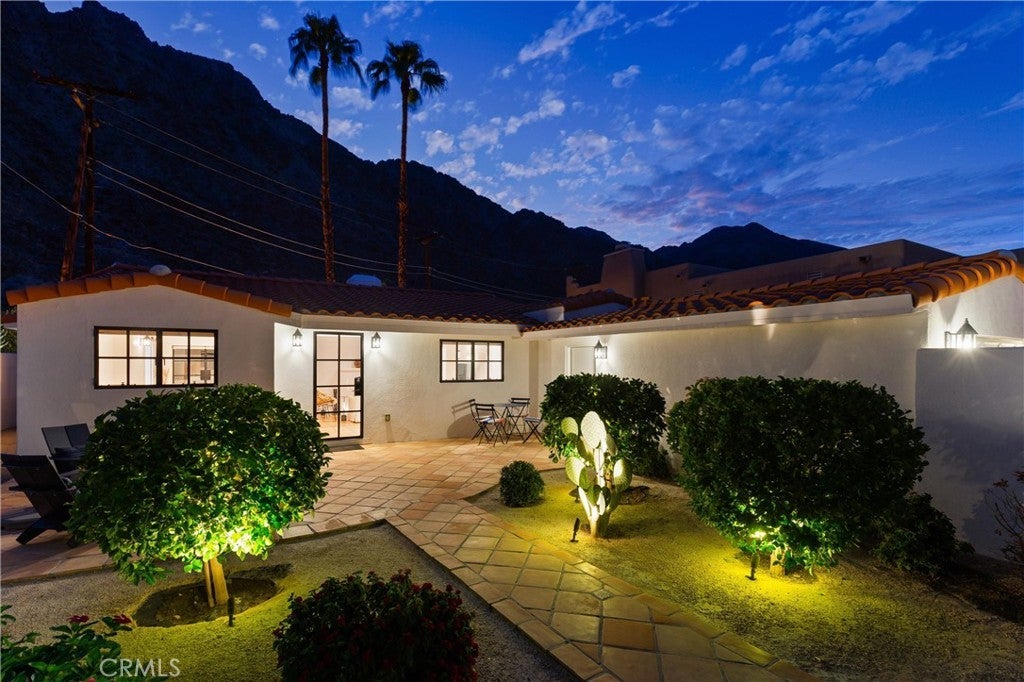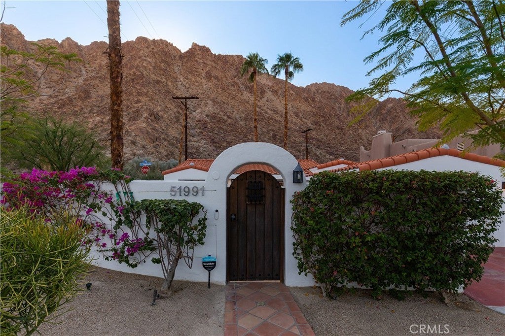 Discover the magic of old California at this extraordinary 1930s Spanish Casita, one of only 60 original homes built in the Historic La Quinta Cove. Nestled on a prime corner lot with breathtaking unobstructed mountain views, this rare desert treasure perfectly marries authentic period charm & modern luxury with no expense spared. Step through the gates into your private courtyard oasis, where flourishing citrus trees add charm to the enclosed front patio. This intimate space captures the perfect morning sun to take in the dramatic mountain backdrop. The heart of this casita is the beautifully remodeled kitchen, featuring premium Bertazzoni induction range, Viking refrigerator/freezer, & KitchenAid dishwasher. The fully furnished turnkey home creates a seamless transition from indoor to outdoor living through dramatic double glass French doors that open wide to blur the lines between the remodeled interior & your private backyard sanctuary, where a saltwater pool, built-in Santa Maria grill, & plenty of space for entertaining await. The covered lounge area provides the perfect retreat for enjoying your private slice of desert paradise. The living room showcases the home's original character with its historic fireplace, while beautiful saltillo tiles flow throughout the home. Individual mini-split systems & elegant Minka Aire ceiling fans ensure year-round comfort throughout. The primary suite offers direct patio access, stunning mountain views, & an en suite bath adorned with handcrafted American Southwest tile work. On the opposite side of the home, two additional bedrooms share a jack-and-jill bathroom. This corner lot paradise sits directly adjacent to the mountains and across from Montezuma Street's popular biking & hiking trails with access right out of your back gate. Located just minutes from Old Town La Quinta, which features many dining & shopping options, as well as a weekly Farmers Market, the La Quinta Art Festival, and more. The home is perfectly positioned near championship golf courses, Indian Wells Tennis Garden, Acrisure Arena, and Indio's world-famous music festivals. Downtown Palm Springs is less than 30 minutes away, placing you at the heart of the desert's premier entertainment destinations. This property includes an EV charger and benefits from the Valley's lower utility rates. A once-in-a-lifetime opportunity to own a piece of La Quinta Cove history – where 1930s Spanish colonial architecture meets today's luxury desert lifestyle!