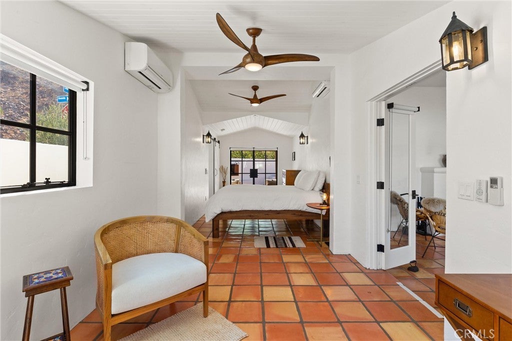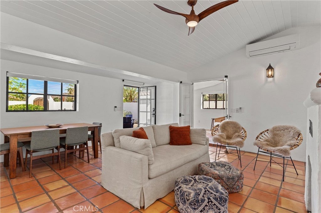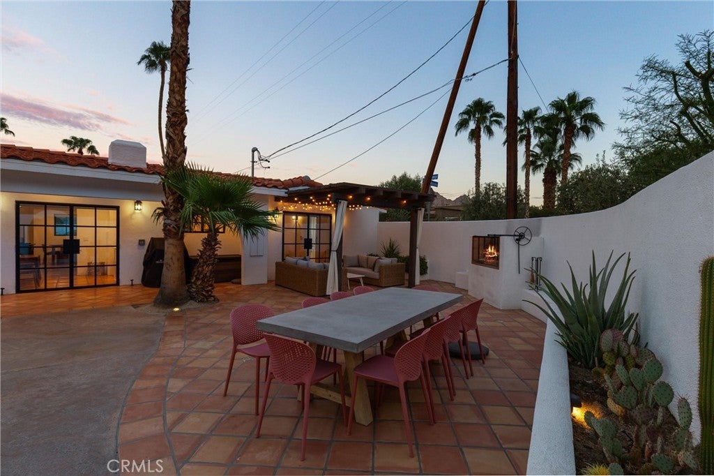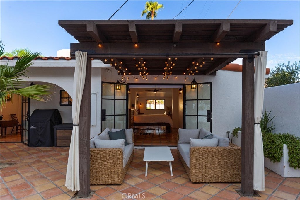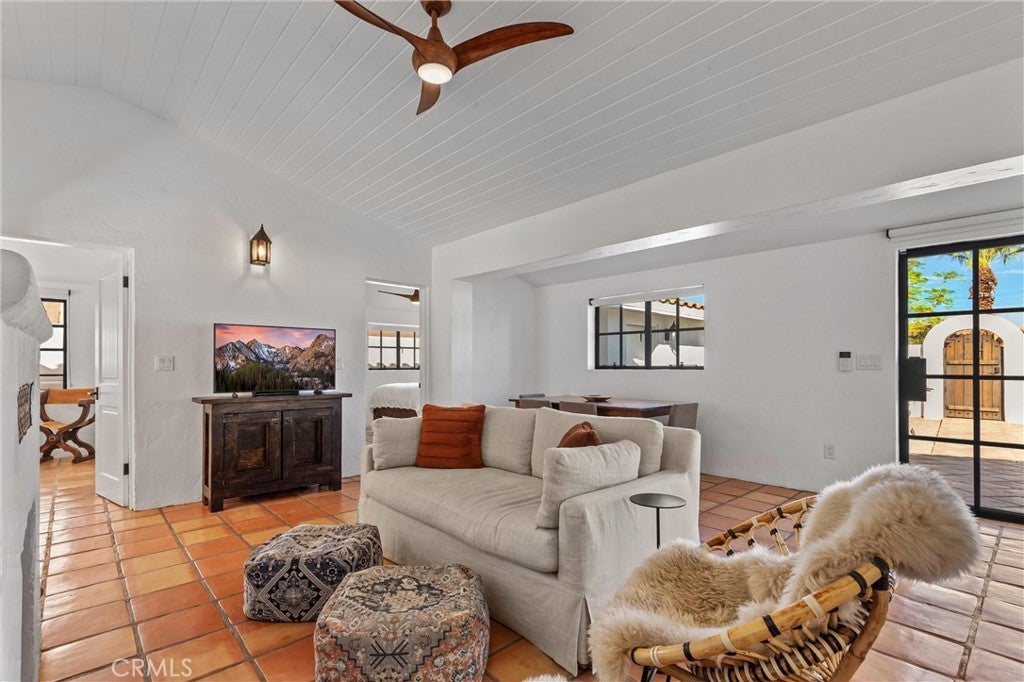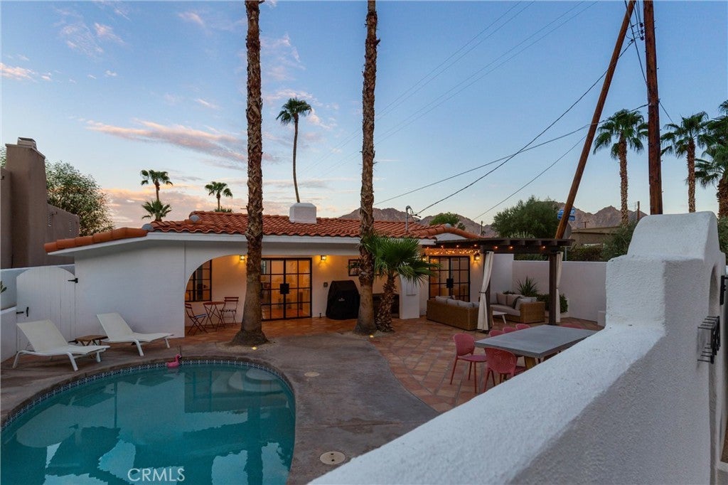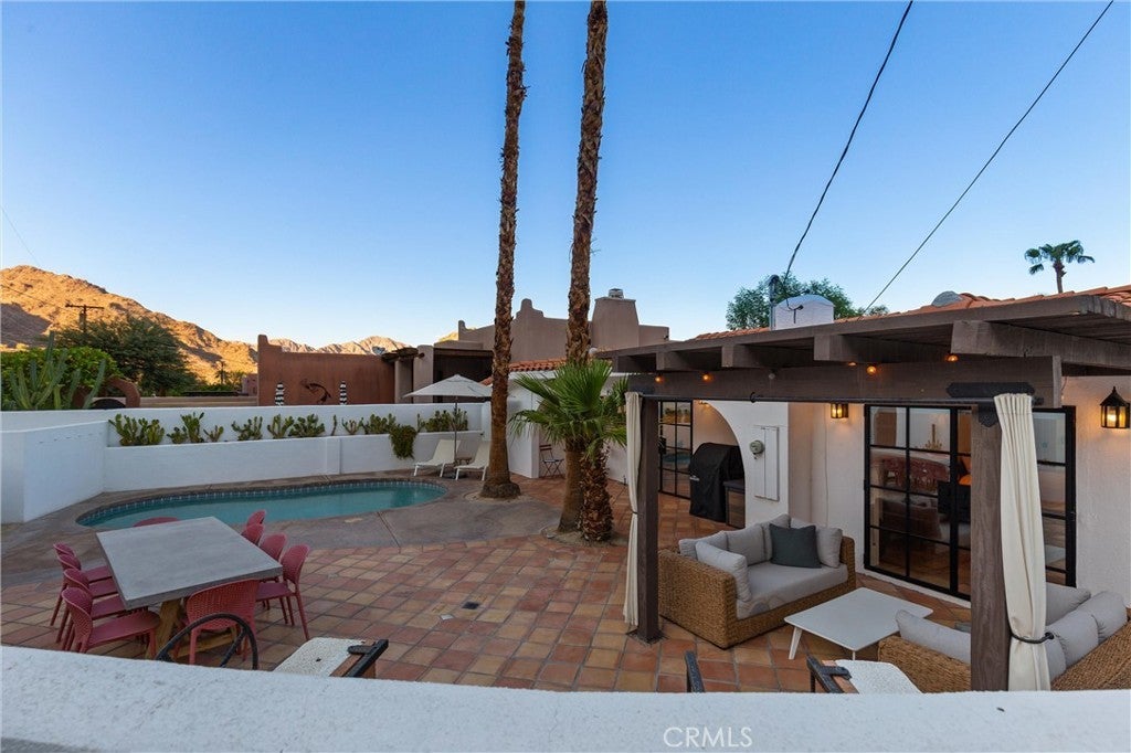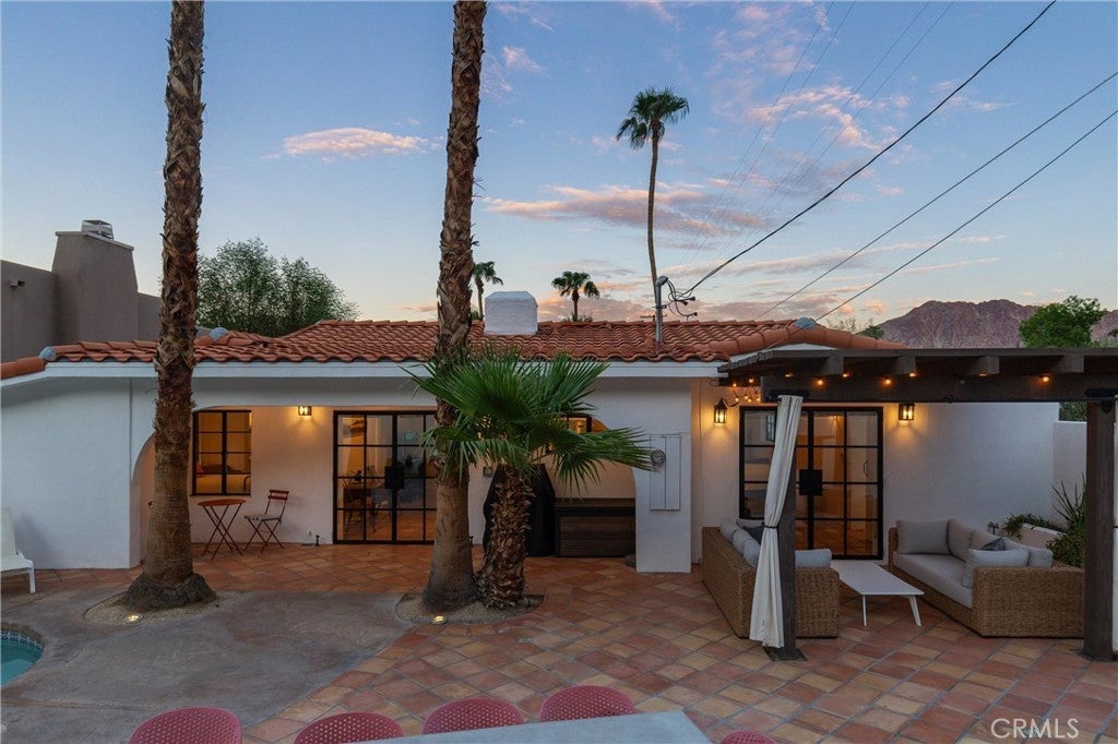 Discover the magic of old California at this extraordinary 1930s Spanish Casita, one of only 60 original homes built in the Historic La Quinta Cove. Nestled on a prime corner lot with breathtaking unobstructed mountain views, this rare desert treasure perfectly marries authentic period charm & modern luxury with no expense spared. Step through the gates into your private courtyard oasis, where flourishing citrus trees add charm to the enclosed front patio. This intimate space captures the perfect morning sun to take in the dramatic mountain backdrop. The heart of this casita is the beautifully remodeled kitchen, featuring premium Bertazzoni induction range, Viking refrigerator/freezer, & KitchenAid dishwasher. The fully furnished turnkey home creates a seamless transition from indoor to outdoor living through dramatic double glass French doors that open wide to blur the lines between the remodeled interior & your private backyard sanctuary, where a saltwater pool, built-in Santa Maria grill, & plenty of space for entertaining await. The covered lounge area provides the perfect retreat for enjoying your private slice of desert paradise. The living room showcases the home's original character with its historic fireplace, while beautiful saltillo tiles flow throughout the home. Individual mini-split systems & elegant Minka Aire ceiling fans ensure year-round comfort throughout. The primary suite offers direct patio access, stunning mountain views, & an en suite bath adorned with handcrafted American Southwest tile work. On the opposite side of the home, two additional bedrooms share a jack-and-jill bathroom. This corner lot paradise sits directly adjacent to the mountains and across from Montezuma Street's popular biking & hiking trails with access right out of your back gate. Located just minutes from Old Town La Quinta, which features many dining & shopping options, as well as a weekly Farmers Market, the La Quinta Art Festival, and more. The home is perfectly positioned near championship golf courses, Indian Wells Tennis Garden, Acrisure Arena, and Indio's world-famous music festivals. Downtown Palm Springs is less than 30 minutes away, placing you at the heart of the desert's premier entertainment destinations. This property includes an EV charger and benefits from the Valley's lower utility rates. A once-in-a-lifetime opportunity to own a piece of La Quinta Cove history – where 1930s Spanish colonial architecture meets today's luxury desert lifestyle!