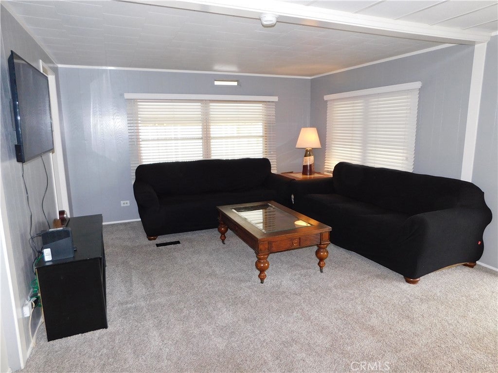 ~Immaculate home located in Yucaipa’s highly desirable 55+ community, Carriage Trade Manor! Low space rent! Only $412!~Conveniently located across the street from clubhouse and pool!~Pride of ownership shows throughout with recent upgrades including, new tankless water heater in May 2025, new carpeting throughout in June 2025, freshly painted interior AND exterior in September 2025, new blinds, light fixtures, light switch cover plates, ceiling trim, and baseboards throughout in 2025, new front porch awning in February 2025 by Merriman’s, new central heating ductwork and registers in 2023, new window/wall AC units, and swamp cooler upgraded with new float, base, and cleaned in 2025!~Coming in through the front sliding glass doors, you’ll find a welcoming and bright living area, open to dining area, with built-in china hutch!~Kitchen has all new counter tops done in 2025, newly painted cabinets, fixtures, and new hinges in 2025, new flooring, stainless steel sink, garbage disposal, fridge included, pantry, and range with exhaust fan!~HUGE primary bedroom with AC unit and plenty of built-in closet space that’s freshly painted with all new fixtures!~Completely remodeled and extended bathroom with new shower/tub, new shower head and fixtures, new toilet seat and cover, new flooring, painted and drywalled, new vanity and faucet, and gorgeous new light fixture above vanity!~Queen size 2nd bedroom, located directly across from bathroom, with plenty of closet space!~Home is plumbed for a second bathroom as well!~Laundry hookups located conveniently outside carport door in shed, washer/dryer included!~Meticulously maintained yard with lemon tree, 5 grape plants, white nectarine tree, yellow delicious apple tree, pink grapefruit tree, and dwarf satsuma mandarin orange tree!~New artificial grass in front and side yards!~Extra shed in perfect sized back/side yard!~2 car carport!~Beautiful mountain views from front porch!~Already fenced/gated for pets!***Call for a tour today before it’s gone!! You will DEFINITELY be impressed!!***