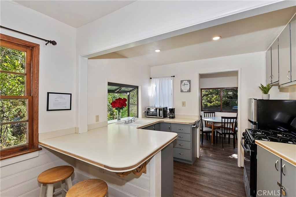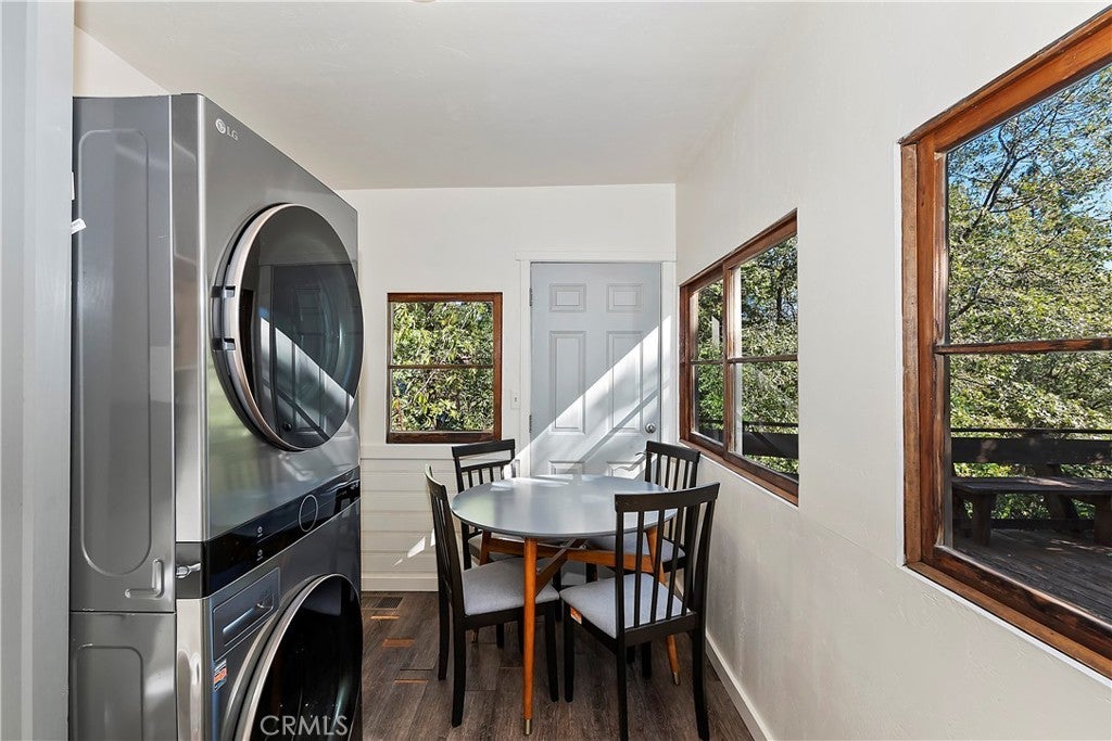 Vintage Storybook Retreat! Experience Peace in the Mountains in this Sweet Charmer - Thoughtfully Updated with Modern Comforts and Conveniences. Wonderful Cottage Atmosphere with Wood Stove in the Living Room and A/C for All Season Enjoyment. Open Kitchen with Newer Appliances. The Dining/Sun Room seconds as a Laundry Room with Auxiliary Pantry Area and Storage for the Kitchen, This Space Also Makes for a Lovely 2nd Bedroom or Sleeping Area. Spacious Bedroom Upstairs with Extra Sleeping Area. There is a Fantastic Deck off the Kitchen - Surrounded by Stunning Trees with Beautiful Chirping Birds and Offering Gorgeous Ridgeline Views. Plenty of Parking - A Huge Benefit - The Adjacent Flat Vacant Lot is INCLUDED - Giving You A Great Sense of Privacy - Use it for Extra Parking or Future Expansion. Leave All of Your Cares Behind. Come Experience the Bright Stars at Night and the Crisp Cool Mountain Air. Easy to Get to but You'll Never Want to Leave! With Great Proximity to Local Attractions and Area Destinations, including - Lake Arrowhead Village, Sky Park at Santa's Village, Lake Gregory Recreational Lake and Park, Snow Valley, Local Farmers Markets and Endless Hiking Trails in the San Bernardino National Forest. Situated in a Four Season Mountain Resort on a County Plowed, Paved and Maintained Road. Home Has a Great Track Record as a Busy Air BnB Too. Make it Yours Today! Located within 2 hours of Most Southern California Cities and Suburbs - The Mountains Are Calling and They're Closer Than You Know!