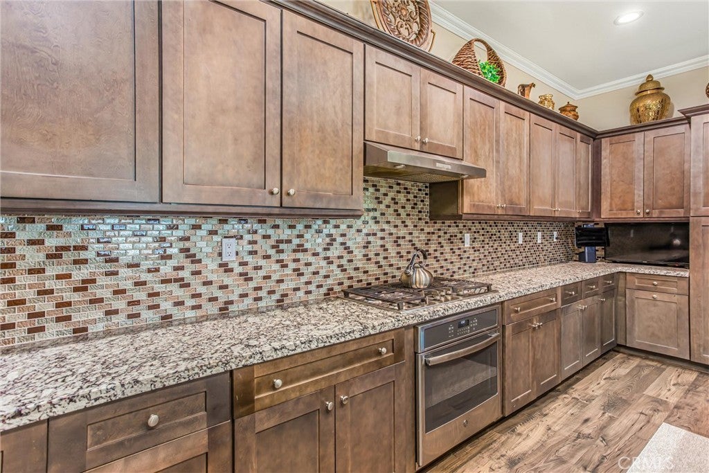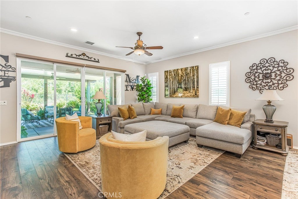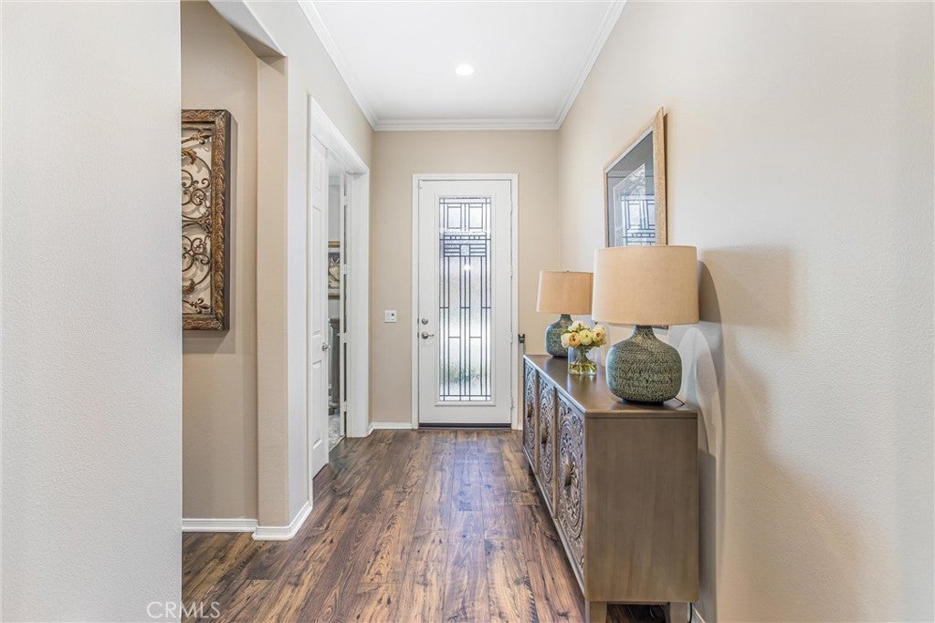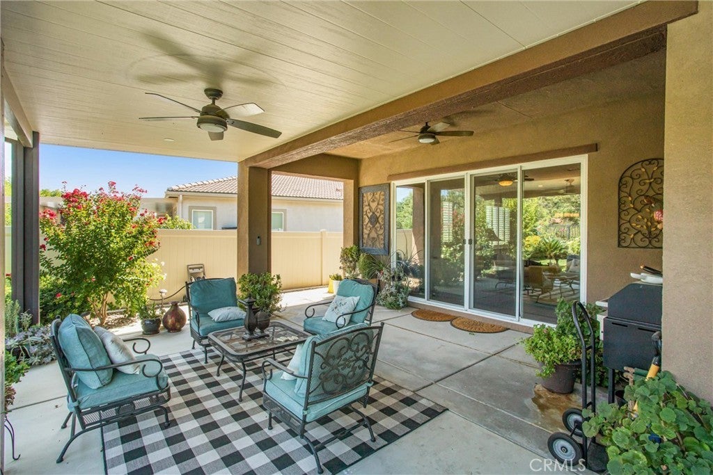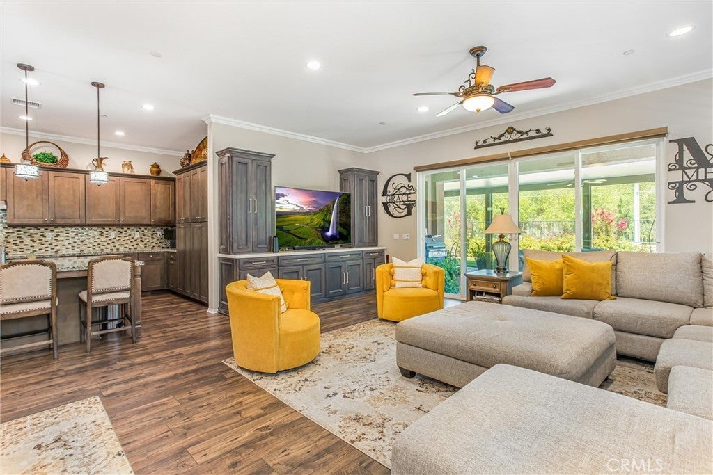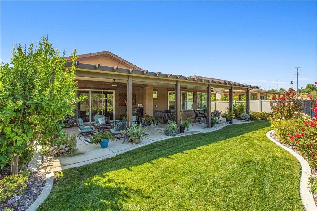 My oh my oh my, what a beauty you are!! Welcome to 1608 Sams Canyon, your oasis and calming space in an ever increasingly chaotic world. Located in the resort style 55+ community of Four Seasons in Beaumont, this stunning home has been beautifully upgraded from top to bottom, and you'll be sure to appreciate every detail. Spread out over 2700 sqft, it features 3 bedrooms, 3 full baths, vinyl flooring throughout, elegant crown molding and shutters in every room. The gorgeous kitchen overlooks a spacious great room/dining room with a custom built in entertainment center. Step through the double wide slider doors to a beautifully landscaped backyard with extended alumawood patio cover that spans the entire width of the home. With no neighbors in the back, enjoy the sounds of nature, wooded views and privacy it allows. Back inside, the secondary bedrooms are generously sized and very welcoming. The primary also features custom built-ins that provide ample storage. Some notable features of the community that you can enjoy are multiple club houses, an indoor heated as well as outdoor pools, a bistro, theater, pickleball, tennis, ping-pong, bocce ball, basketball, gyms, hair salon, and so much more. With miles of wooded walking trails and sidewalks, and an assortment of social clubs and activities, you are sure to find something that suits you to become a part of. Call today!