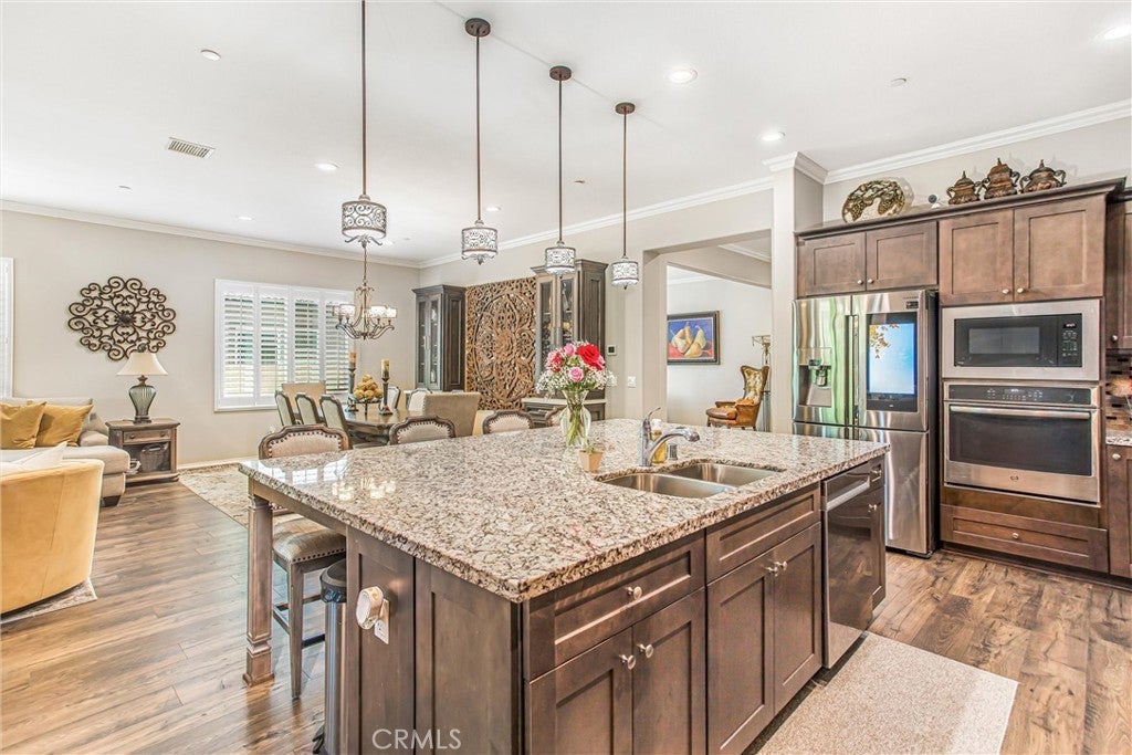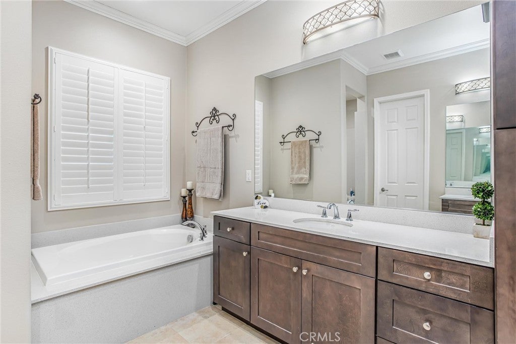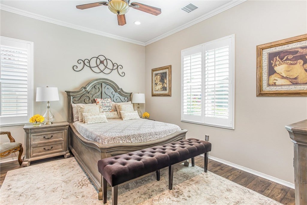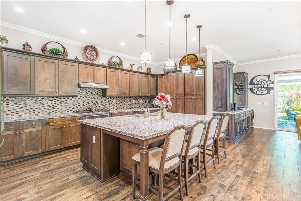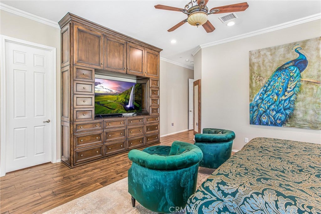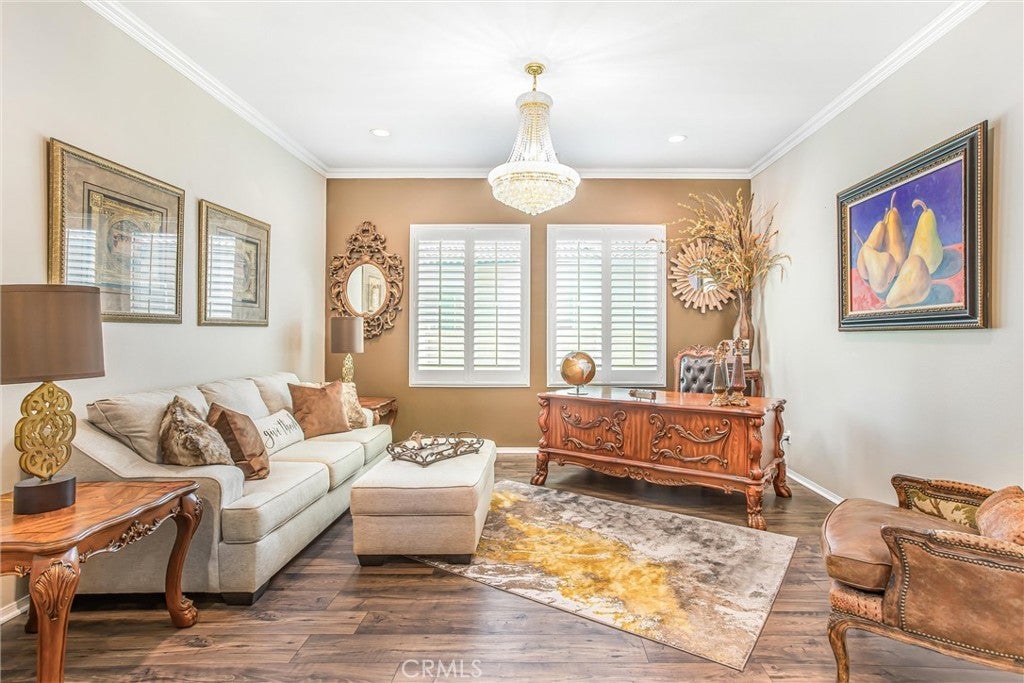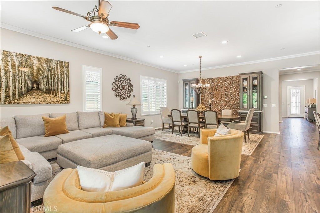 My oh my oh my, what a beauty you are!! Welcome to 1608 Sams Canyon, your oasis and calming space in an ever increasingly chaotic world. Located in the resort style 55+ community of Four Seasons in Beaumont, this stunning home has been beautifully upgraded from top to bottom, and you'll be sure to appreciate every detail. Spread out over 2700 sqft, it features 3 bedrooms, 3 full baths, vinyl flooring throughout, elegant crown molding and shutters in every room. The gorgeous kitchen overlooks a spacious great room/dining room with a custom built in entertainment center. Step through the double wide slider doors to a beautifully landscaped backyard with extended alumawood patio cover that spans the entire width of the home. With no neighbors in the back, enjoy the sounds of nature, wooded views and privacy it allows. Back inside, the secondary bedrooms are generously sized and very welcoming. The primary also features custom built-ins that provide ample storage. Some notable features of the community that you can enjoy are multiple club houses, an indoor heated as well as outdoor pools, a bistro, theater, pickleball, tennis, ping-pong, bocce ball, basketball, gyms, hair salon, and so much more. With miles of wooded walking trails and sidewalks, and an assortment of social clubs and activities, you are sure to find something that suits you to become a part of. Call today!