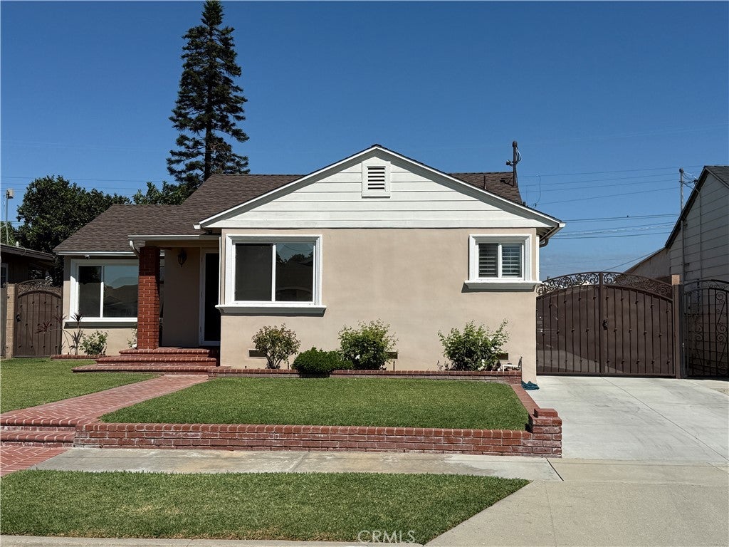 Welcome to this beautifully updated and meticulously maintained 3-bedroom, 2-bathroom home located in a Bellflower neighborhood. With 1,608 sqft of spacious living, this home blends modern upgrades with everyday comfort. Step into a welcoming and inviting living room that flows seamlessly into the formal dining area, perfect for entertaining and family gatherings. Just beyond, you'll find a cozy family room with a fireplace, ideal for relaxing evenings. The fully remodeled chef’s kitchen features a high-end Jenn-Air stove, custom cabinetry, sleek countertops, and a pantry perfect for all your culinary needs.The master bedroom offers comfort and privacy with custom closets and a beautifully updated en-suite bathroom. Both bathrooms have been tastefully remodeled with quality finishes. This home is equipped with central A/C and heating to keep you comfortable year-round. It has been updated with copper plumbing throughout and features select dual-pane windows for energy efficiency and shutters. A new roof adds to the home's long-term value and peace of mind. Enjoy soft water throughout the home with a water conditioning system, and keep your front yard green and low-maintenance with a sprinkler system. Recessed lighting brightens every room, and custom closets provide added storage and organization in each bedroom. Located on a charming block with convenient access to Downey Unified school district , shopping, dining, and major freeways, this move-in ready home is a rare find in Bellflower. Don’t miss out—schedule your private tour today! More photos coming soon!