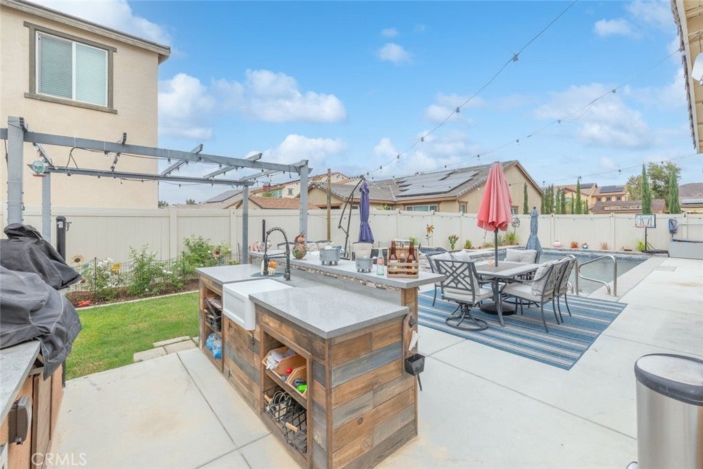 Welcome to 29329 Saltbush, a stunning two-story home in the highly sought-after Summerly community of Lake Elsinore. Offering 2,952 sq. ft. of living space, this 4-bedroom, 3-bathroom residence is designed with comfort, style, and functionality in mind. inside, you’ll find a bedroom and full bath conveniently located downstairs, perfect for guests or multi-generational living. The main living areas showcase custom tile flooring, while the upstairs retreat features upgraded plush carpet for added comfort. The heart of the home is the spacious kitchen, complete with an oversized island, granite countertops, a designer mosaic backsplash, dark espresso cabinetry, dual ovens and stainless steel appliances. Two versatile bonus flex rooms provide endless options—use one as a game room or media lounge, and the other as a private office or extra storage space. A large loft upstairs adds even more room to spread out. The master suite boasts a huge walk-in closet and a spa-like retreat. Step outside to your private backyard oasis featuring a sparkling pool and spa, California Sunroom,gas fire pit and a fully equipped outdoor kitchen with built-in BBQ—ideal for entertaining year-round. Plus, enjoy the convenience of RV parking for all your toys. This move-in ready home offers it all—luxury, space, and lifestyle—all in one of Lake Elsinore’s most desirable communities.