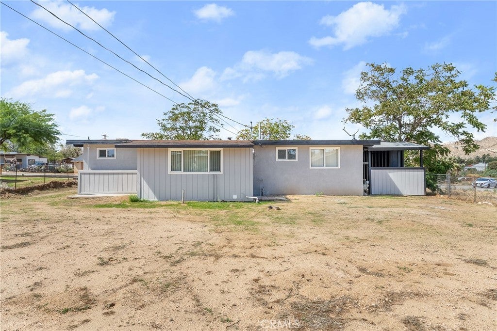 Welcome to this beautifully remodeled 3-bedroom, 2-bathroom home situated on a spacious 8,100 sq. ft. flat and usable lot in the heart of Yucca Valley. The home features timeless white cabinets with granite countertops, durable tile and luxury vinyl plank flooring, and two separate driveways for added convenience. The primary bedroom offers a private entrance, making it ideal for guests or a potential rental opportunity. Perfectly located just 27 miles from downtown Palm Springs, 40 miles from Redlands, and 121 miles from Los Angeles, this property is the ultimate desert getaway. Within walking distance to shopping and only minutes from Joshua Tree National Park, you’ll enjoy breathtaking desert landscapes, endless hiking, world-class stargazing, and the serene beauty of wide-open skies. Schedule an appt today!
