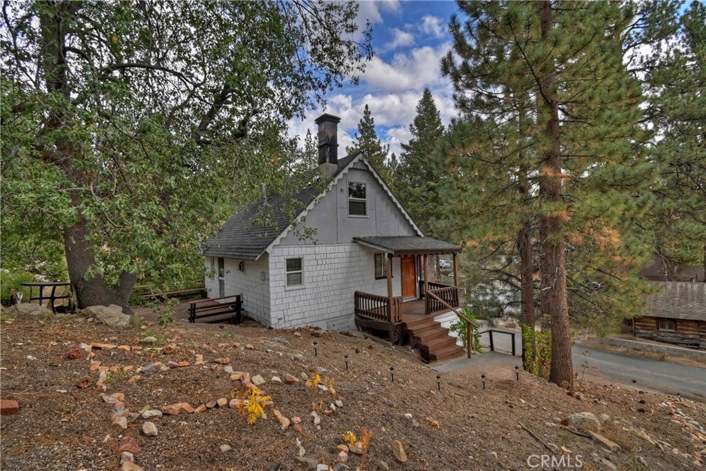 THE PRICE IS RIGHT! Affordable 2-bedroom, one full bath cottage-style home, including a separate bonus or 3rd bedroom with a three-quarter bath in the lower level. Features include new carpet, a beautiful rock fireplace, washer hook-ups, and a spacious rear deck. So, when you add it all up, including the bonus area, you have a 3-bedroom, 2-bathroom home with approximately 900 square feet on a wooded, 5,214-square-foot lot in a quiet neighborhood of Fawnskin for less than $300 per square foot.