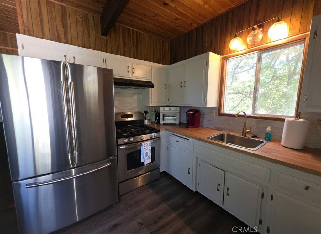Updated Rimforest Gambrel with Panoramic Valley Views, Big Deck & SpaceX Skies: Looking for a move-in ready mountain getaway in Rimforest with big views and easy access? This 2 bed, 1.5 bath mountain contemporary gambrel offers 770 sq ft on a 4,800 sq ft lot, perched above the trees with panoramic valley views and occasional far-off Pacific Ocean glimpses—great for stargazing and even spotting distant SpaceX launches. Inside, enjoy updated flooring, stainless appliances, remodeled bathrooms, and some upgraded windows that bring in bright natural light. The open living area centers on a cozy fireplace with raised hearth, and a stackable laundry space adds daily convenience. Step out to the oversized entertaining deck and soak in crisp mountain air from sunrise coffee to sunset dinners. Tandem driveway parking fits 2 cars, full internet is ready, and there’s no HOA. Commute easily via Bear Springs Rd to Hwy 18 south or Hwy 189 north.