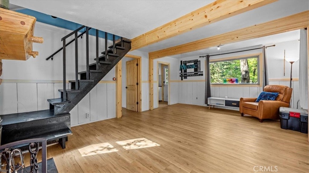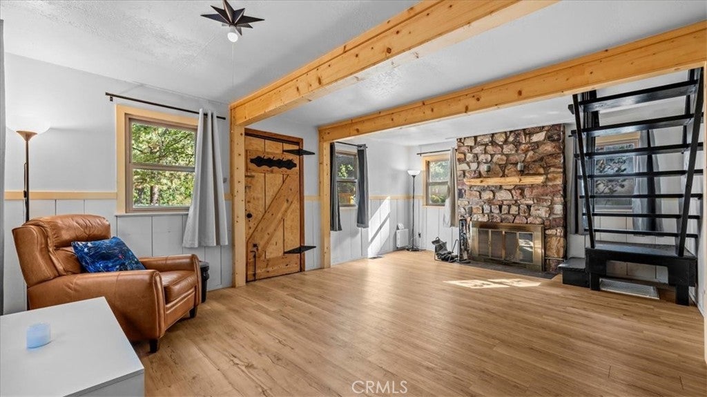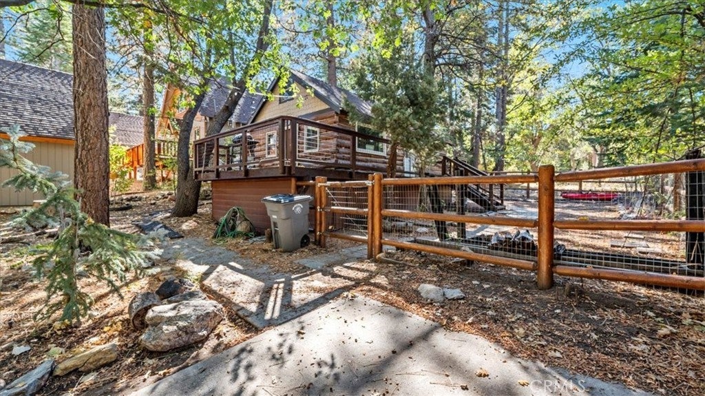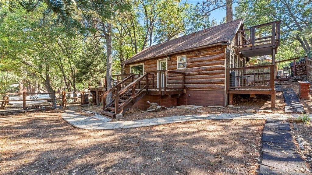 Embrace the beauty of mountain living in this authentic log cabin, perfectly set against the breathtaking backdrop of the San Bernardino National Forest. With direct access to some of the area’s best hiking trails just steps from your front door, this home is a true nature lover’s paradise. Located only one block from Bear Mountain Ski and Golf Resort, the opportunities for four-season adventure are endless—from skiing and snowboarding in the winter to golfing, biking, and lake activities in the summer. This charming cabin offers 3 bedrooms, 1 full bathroom, and 938 sq ft of living space on a generous 5,000 sq ft lot. The thoughtful layout features one convenient main-level bedroom and two loft-style bedrooms upstairs, making it perfect for guests, family, or even a home office. Inside, you’ll find a warm and inviting living room centered around a striking native rock wood-burning fireplace, creating the ideal setting for cozy evenings after a day on the slopes. Recent upgrades include new vinyl plank flooring and a fully rebuilt bathroom, blending modern comfort with rustic character. Step outside to enjoy the expansive entertainer’s deck, where you can take in stunning views of the mountains and surrounding forest. The beautifully landscaped yard and fully fenced backyard provide both beauty and privacy, offering the perfect retreat for barbecues, gatherings, or quiet evenings under the stars. A level lot with driveway parking adds everyday convenience to this serene mountain escape. Whether you’re seeking a full-time residence or a vacation getaway, in a highly desirable year-round destination, this log cabin offers it all. With its unbeatable location near Bear Mountain, Big Bear Lake, and charming village shops and dining, this home delivers the rare blend of rustic charm, modern updates, and outdoor adventure. Don’t miss the opportunity to make this mountain retreat yours—schedule your private showing today!