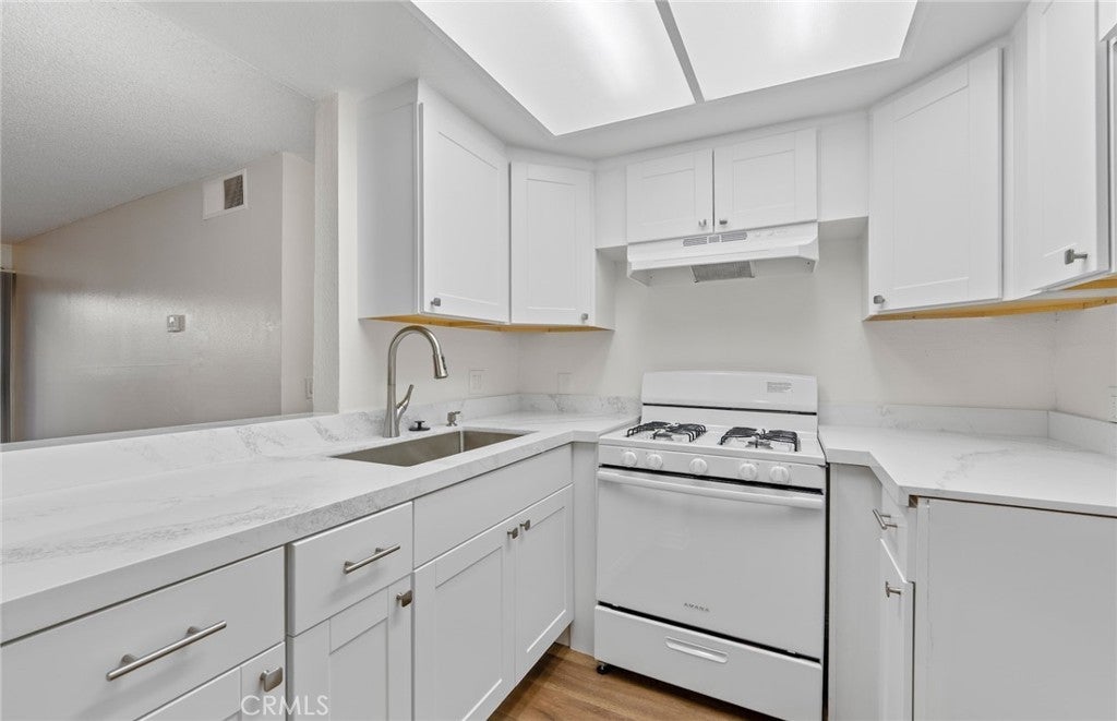 Welcome to this beautifully remodeled condominium! This spacious 2 bedroom, 1 bath located on the 1st floor. Unit features a completely updated kitchen with new cabinets, countertops, sink, faucet, stove, and new Laminate flooring. The dining and living areas also showcase new laminate flooring. Step through the new installed patio sliding door to enjoy your private outdoor area. The bedrooms are generously sized, featuring new carpet and baseboards for added comfort. The bathroom has been fully upgraded with a stylish new 2 cabinets with vanity area, a mirror, and new laminate flooring. As part of a gated community, you'll have access to two pools and two clubhouses, along with assigned parking for your convenience. Plus, you’re within walking distance of downtown Santa Ana, where you can explore a variety of restaurants and shopping options. This unit is truly a must see don't miss out on this fantastic opportunity!