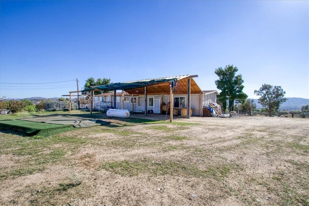 BACK ON THE MARKET AT NO FAULT OF THE SELLERS!! Home is already appraised, inspected, well inspected, cleared termite and septic. Are you ready to move in? Welcome to your serene Anza dream home, only 0.8 miles off the paved road. With a view overlooking the nearby valley, you'll love the enclosed sun room porch. Open the windows to feel the cross breeze, or keep them closed and enjoy the natural light and the view. Nestled on 2.75 acres, this horse property is ready for all your critters, your family members and all your entertainment needs. The possibilities are endless. Add an ADU, run a business, or just spend all day working the land with your four-legged friends. This manufactured home is on a permanent foundation with a 433a certificate, making it eligible for most financing. It is even inside the eligible area for the 0% down USDA loan. This home offers 3 bedrooms and 3 bathrooms. The spacious primary suite has a roomy, gorgeous bathroom with quartz countertops, a walk-in shower and ample storage. The primary suite even has its own retreat. The retreat provides flexible space that can serve as a nursery, home office, or even a dream walk-in closet. Inside the main living area, you’ll also find a Jack-and-Jill style guest bathroom that links the laundry room and the second bedroom. The third bedroom is an expansive 10' x 34' with a walk-in closet and private entrance, ideal for multi-generational living, guest quarters, or rental potential. The heart of the home shines in the recently remodeled kitchen, featuring crisp white cabinetry, and sleek quartz countertops. A walk-in pantry keeps everything organized, while the included stove, and dishwasher make it truly move-in ready. The Rural Residential zoning allows for horses, goats, chickens, and more. With a cross-fenced dog yard, you are ready to keep your four-legged friends safe when guests come to visit. A spacious workshop with a full bathroom adds convenience and flexibility, while the property’s private well and owned propane tank provide self-sufficiency. Out back, a charming gable-roof pergola creates the perfect setting for outdoor entertaining or can even double as covered RV parking. With plenty of space and the option to build an additional dwelling, this property offers both comfort and opportunity. Set your GPS to the corner of El Campo/Coyote Canyon Rd, then to house, you'll minimize dirt roads