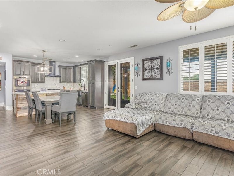 You don't want to miss the opportunity to get this lovely home, immaculately maintained , this impressive residence offers 6 bedrooms and 4 bathrooms, 2 story home if offers 4,423 Living Area and 10,018 Lot Size, the entry has a Custom doble Irons doors, installed 1 year ago, Step inside to find soaring high ceilings, that fill the home a natural lights. Also included an office with windows an glass door, located in the right side of the principal entry. The modern Kitchen features generous counter space ample cabinetry and convenient center island. the laundry room is lager than usual , it is now used as a boxing room, but you can easily convert into another room. The principal suite offers a private retreat with an ensuite bath and large Walk-n-closed. Also upstairs there is a large room that is used as a cinema place. The security cameras are commercial and were installed a years ago, which remain in the property for the new buyer. THIS PROPERTY OFFERS, QUIET PLACE, SPACE, LOCATION AND VIEW. At the night you can see all the lights of Moreno Valley. The View is breathtaking.