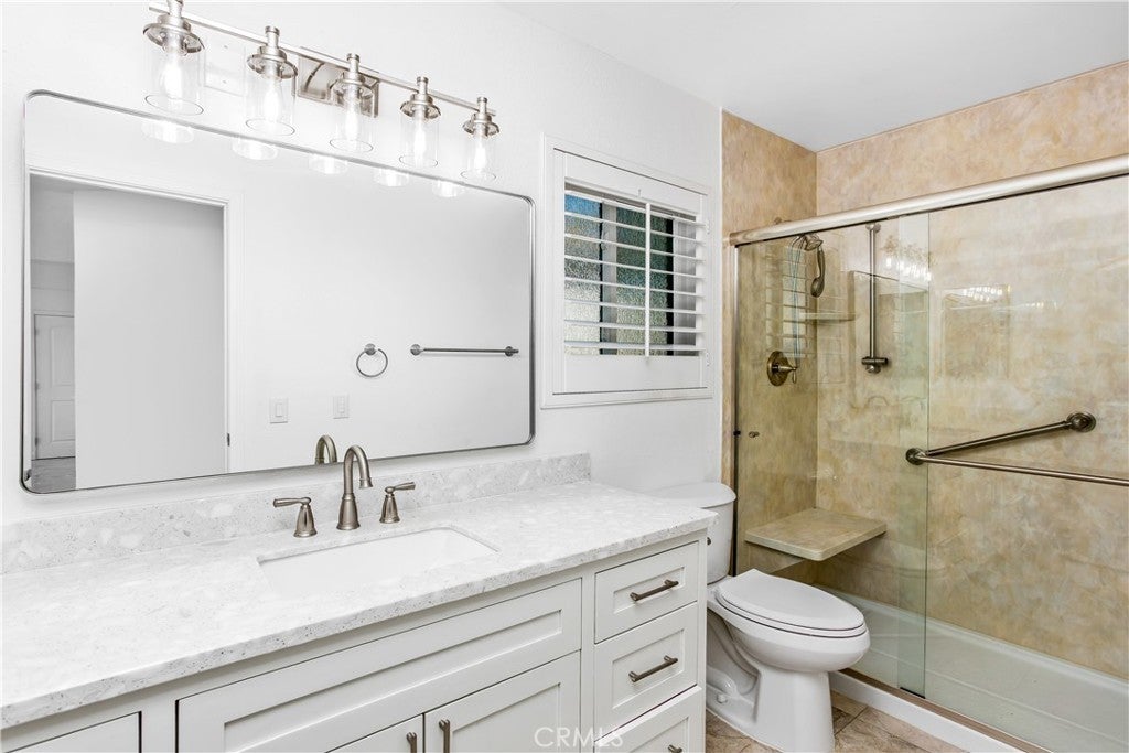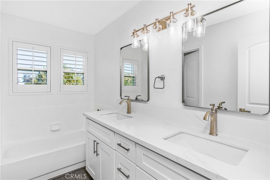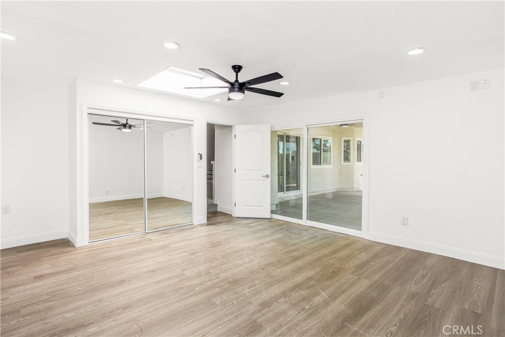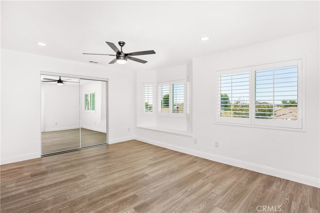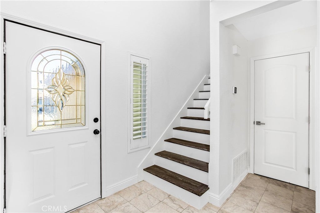 Welcome to this stunning 4-bedroom, 2-bath home featuring a bright and open floor plan, high vaulted ceilings, and stylish finishes throughout. The beautifully updated kitchen offers plenty of space for cooking and entertaining, complemented by recessed lighting and elegant plantation shutters that add a touch of sophistication. Downstairs, you’ll find three comfortable bedrooms and a full bathroom with a convenient shower. The private primary suite is located upstairs, offering peace and separation from the rest of the home, complete with a spacious bathroom featuring both a shower and a bathtub—perfect for relaxing at the end of the day. Enjoy outdoor living in the well-maintained front and back yards, ideal for gatherings, gardening, or simply soaking in the sunshine. Located just minutes from the freeway, this home combines comfort and convenience. Plus, you’ll love the low property tax rate, no HOA fees, and no solar fees—giving you more value and freedom as a homeowner.