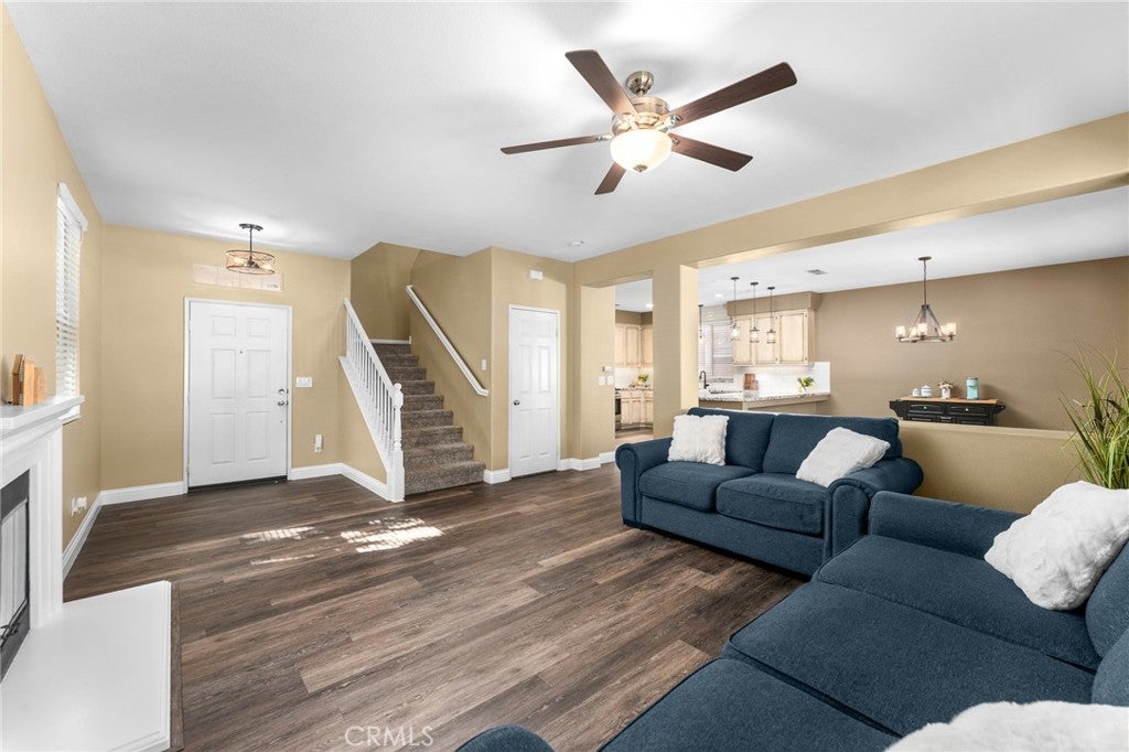 Welcome to this stunning 3 bedroom, 2.5 bath home offering the perfect blend of comfort, style and convenience. Step inside to find a spacious living room with beautiful fireplace. This home is filled with natural light and a dinning room right off the kitchen, ideal for home gatherings. The custom kitchen features beautiful cabinetry, stainless steel appliances, and plenty of counter space for cooking and entertaining. A dedicated office area upstairs provides a quiet space for work or study, while the separate laundry area downstairs adds everyday practicality. Upstairs, you'll find generously sized bedrooms with a full bath that's been updated with custom vanity and mirror. Included upstairs is the relaxing primary suite with a private bath and walk in closet. Enjoy outdoor living with lush landscaping, green grass, beautiful palm trees and backyard covered patio with 3 built in fans. Nice size backyard for relaxing and entertaining and a decent size dog run on side of house with separate added chain link fencing. Located in desirable HOA community of fairway canyon. Residents enjoy access to incredible amenities including tukwet canyon club house, fitness center, Pool and lap pool, jacuzzi, multiple parks, dog park and BBQ areas- everything you need for an active and social lifestyle. But the best of all HOA provides every house with internet. This home truly has it all- modern comfort, resort-style amenities and beautiful surroundings. Don't miss this opportunity to make this home yours!!!