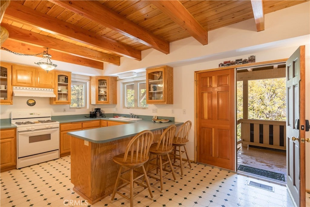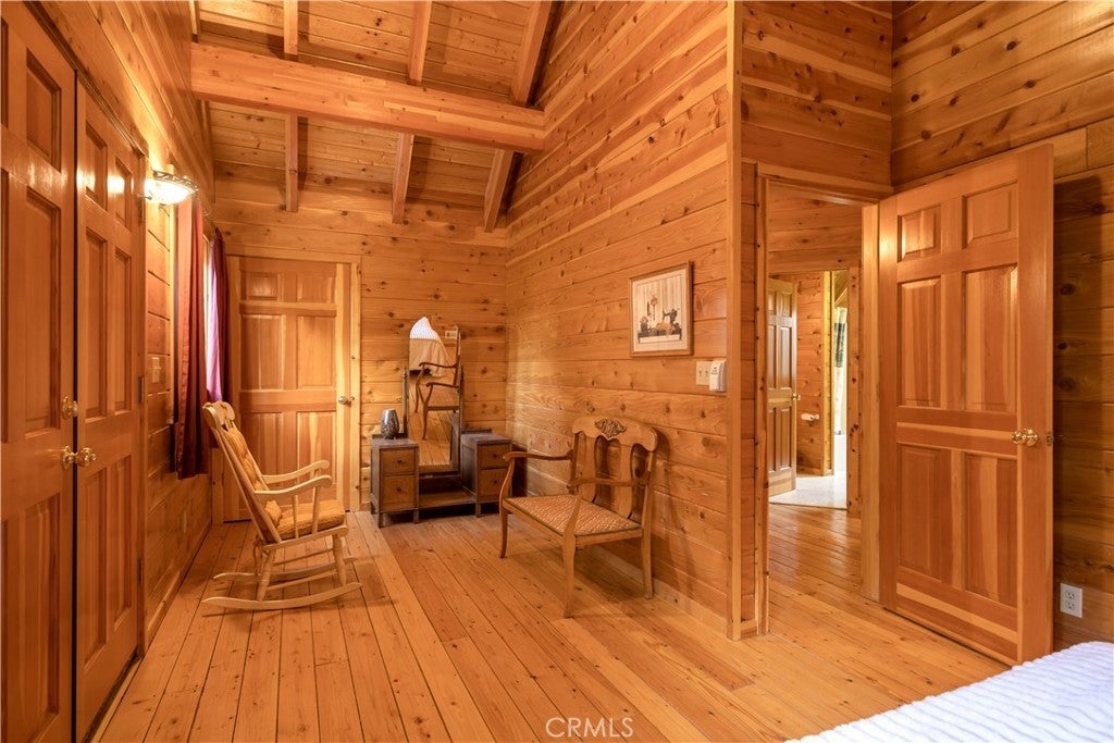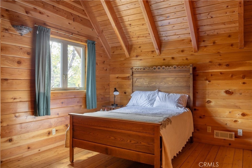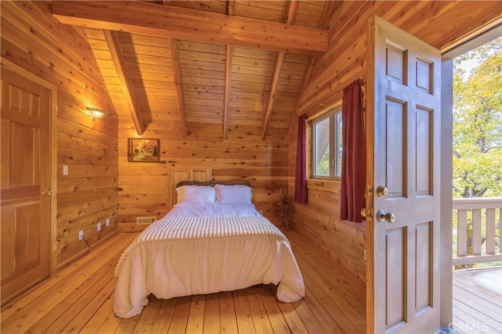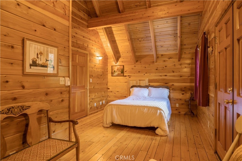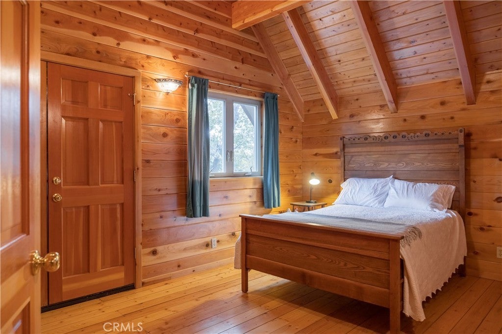 Nestled in the serene embrace of Green Valley Lake, this charming mountain cabin offers respite from the hustle and bustle of everyday life. With the feel of a perfect Swiss Chalet transported to the SoCal mountains, this inviting retreat spans 2,297 square feet and features three spacious bedrooms and three well-appointed bathrooms, ensuring comfort and privacy for family and guests alike. This home is pristine inside and out! Inside, you'll find a living area adorned with rich hardwood floors and a cozy fireplace, perfect for warming up during crisp mountain evenings. The kitchen boasts modern amenities, including a dishwasher, gas oven, and range, complemented by a functional breakfast bar ideal for casual dining and gathering. Outside, the expansive 15,743-square-foot lot presents a picturesque setting for leisurely enjoyment or entertaining. Enjoy tree top views from generous expansive decking and welcoming porch, providing the perfect vantage points to soak in the tranquility and beauty of the surrounding landscape. Practicality meets convenience with a dedicated laundry area, ensuring ease of maintenance. This home harmoniously combines rustic charm with modern comforts, making it a perfect haven for those seeking a peaceful retreat or a full-time residence in the heart of nature. Embrace the mountain lifestyle in this delightful cabin, where every corner promises warmth and relaxation.