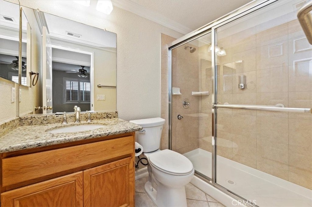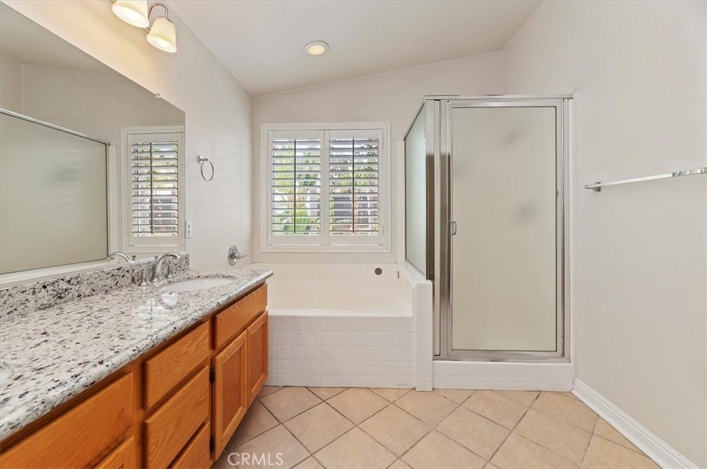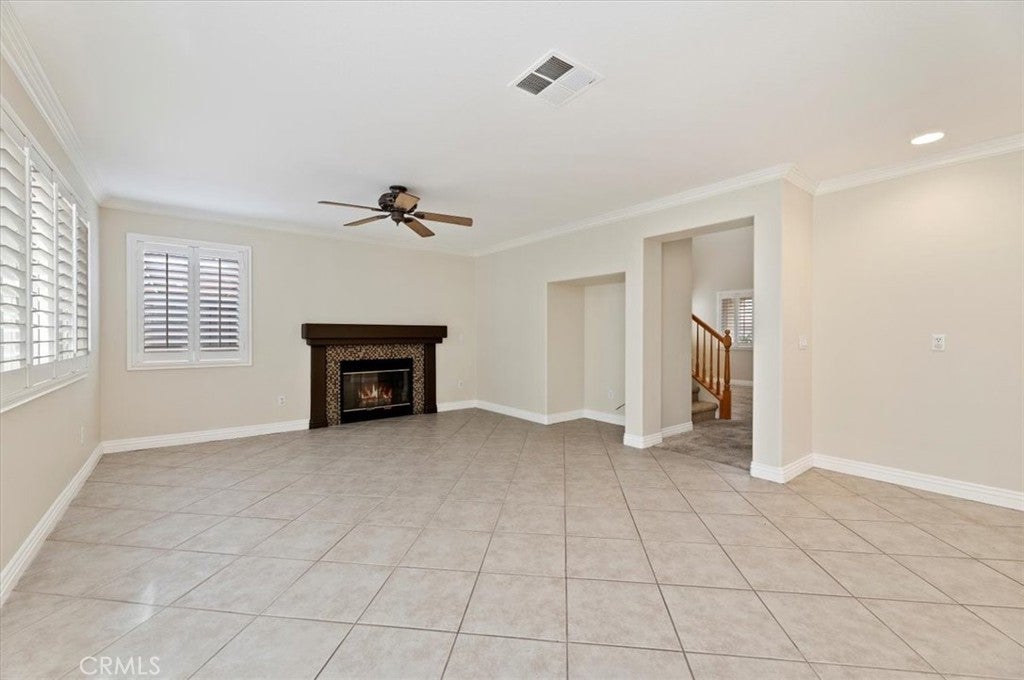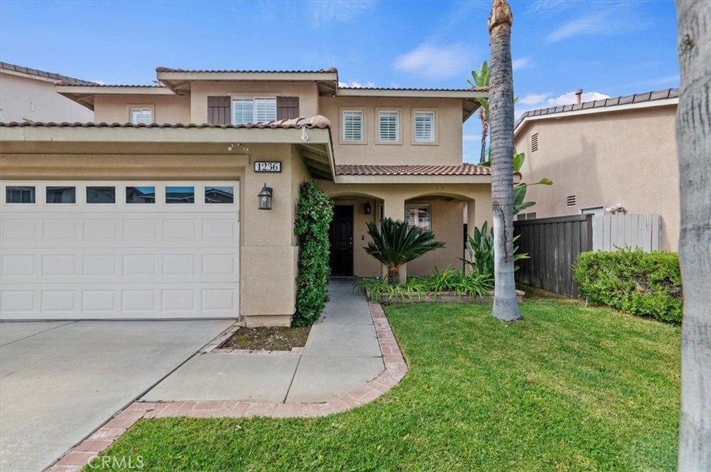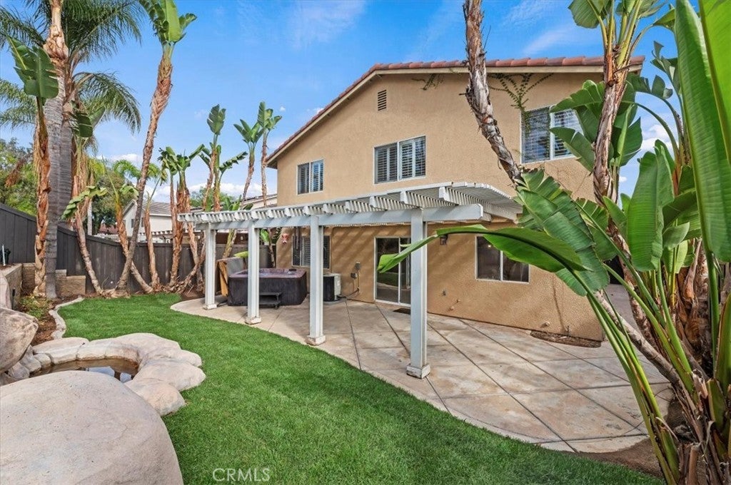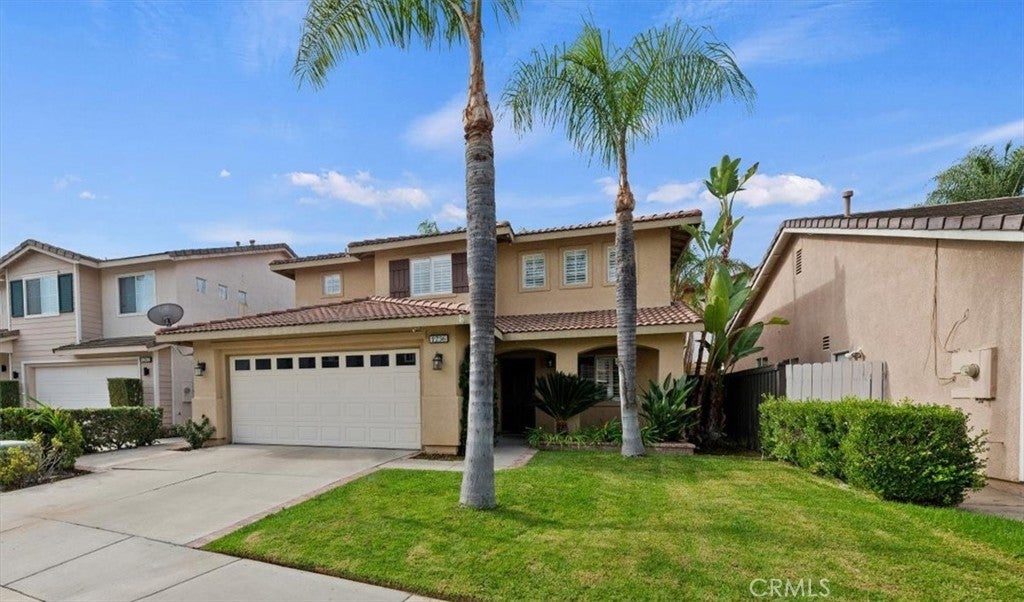Welcome to this charming single family home nestled in a quiet gated community of Ashwood in South Corona. Boasting a flexible floor plan and desirable features, this residence balances comfort and style. With a blend of indoor and outdoor living spaces, this home is ideal for both entertaining and everyday living. Features include 4 bedrooms and 3 baths with one of the bedrooms and baths downstairs. Highlights include high vaulted ceilings upon entry with a very open-concept layout connecting the living, dining and kitchen areas - a fireplace in the family room adds warmth and ambiance. Central cooling and heating provide year round comfort. The rear yard offers much privacy with mature palm trees, a calming waterfall coming off the slope, and a private above ground spa to soak in and enjoy that glass of wine at the end of a long day. Situated in the 92881 zip code, this home in a well established location of South Corona, literally within 2 blocks of Santiago High School and Orange Elementary School - also close to shops, entertainment and nearby to both the Crossings and Dos Lagos. Hurry on this one as it may not last.