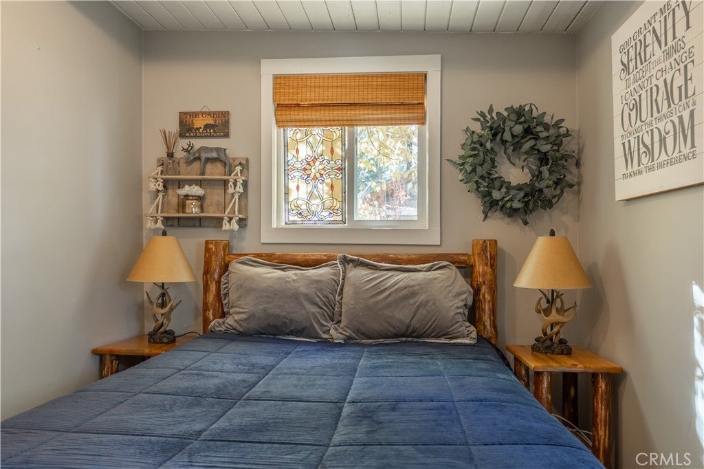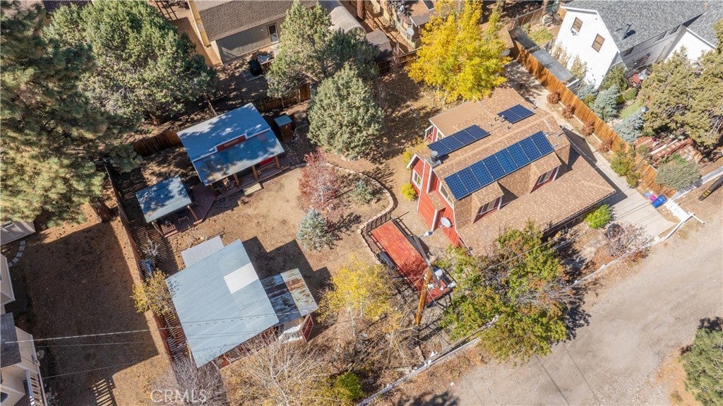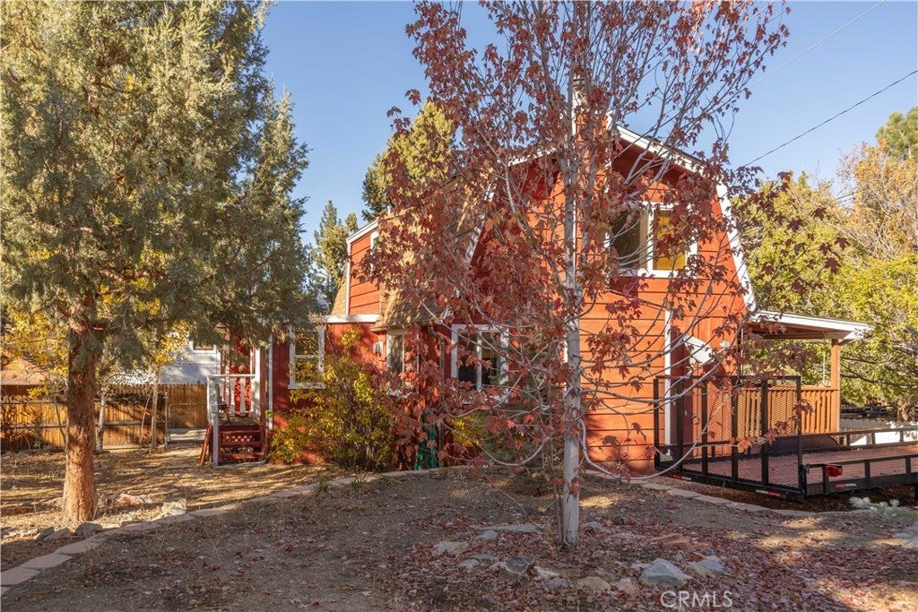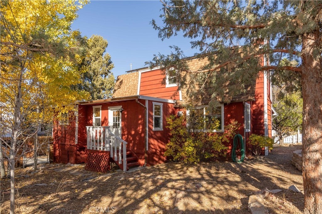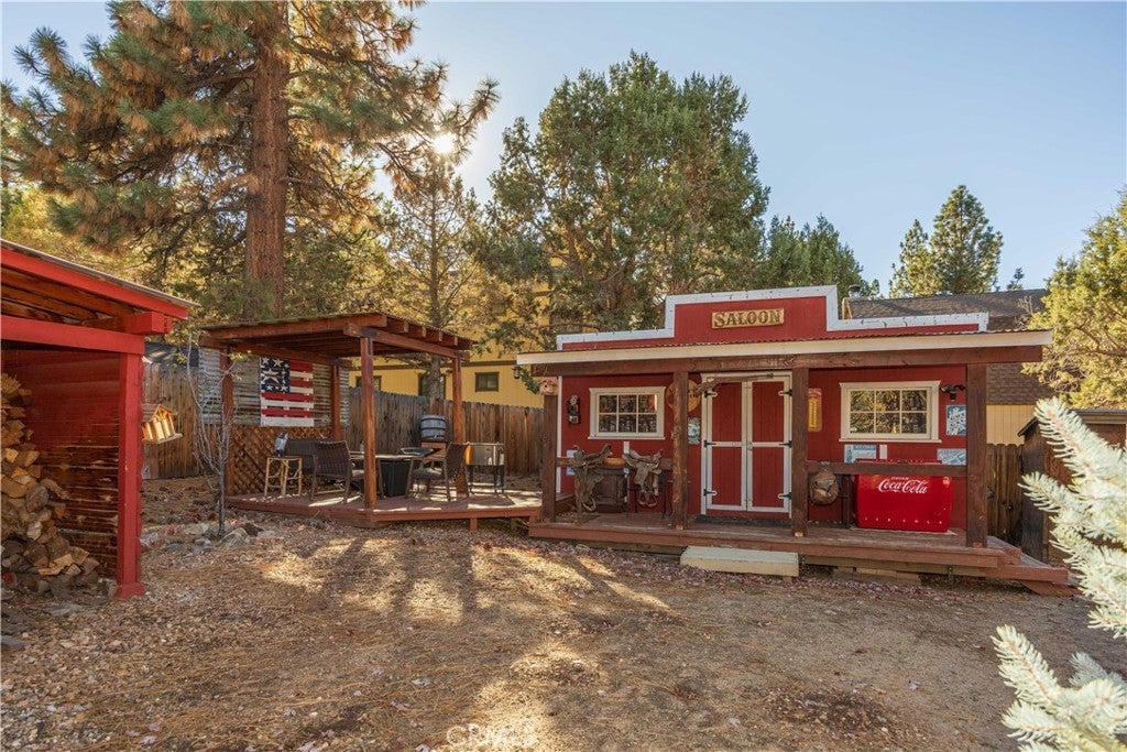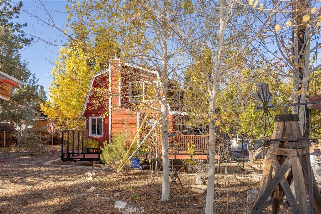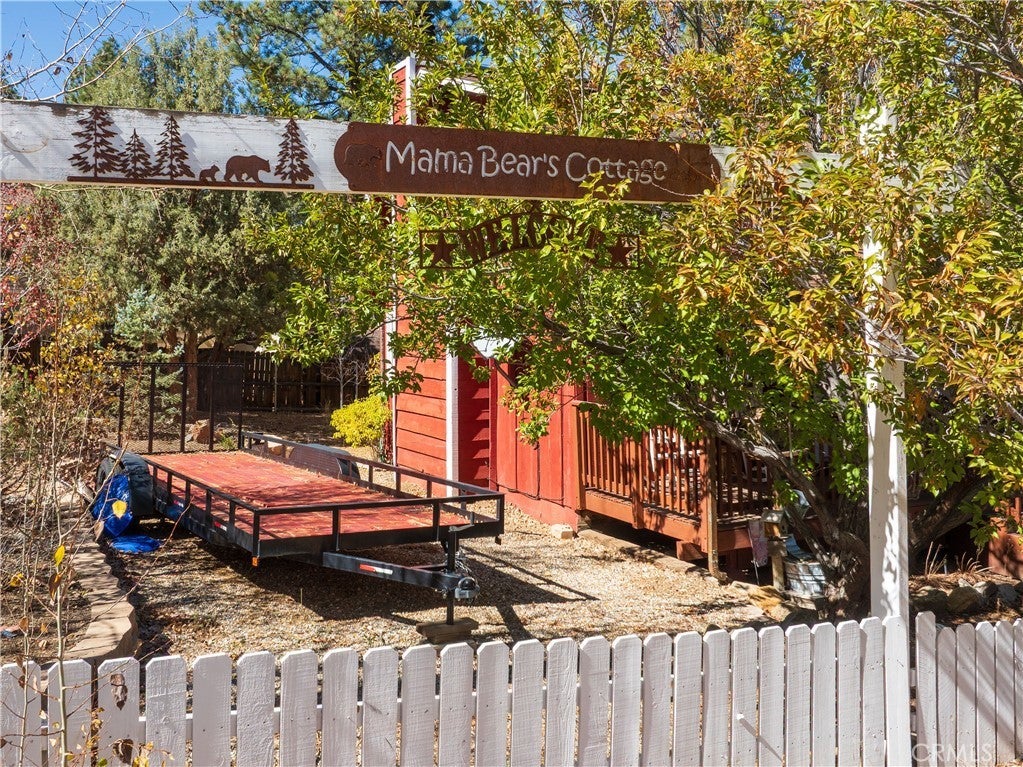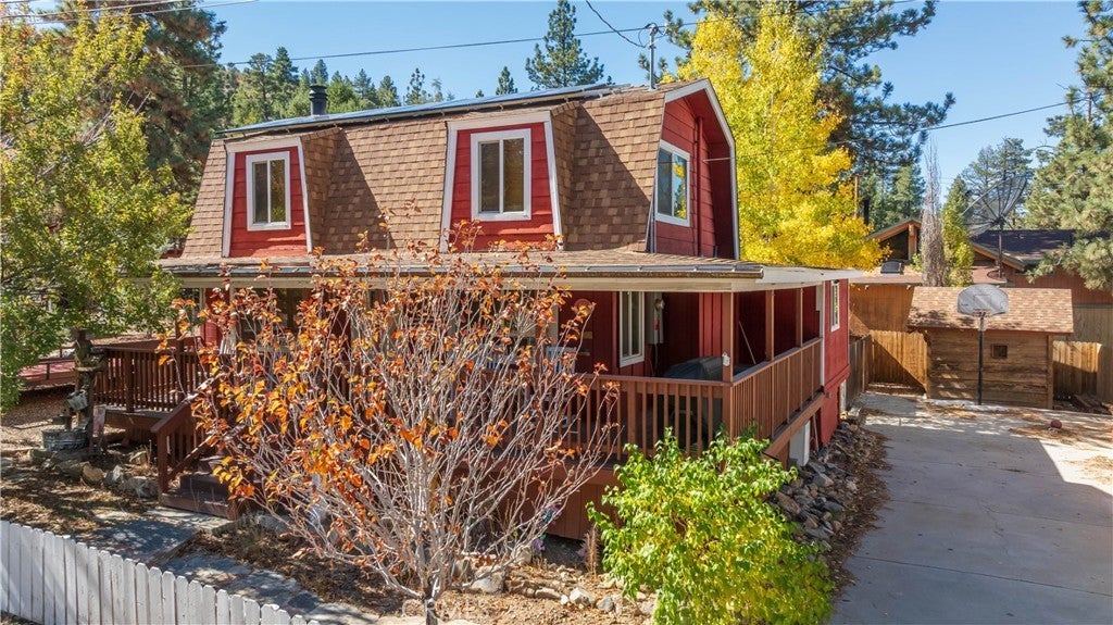 Welcome to your own slice of Big Bear serenity! This picture-perfect mini ranch is nestled in a peaceful, wooded neighborhood where mountain charm meets modern comfort. From the moment you arrive, this property radiates warmth, privacy, and that unmistakable Big Bear vibe. Step inside to discover a light-filled living area featuring wood-beam ceilings, updated flooring, and a classic wood-burning fireplace, making the perfect gathering spot after a day on the slopes or exploring the trails. The remodeled kitchen shines with quartz countertops, modern cabinetry, and plenty of prep space for cooking and entertaining. The home features one bedroom and one bath on the main level, plus two additional bedrooms and a shared bath upstairs. A detached guest Bunk house comfortably sleeps four, ideal for visiting friends, extended family, or use as a creative office space. Outside, the wrap-around deck invites you to take in the mountain air, enjoy morning coffee, or read a book under the pines. The expansive 12,750 sq ft lot provides room to roam, garden, or store your outdoor gear, with ample parking with space for an RV, and other toys. The owned solar system keeps utility costs low, while thoughtful updates include a newer roof, dual-pane windows, and rain gutters for added value and peace of mind. All furnishings, appliances, and amenities are included in the sale, allowing you to move right in and start enjoying the mountain lifestyle from day one. Whether you’re seeking a full-time residence or a weekend getaway that feels worlds away from city life, 1063 H Lane offers comfort, character, and a timeless Big Bear setting that feels like home the moment you arrive.