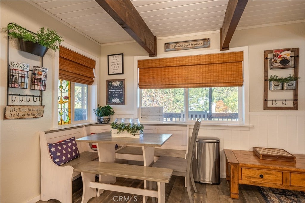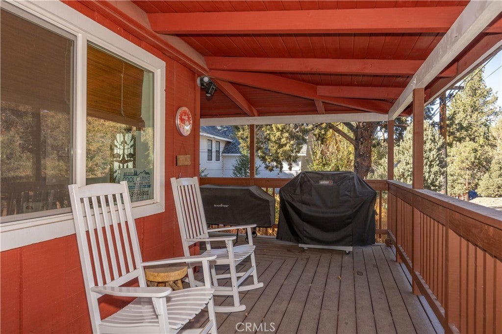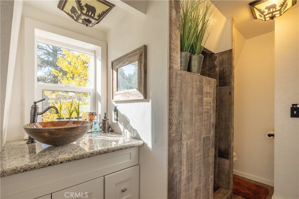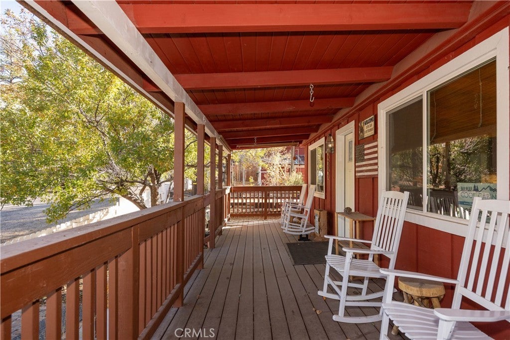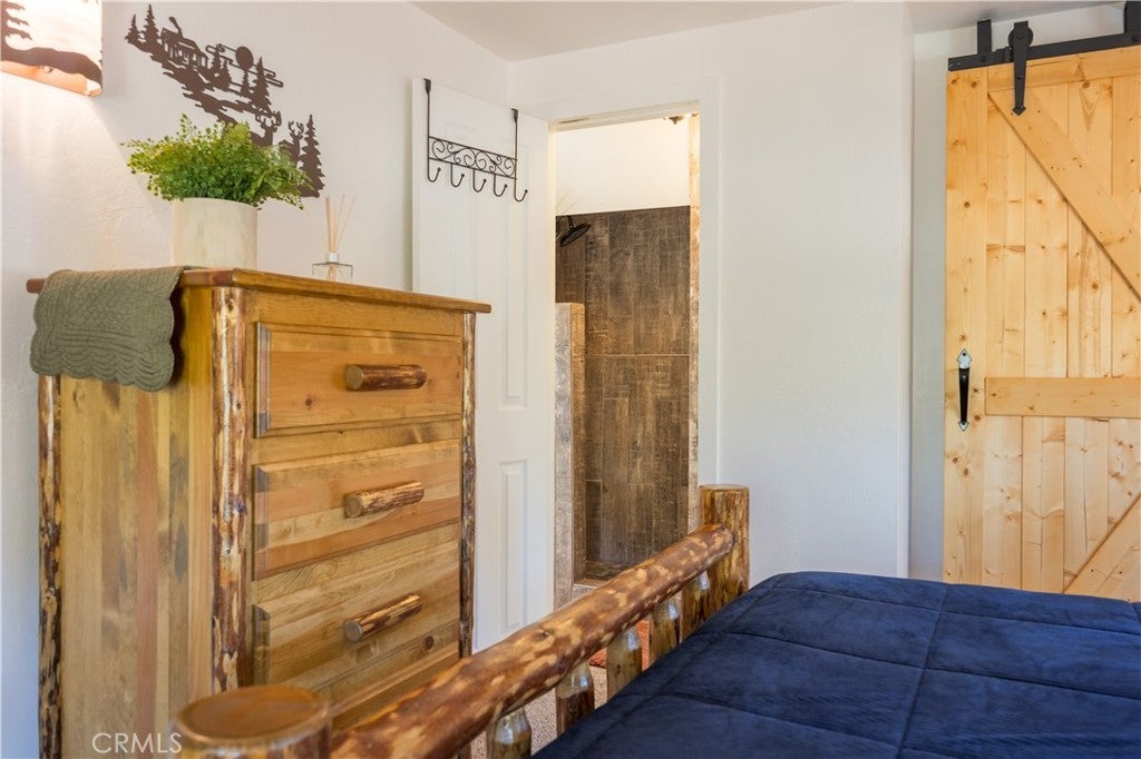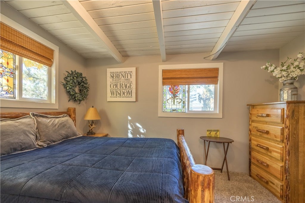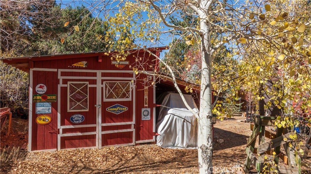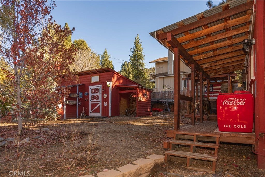 Welcome to your own slice of Big Bear serenity! This picture-perfect mini ranch is nestled in a peaceful, wooded neighborhood where mountain charm meets modern comfort. From the moment you arrive, this property radiates warmth, privacy, and that unmistakable Big Bear vibe. Step inside to discover a light-filled living area featuring wood-beam ceilings, updated flooring, and a classic wood-burning fireplace, making the perfect gathering spot after a day on the slopes or exploring the trails. The remodeled kitchen shines with quartz countertops, modern cabinetry, and plenty of prep space for cooking and entertaining. The home features one bedroom and one bath on the main level, plus two additional bedrooms and a shared bath upstairs. A detached guest Bunk house comfortably sleeps four, ideal for visiting friends, extended family, or use as a creative office space. Outside, the wrap-around deck invites you to take in the mountain air, enjoy morning coffee, or read a book under the pines. The expansive 12,750 sq ft lot provides room to roam, garden, or store your outdoor gear, with ample parking with space for an RV, and other toys. The owned solar system keeps utility costs low, while thoughtful updates include a newer roof, dual-pane windows, and rain gutters for added value and peace of mind. All furnishings, appliances, and amenities are included in the sale, allowing you to move right in and start enjoying the mountain lifestyle from day one. Whether you’re seeking a full-time residence or a weekend getaway that feels worlds away from city life, 1063 H Lane offers comfort, character, and a timeless Big Bear setting that feels like home the moment you arrive.