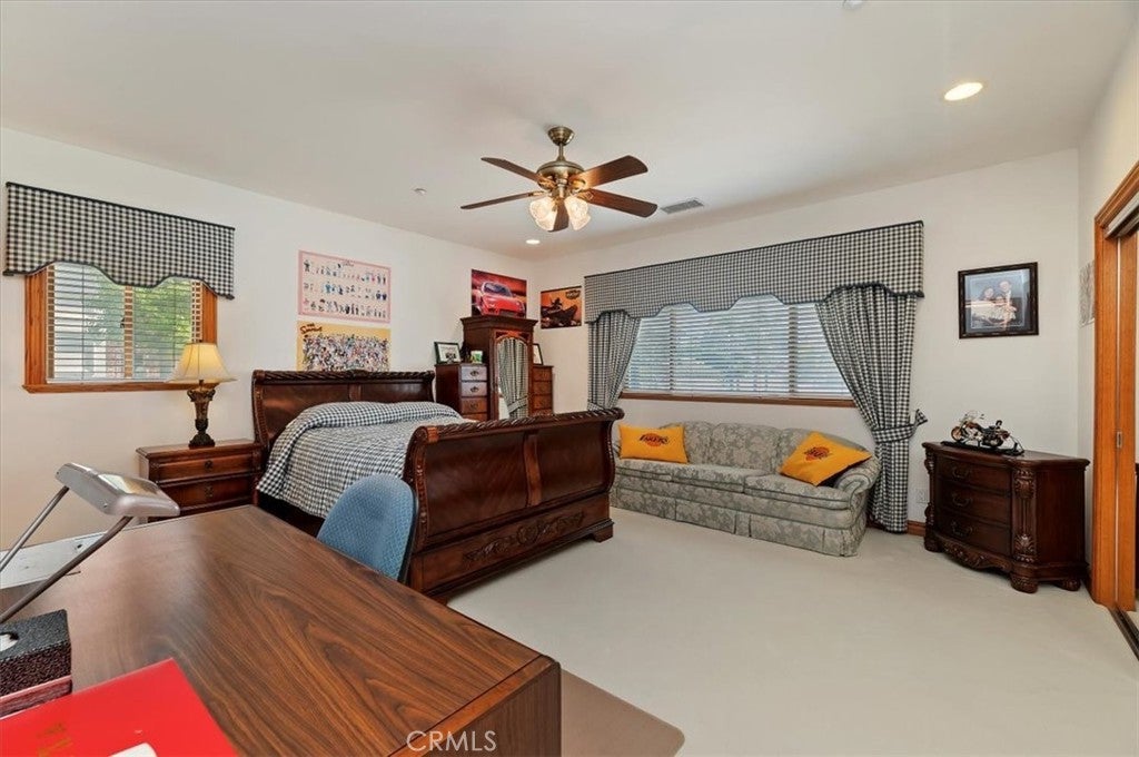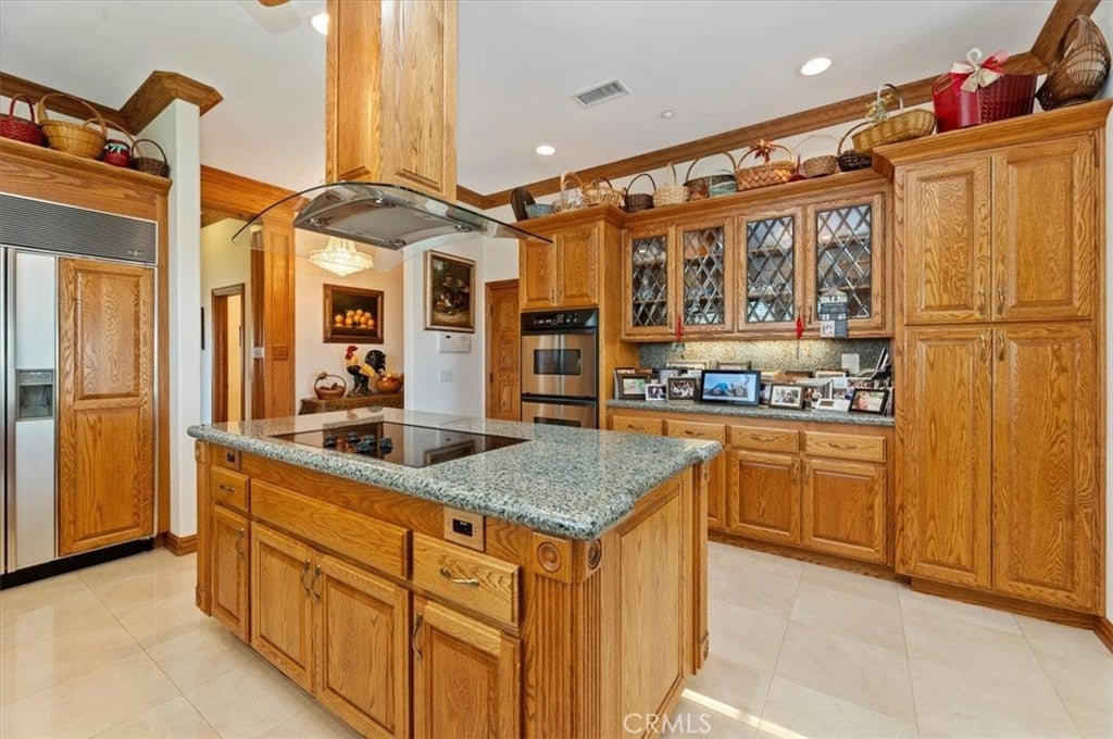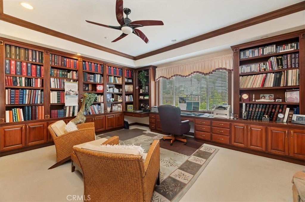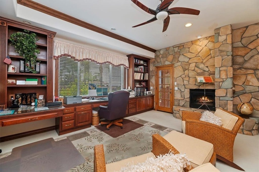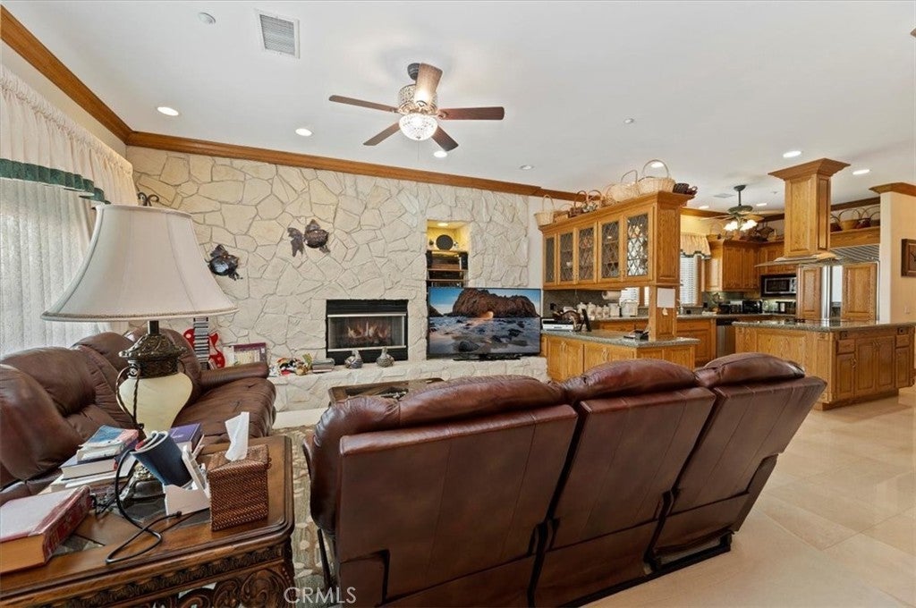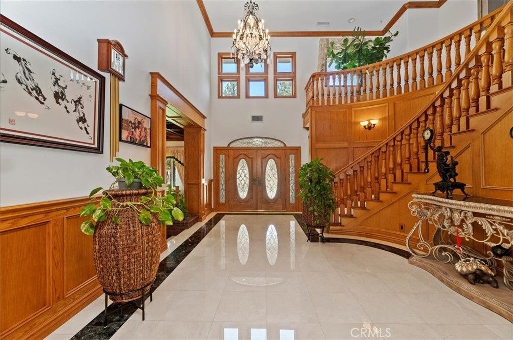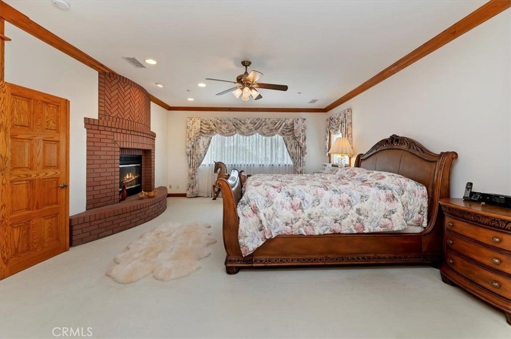 This bespoke estate in the exclusive Wyndham Hill Estates of Alessandro Heights offers a rare opportunity to own a custom designed property. Designed and maintained by its original owners, this residence blends timeless craftsmanship with thoughtful detail across 5,845 square feet of elegant living space. Guests are welcomed by a dramatic two-story foyer, featuring a grand sweeping staircase, custom oak wall paneling, and elegant marble floors with stone inlay. The entry opens to the formal living and dining rooms, where coffered ceilings, warm natural light, and artisan brick fireplaces reflect the home’s thoughtful craftsmanship and timeless appeal. Set on 1.5 acres in one of Riverside’s most prestigious neighborhoods, the residence offers 4 spacious bedrooms, 4.5 bathrooms, and an open-concept layout ideal for both everyday living and refined entertaining. Granite countertops, rich oak cabinetry, and custom built-ins are paired with enduring materials that speak to the home’s quality and thoughtful design, including hand-laid brick masonry wrapping the exterior and anchoring key interior spaces. The gourmet kitchen includes built-in appliances in pristine condition, a walk-in pantry, and seamless flow into the family and dining areas. A private study with custom oak shelving and a versatile upstairs loft with flexible spaces for work, media, or retreat. A spacious and private primary suite, accessed through beveled glass oak double doors, and includes a fireplace, dual walk-in closets with custom cabinetry, with dual private toilets, and a spa-inspired bath with jetted tub. Outdoors, the grounds are a private oasis: a resort-style pool and spa, basketball court, and a charming cabana ideal for gathering with guests or enjoying quiet mornings outdoors. A flourishing orchard of guava, mango, avocado, pomelo, apple, loquat, orange, and fig trees adds to the property’s sense of abundance and tranquility. The expansive, gated driveway accommodates multiple vehicles and leads to a 5-car garage, with one bay converted into a fully finished workshop with built-in cabinetry. Every space reflects tasteful curation and meticulous care. Framed by mountain and partial city views, this home embodies privacy, elegance, and true custom luxury in one of Riverside’s most coveted enclaves.