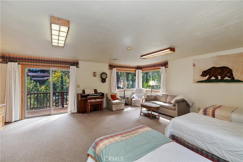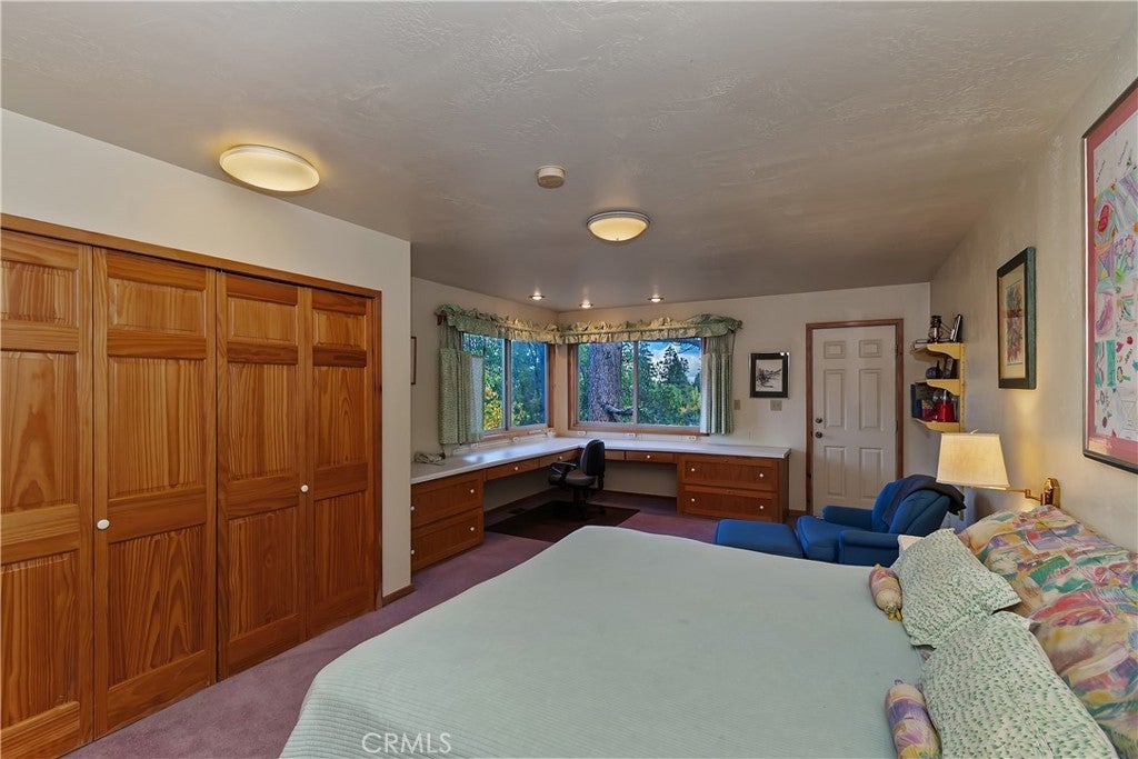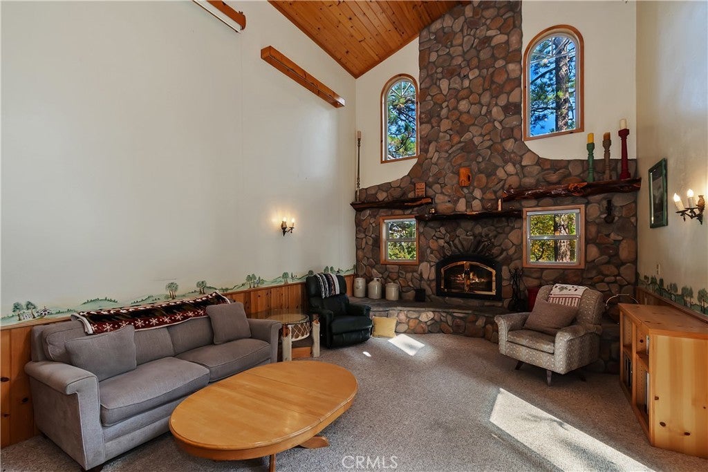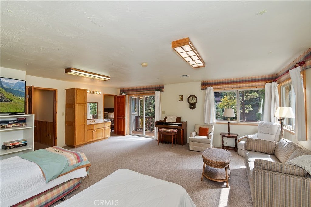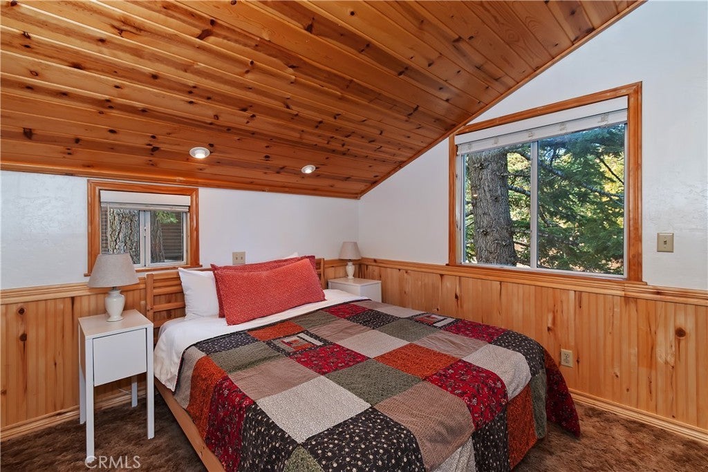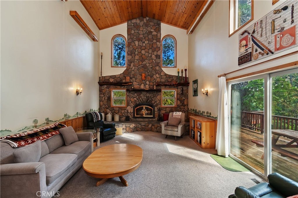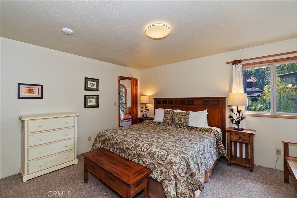 Up the San Bernardino Mountains you will find a charming town called Big Bear ~ Though small for its size, this town boasts a large lake, The Village and two resorts for skiing, snowboarding, hiking, mountain biking and all manner of recreation ~ Perched above the Village, while still within walking distance to it, you encounter this wonderful home ~ On 40,000 sq. ft., just shy of a full acre, is this 5 bedroom, 2.5 bathroom escape ~ It also has a detached guest house with it's own bedroom and bathroom ~ As you pull up to the property you will immediately fall head over heels with the setting ~ The long flat driveway leads you deeper onto the property where you find your home sitting on top of the hill like a monarch upon their throne ~ Your well treed land gives you the ultimate illusion of seclusion, making you feel as though you are alone in the forest ~ The outdoors gives you plenty of areas to relax from your front deck, firepit or your own lookout ~ As you enter you will absolutely love the floor to ceiling, and wood burning, rock fireplace in the Great Room ~ This is the ideal area to spend quality time with your loved ones creating lifelong memories together ~ The kitchen is open to the Great Room and has the cutest dining area you could wish for ~ Also on the main floor you have the master bedroom with peek-a-boo lake views, the laundry room with 1/2 bathroom and interior access to the garage ~ Upstairs you will find a large bedroom, above the master, that also has lake views, along with 2 more bedrooms, a large family room that is currently being used as the 5th bedroom and the second bathroom ~ The second bathroom is it's own work of art ~ The detached guest house is the perfect little cottage to add to this home's allure ~ Across the street from the National Forest, walking distance to the Village, 5 minutes to the lake, 8 minutes to the ski slopes and room to gather all your loved ones together under one roof! What are you waiting for?