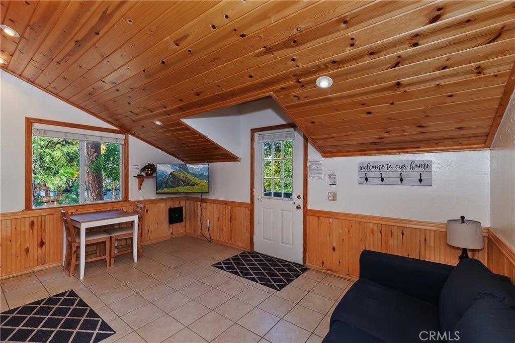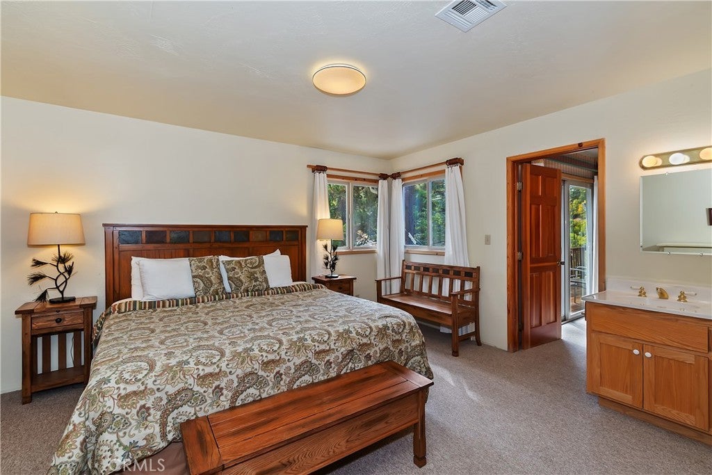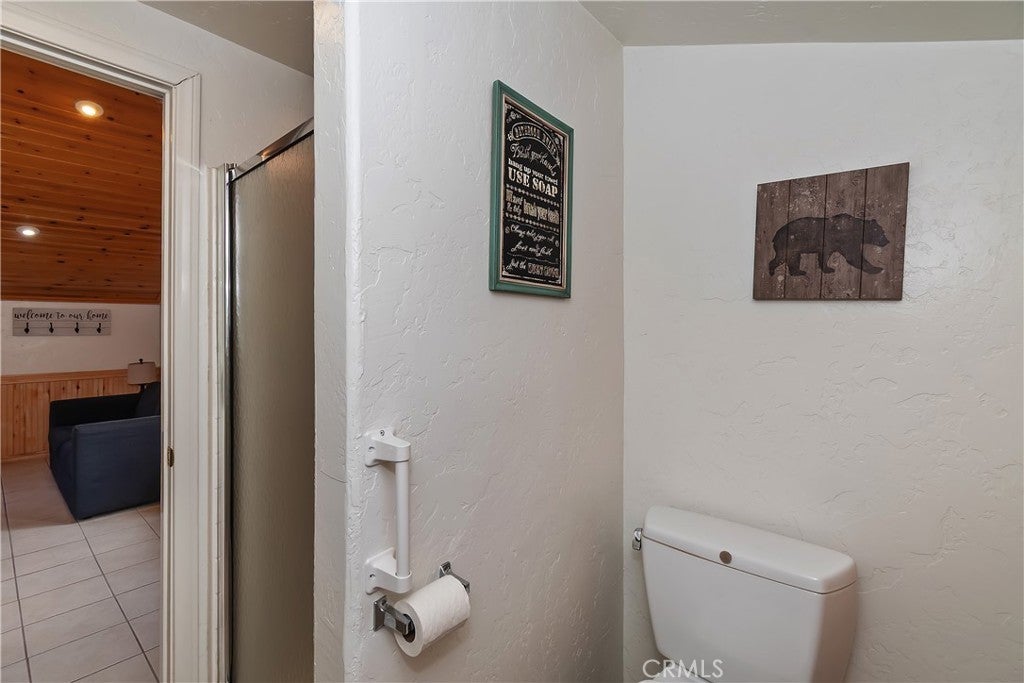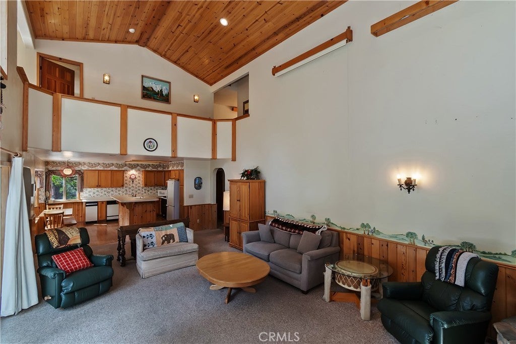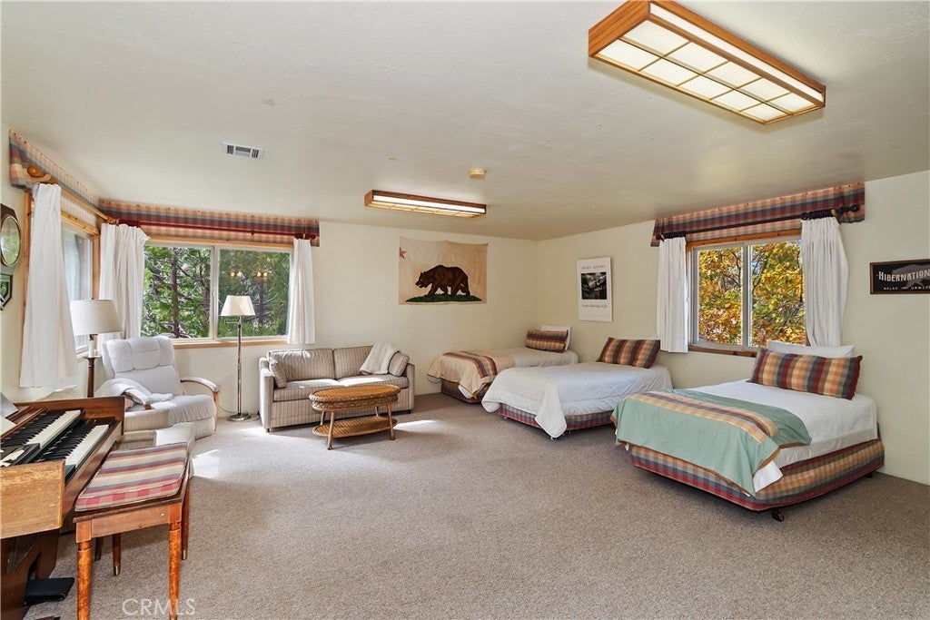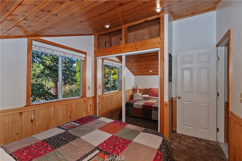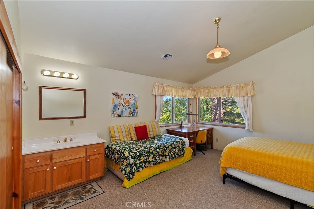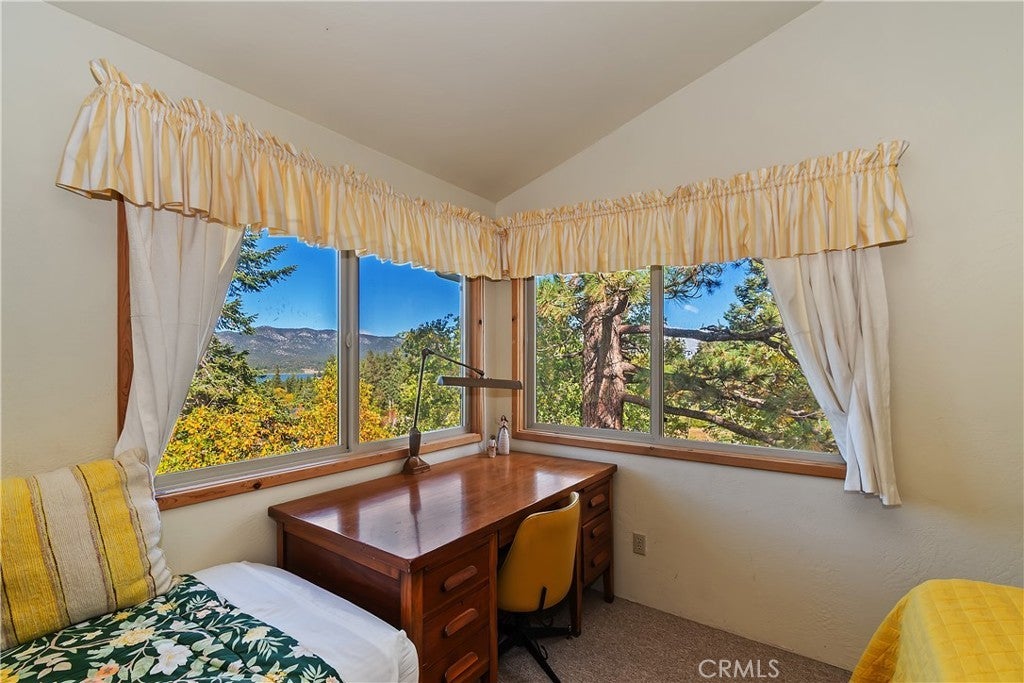 Up the San Bernardino Mountains you will find a charming town called Big Bear ~ Though small for its size, this town boasts a large lake, The Village and two resorts for skiing, snowboarding, hiking, mountain biking and all manner of recreation ~ Perched above the Village, while still within walking distance to it, you encounter this wonderful home ~ On 40,000 sq. ft., just shy of a full acre, is this 5 bedroom, 2.5 bathroom escape ~ It also has a detached guest house with it's own bedroom and bathroom ~ As you pull up to the property you will immediately fall head over heels with the setting ~ The long flat driveway leads you deeper onto the property where you find your home sitting on top of the hill like a monarch upon their throne ~ Your well treed land gives you the ultimate illusion of seclusion, making you feel as though you are alone in the forest ~ The outdoors gives you plenty of areas to relax from your front deck, firepit or your own lookout ~ As you enter you will absolutely love the floor to ceiling, and wood burning, rock fireplace in the Great Room ~ This is the ideal area to spend quality time with your loved ones creating lifelong memories together ~ The kitchen is open to the Great Room and has the cutest dining area you could wish for ~ Also on the main floor you have the master bedroom with peek-a-boo lake views, the laundry room with 1/2 bathroom and interior access to the garage ~ Upstairs you will find a large bedroom, above the master, that also has lake views, along with 2 more bedrooms, a large family room that is currently being used as the 5th bedroom and the second bathroom ~ The second bathroom is it's own work of art ~ The detached guest house is the perfect little cottage to add to this home's allure ~ Across the street from the National Forest, walking distance to the Village, 5 minutes to the lake, 8 minutes to the ski slopes and room to gather all your loved ones together under one roof! What are you waiting for?