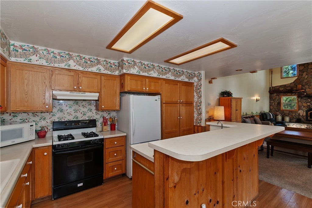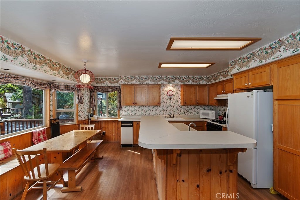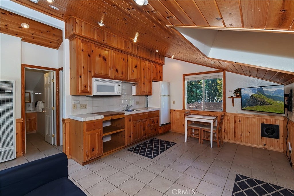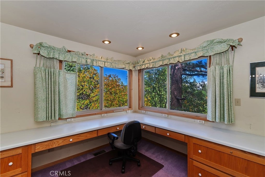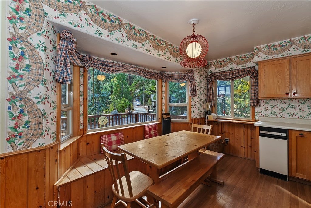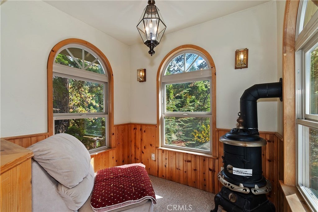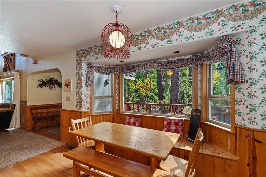 Up the San Bernardino Mountains you will find a charming town called Big Bear ~ Though small for its size, this town boasts a large lake, The Village and two resorts for skiing, snowboarding, hiking, mountain biking and all manner of recreation ~ Perched above the Village, while still within walking distance to it, you encounter this wonderful home ~ On 40,000 sq. ft., just shy of a full acre, is this 5 bedroom, 2.5 bathroom escape ~ It also has a detached guest house with it's own bedroom and bathroom ~ As you pull up to the property you will immediately fall head over heels with the setting ~ The long flat driveway leads you deeper onto the property where you find your home sitting on top of the hill like a monarch upon their throne ~ Your well treed land gives you the ultimate illusion of seclusion, making you feel as though you are alone in the forest ~ The outdoors gives you plenty of areas to relax from your front deck, firepit or your own lookout ~ As you enter you will absolutely love the floor to ceiling, and wood burning, rock fireplace in the Great Room ~ This is the ideal area to spend quality time with your loved ones creating lifelong memories together ~ The kitchen is open to the Great Room and has the cutest dining area you could wish for ~ Also on the main floor you have the master bedroom with peek-a-boo lake views, the laundry room with 1/2 bathroom and interior access to the garage ~ Upstairs you will find a large bedroom, above the master, that also has lake views, along with 2 more bedrooms, a large family room that is currently being used as the 5th bedroom and the second bathroom ~ The second bathroom is it's own work of art ~ The detached guest house is the perfect little cottage to add to this home's allure ~ Across the street from the National Forest, walking distance to the Village, 5 minutes to the lake, 8 minutes to the ski slopes and room to gather all your loved ones together under one roof! What are you waiting for?
