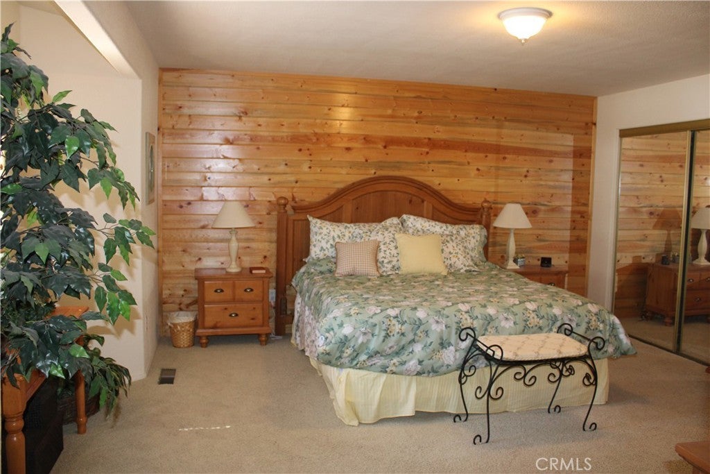 Significant price reduction!! Brand new sanding/recoating of the log siding, deck, door, & railings. Owner says there is potential space for the construction of a 2-car garage. Come see this LOG-style home nestled in the quiet Pinewood Estates neighborhood of Big Bear. Enjoy cozy times centered around the corner stone fireplace in the open great room. Log and pine tongue-and-groove accents throughout give the "mountainy" feeling visitors crave. The many conveniences and features include: dishwasher; laundry area; furnishings; spatious level pine-treed corner lot; front and back decking; hiking trails & ski areas nearby; and a short distance to the Convention Center (Oktoberfest, etc.) and SnowPlay tubing. Don't miss this 3 bedroom/2 bath, 1-story home, so centrally located, yet certainly off the beaten path.