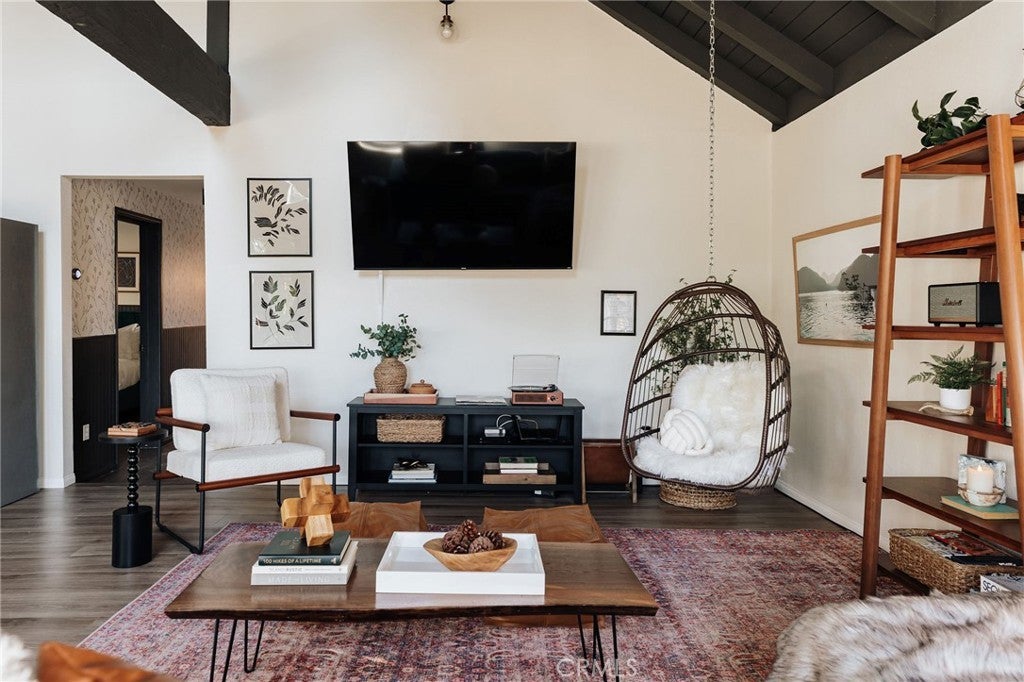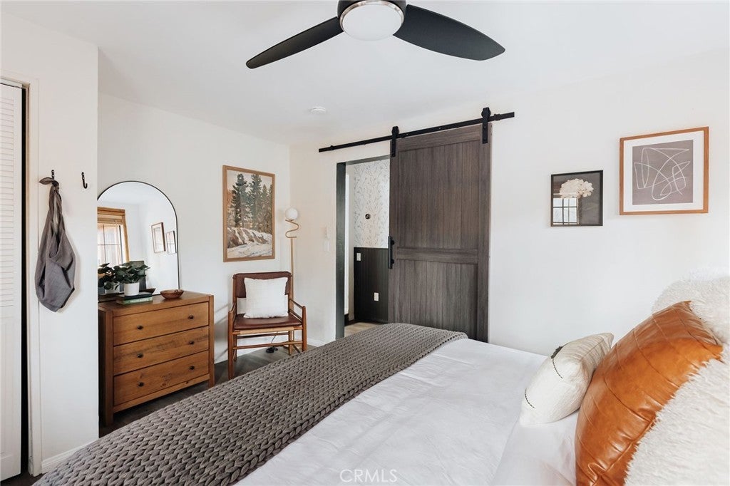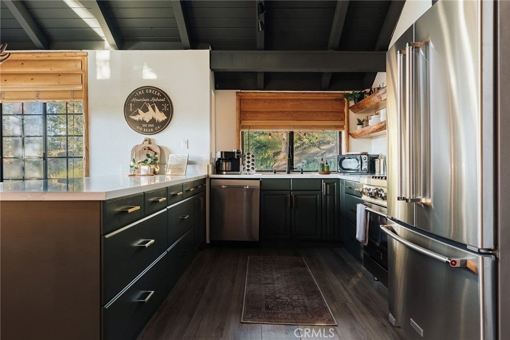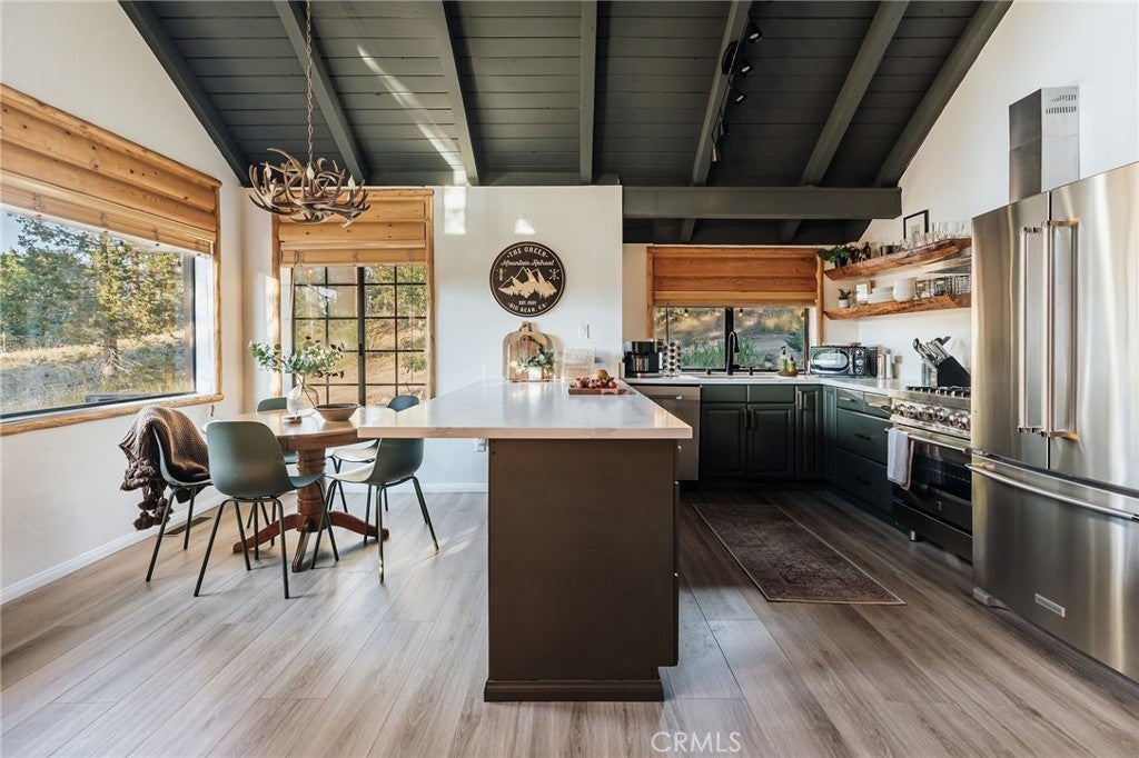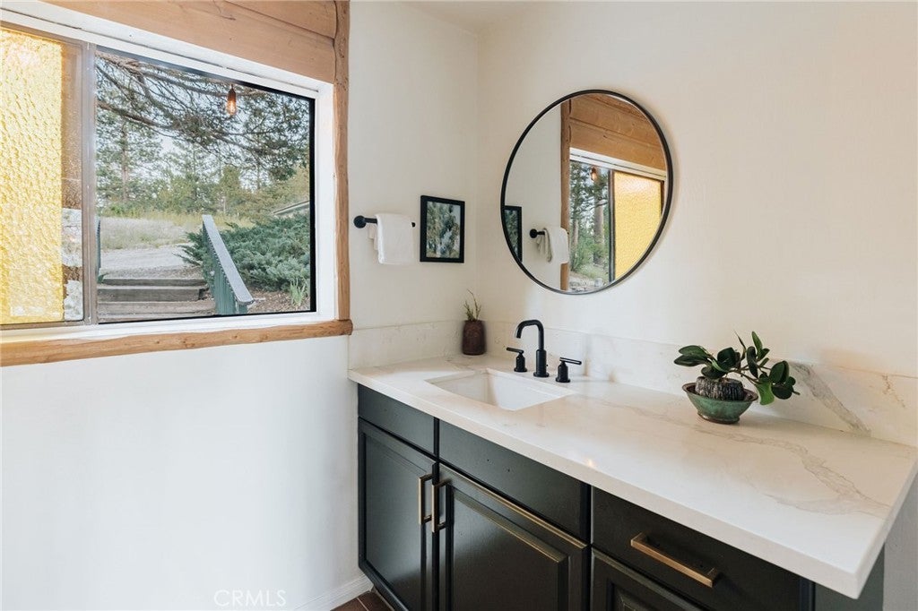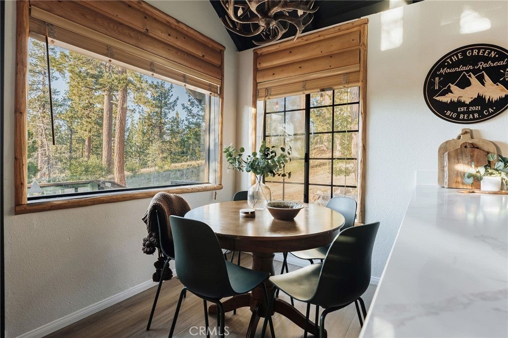 NOW UNDER CONTRACT | BACKUP OFFERS WELCOME >> With $75k in upgrades, $100k in designer touches, and over 200 raving reviews on Airbnb, it’s no surprise why this cabin performs so well! Green Mountain Retreat is a beloved Big Bear getaway, celebrated for its intentional design, inviting atmosphere, and seamless connection to nature. Every corner tells a story of balance between modern refinement and the grounding beauty of the mountains. Professionally designed and remodeled with curated textures, warm woods, and artful finishes, it’s a space crafted to be experienced, not just seen. The main living area is filled with natural light, framed by vaulted ceilings and large picture windows that capture the delightful feeling of being outdoors. The open floor plan flows effortlessly from a stunning designer kitchen with rich green cabinetry, quartz countertops, stainless-steel appliances, and floating shelves into an inviting dining and lounge space designed for connection and comfort. The cabin offers two spacious and serene bedrooms. Each room evokes boutique-hotel vibes with layered textiles, thoughtful lighting, and a palette inspired by the surrounding forest. The remodeled bathroom features terracotta tile flooring, bright shower tile, and matte-black fixtures for a luxurious finish. Outside, the mood shifts from morning calm to twilight glow. A private jacuzzi sparkles beneath string lights, a firepit invites stories under the stars, and the spacious deck reveals peekaboo lake views. Guests also enjoy the spacious yard, EV charging, and a garage. The cabin includes central heat and A/C. In a prime location near Pine Knot Trail, The Village, the Alpine Slide, and local favorites like Tropicali, Oakside, and Himalayan Grill. Whether you’re seeking a personal escape, a family retreat, or a proven short-term rental investment, this home invites you to slow down, breathe deep, and experience mountain living through the lens of design. And it's priced to sell promptly!