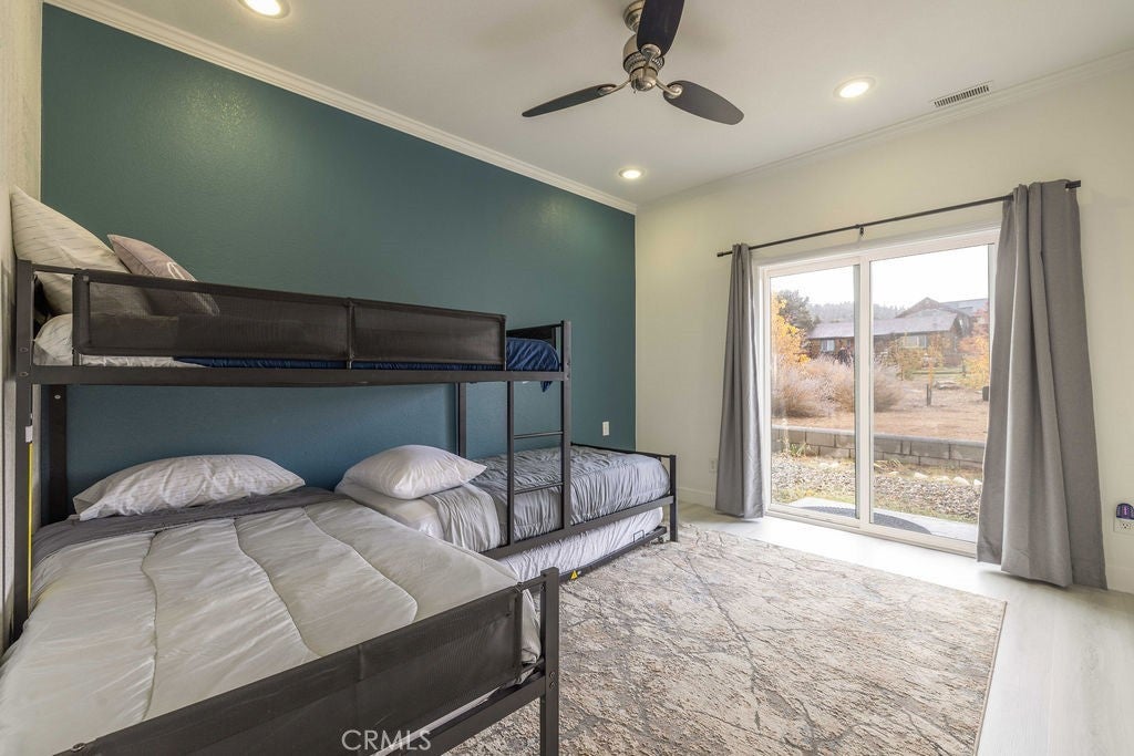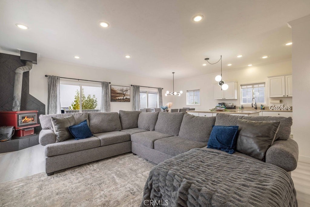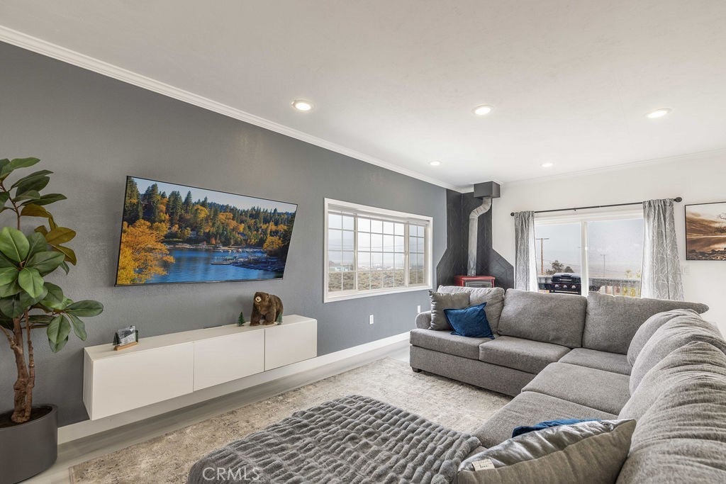 Panoramic mountain and ski slope views! Built in 2008 and recently remodeled, this beautifully updated home blends modern design, comfort, and year-round mountain beauty. It captures stunning views of Snow Summit, Bear Mountain, and the surrounding ranges from nearly every window. Step inside to a light-filled open floor plan where large dual-pane windows fill the living area with natural light. The space flows seamlessly into the dining area and upgraded kitchen, featuring tons of cabinet storage space, granite countertops, stainless steel appliances, and a spacious center island perfect for gathering. Enjoy cozy evenings by the freestanding wood-burning stove or start your mornings on the upper deck with coffee as the sun rises over the mountains. The oversized upstairs primary suite offers a private retreat an en suite bathroom with a deep soaking tub, and a walk-in closet. Sliding doors open to a private balcony overlooking the valley, the perfect spot to unwind and take in the scenery. On the lower level, two additional bedrooms provide generous space for family and guests, along with a full bath, laundry room, and garage access. An extra-deep two-car garage, currently designed as a game room with foosball and air hockey tables; offering a great space for fun or flexible use as a gym, studio, or workshop. Outside is a large fenced yard with mature fruit trees. The home also features a tankless water heater, and plenty of parking for guests or recreational vehicles. Located just minutes from Big Bear Lake, ski resorts, and miles of hiking trails, this remodeled mountain home offers the perfect blend of peaceful seclusion and convenience. Whether you’re seeking a full-time residence, weekend escape, or investment, this is a great home!