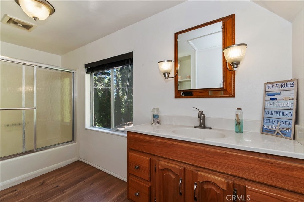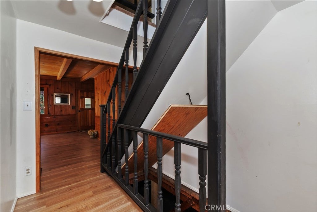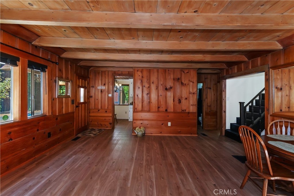 Take a look at this beautiful vintage cabin from 1935 with so many thoughtful upgrades! It sits on a corner lot and offers easy entry with only 2 small steps. Two bedrooms conveniently located on the main level, and the master bedroom upstairs is complete with a full bathroom and cozy sitting area. Breathtaking custom split granite wood burning fireplace with gas starter and arrowhead features demands to be the focal point of this room! Some of the many upgrades include electrical, tankless/on-demand hot water heater, plumbing, as well as a Generac Generator for emergencies and a Lorax Ultra Surveillance system for peace of mind. Beautifully updated kitchen, with newer appliances. Rustic T&G wood paneling enhances the cabin's charm. Lower level has an expansive open workshop/cellar type area, offering ample space and numerous possibilities. Outdoors you can get your fill of nature's beauty on this wrap-around deck or out on the gentle sloping yard. Easy access drive through style driveway with plenty of off-street parking. Additionally, the possibility of RV parking around the side, there's even a big wood or tool shed! This property is about an hour to Big Bear, and typically under 2 hours from LA, making it a fantastic commuter location. And of course, it is very close to many popular restaurants and shops in oh so popular Sky Forest..... home of LouEddie's Pizza. Minutes to historic Lake Arrowhead Village and the ever popular SkyPark at Santa's Village!