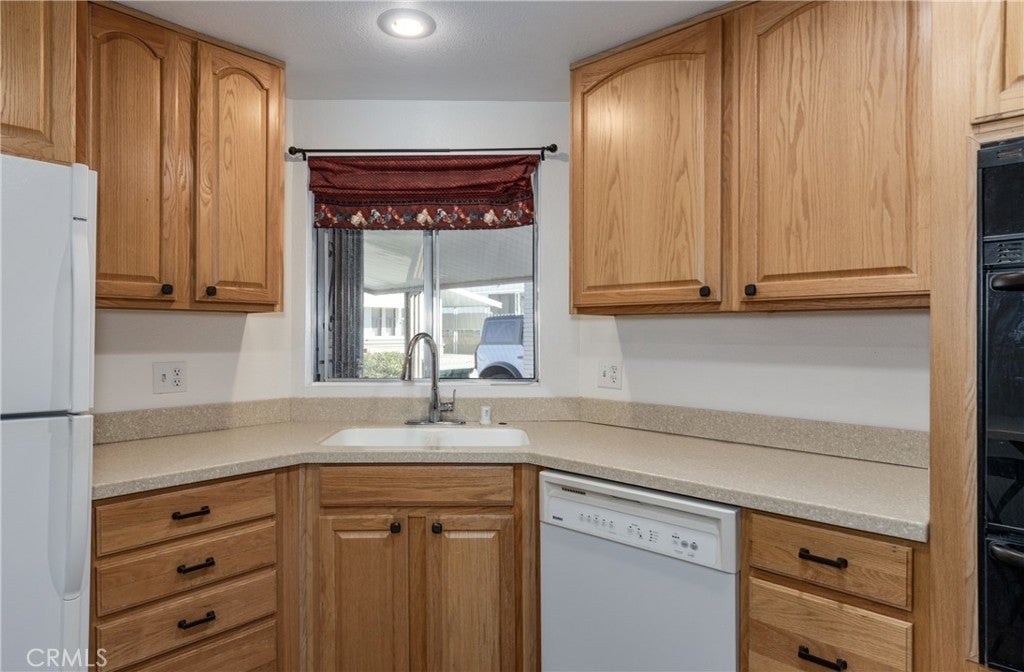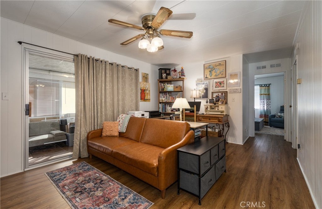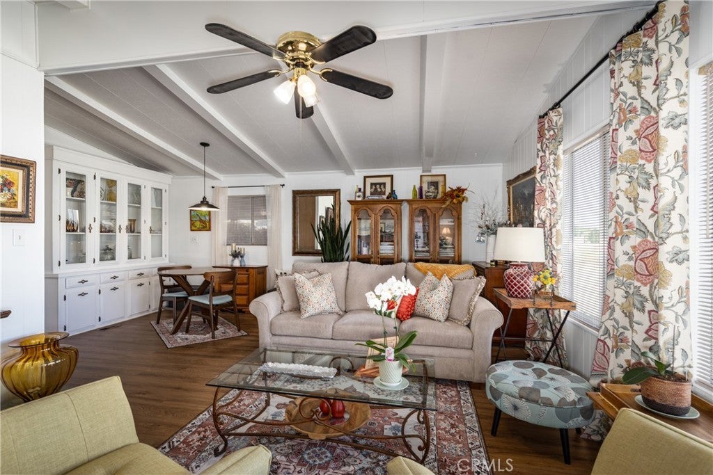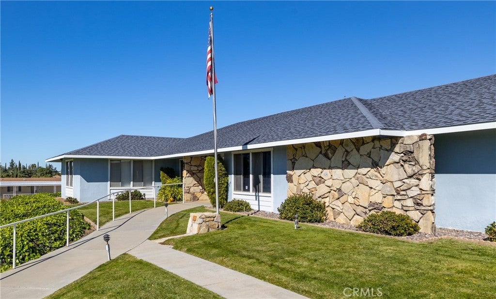 Super clean and beautifully updated home located in the desirable 55+ Mountain Air Mobile Home Park. This double-wide features 2 bedrooms, 2 baths, and an additional bonus room for extra living space or an office. The bright living room offers cathedral beamed ceilings and beautiful mountain views. Enjoy a cozy family room, remodeled kitchen with Corian counters, soft-close cabinets and drawers, and a convenient inside laundry room with built-in desk and cabinets. Updated vinyl flooring and fresh interior paint provide a modern feel. The home also has a newer heating/air conditioning unit and roof. Refrigerator, washer, dryer, and big screen TV are included in the sale. Exterior highlights include a covered carport with parking for two, storage shed, front porch, and private back patio. The lawn has been refreshed with a new sprinkler system. Mountain Air Mobile Home Park is a well-maintained 55+ community featuring a clubhouse, swimming pool, and beautifully landscaped grounds. Enjoy low monthly space rent, quiet surroundings, and convenient access to Interstate 10, shopping, dining, and medical facilities. Move-in ready and immaculate — a must see!