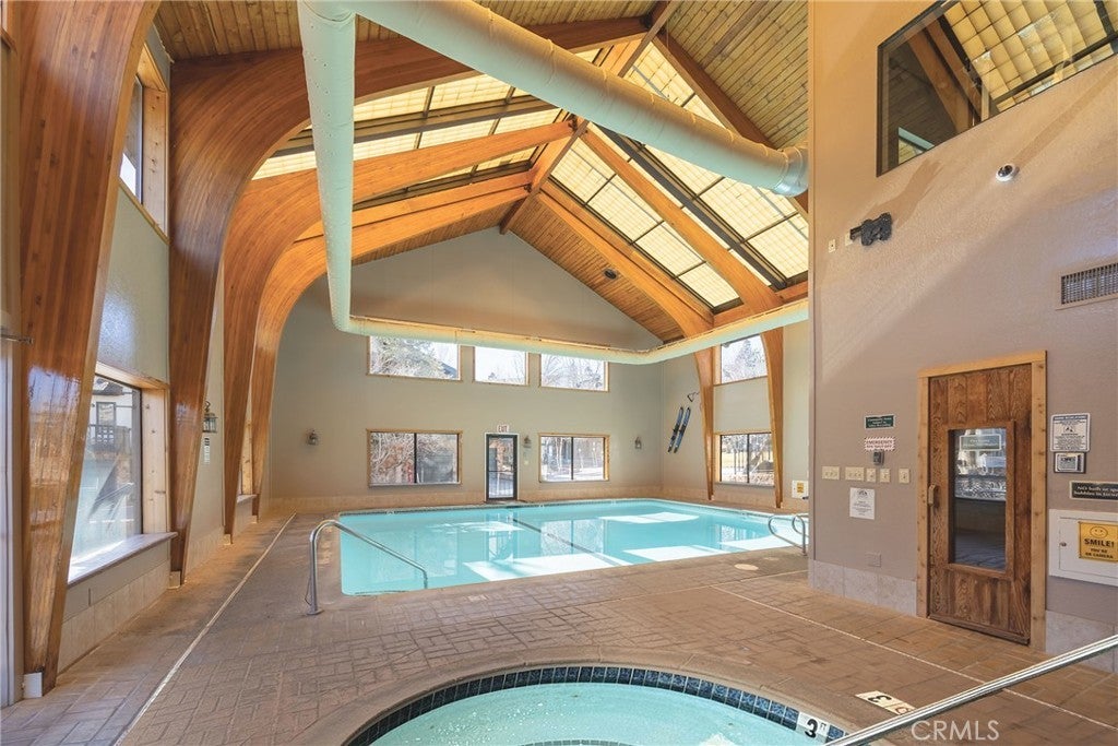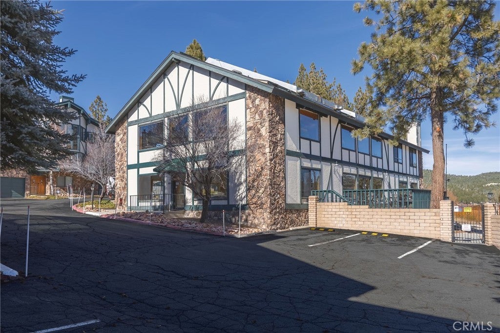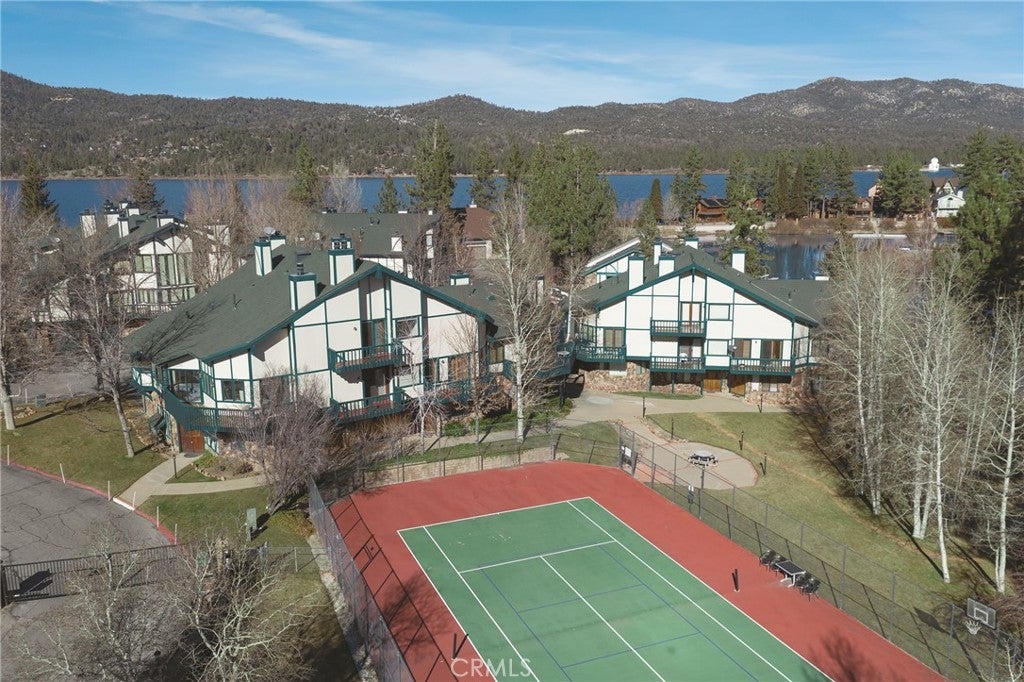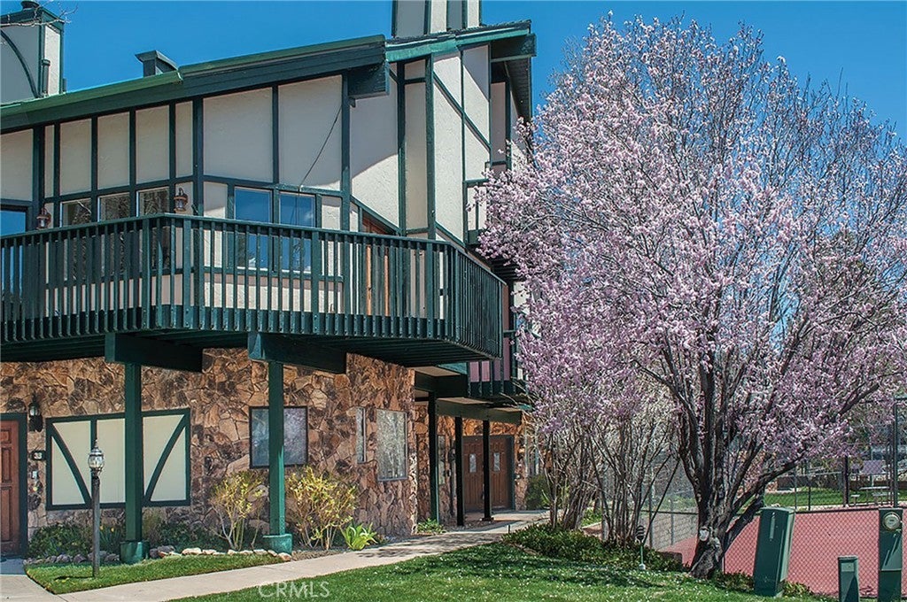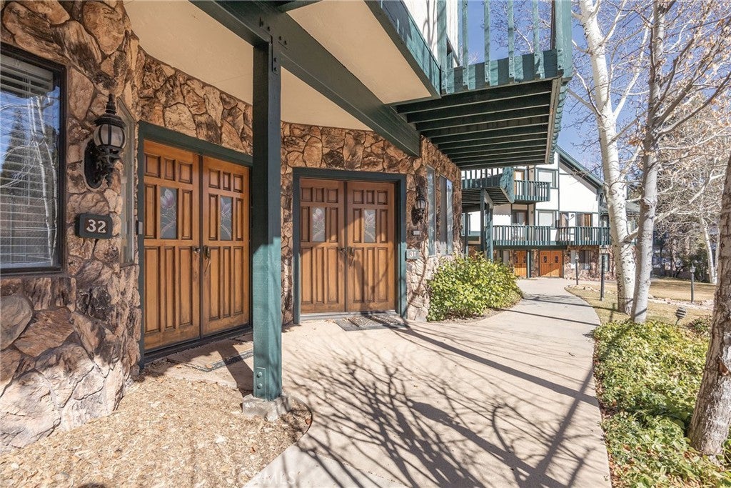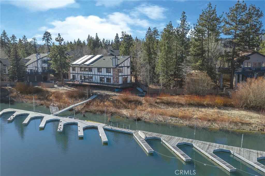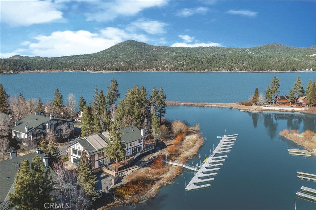 Viking Estates delivers resort-style living at its best featuring great amenities including a dock slip for owners (on a first request basis), lake access to the fun and adventure of the lake & a great clubhouse complex that can be enjoyed in all seasons offering an indoor pool, spa, lakeside sun deck, sauna and locker room, a well-equipped gym & a game room with pool table! Owners may also reserve the lakeside clubhouse for personal gatherings. This south-facing condominium delivers great natural light, updated wood-style flooring & a desirable location that overlooks the tennis-pickleball-basketball area. The open-concept kitchen, living & dining area offers a focal-point fireplace, breakfast bar & French doors opening to one of the homes two sunny decks providing the opportunity to enjoy the outdoors. Featuring 2 en-suite bedrooms + a convenient 1/2 bath, the primary suite boasts soaring vaulted ceilings, a natural gas fireplace, spacious closets, shower/tub, dual-sink vanity & its own deck. There is an in-unit laundry room with washer & dryer included, central heating & an attached single car garage! Offering a rare lakefront-adjacent location with the village shops & restaurants, ski slopes, hiking, mountain biking and many of Big Bear's most popular activities just minutes away! This intimate community is gated for added security. For extra ease, winter snow removal for the interior road & parking areas is handled by the HOA. This unit offers great options as a full-time home or a fantastic personal getaway with the added potential as an income-producing short term rental (STR)!
