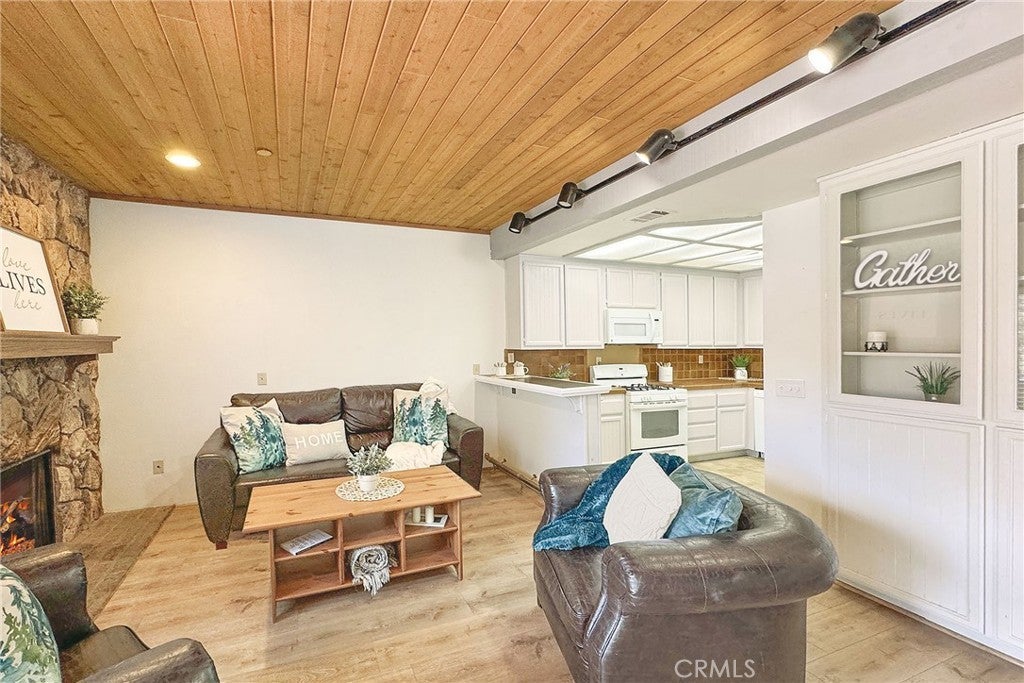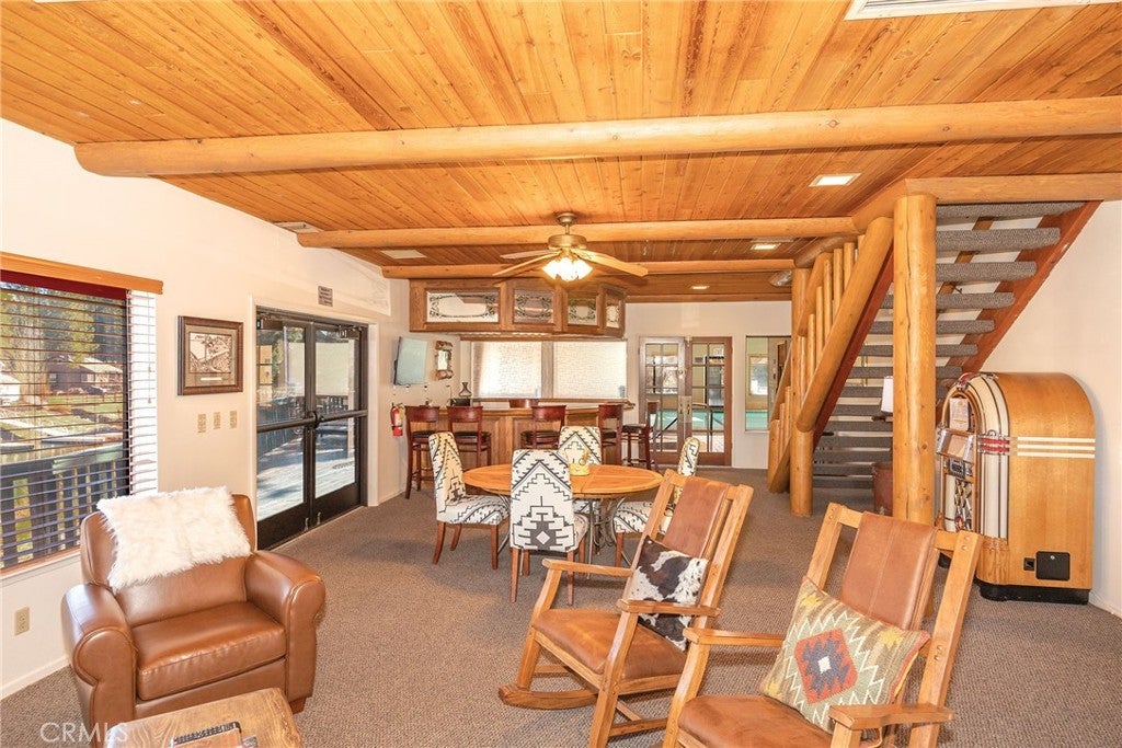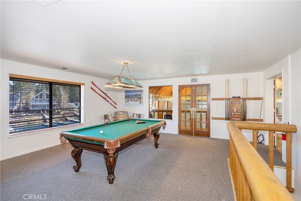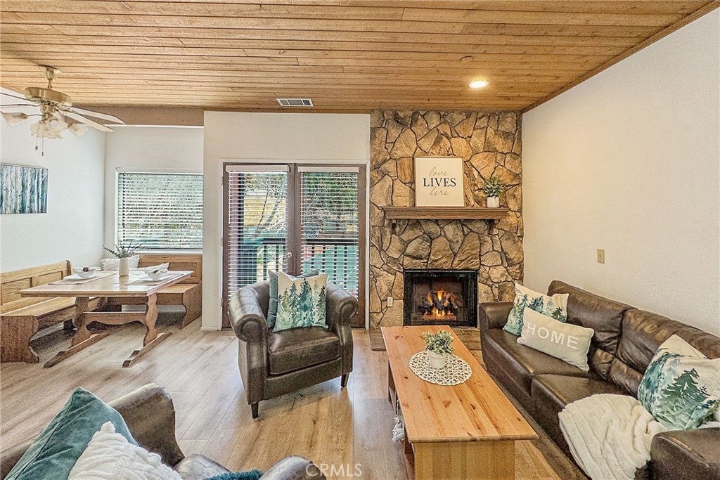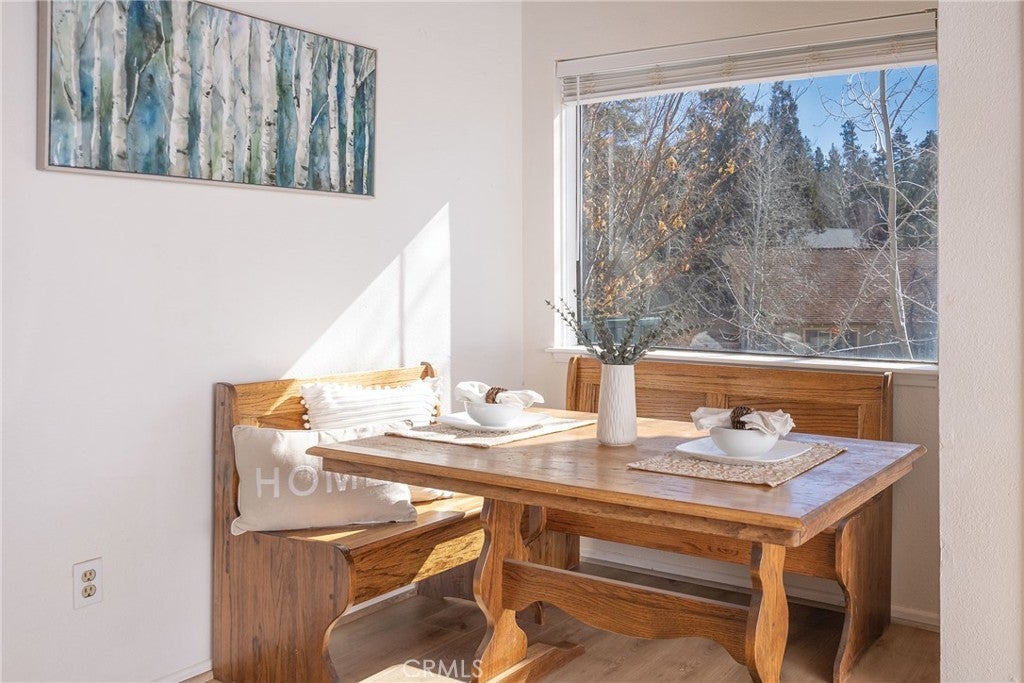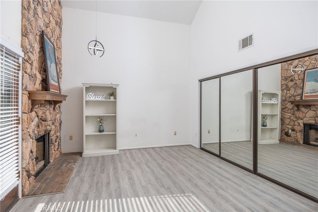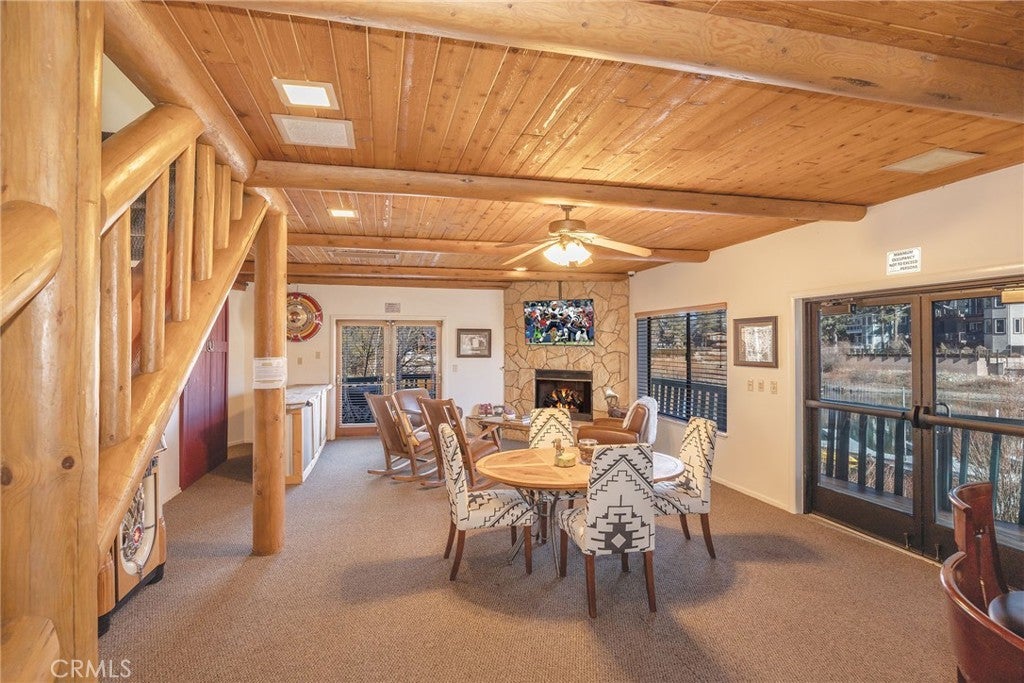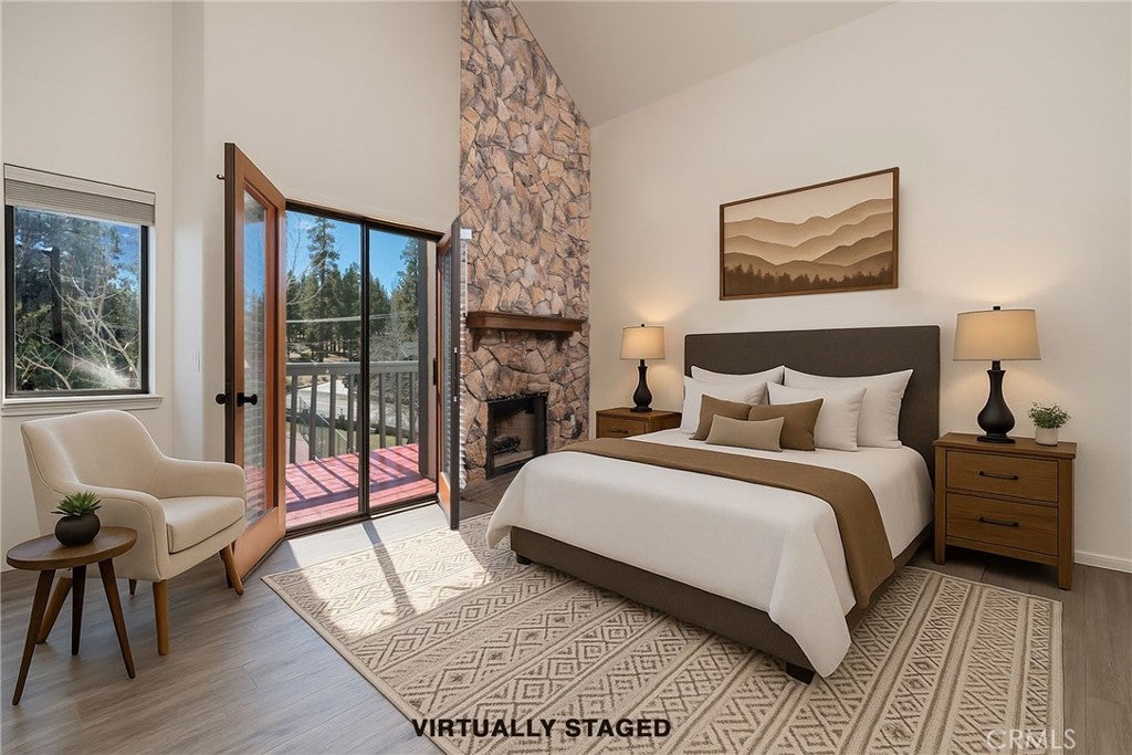 Viking Estates delivers resort-style living at its best featuring great amenities including a dock slip for owners (on a first request basis), lake access to the fun and adventure of the lake & a great clubhouse complex that can be enjoyed in all seasons offering an indoor pool, spa, lakeside sun deck, sauna and locker room, a well-equipped gym & a game room with pool table! Owners may also reserve the lakeside clubhouse for personal gatherings. This south-facing condominium delivers great natural light, updated wood-style flooring & a desirable location that overlooks the tennis-pickleball-basketball area. The open-concept kitchen, living & dining area offers a focal-point fireplace, breakfast bar & French doors opening to one of the homes two sunny decks providing the opportunity to enjoy the outdoors. Featuring 2 en-suite bedrooms + a convenient 1/2 bath, the primary suite boasts soaring vaulted ceilings, a natural gas fireplace, spacious closets, shower/tub, dual-sink vanity & its own deck. There is an in-unit laundry room with washer & dryer included, central heating & an attached single car garage! Offering a rare lakefront-adjacent location with the village shops & restaurants, ski slopes, hiking, mountain biking and many of Big Bear's most popular activities just minutes away! This intimate community is gated for added security. For extra ease, winter snow removal for the interior road & parking areas is handled by the HOA. This unit offers great options as a full-time home or a fantastic personal getaway with the added potential as an income-producing short term rental (STR)!