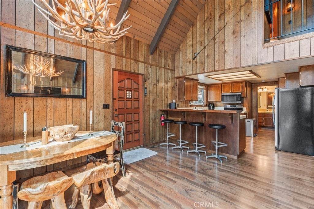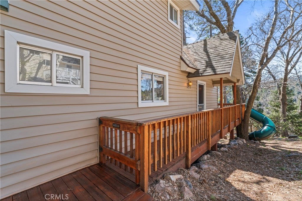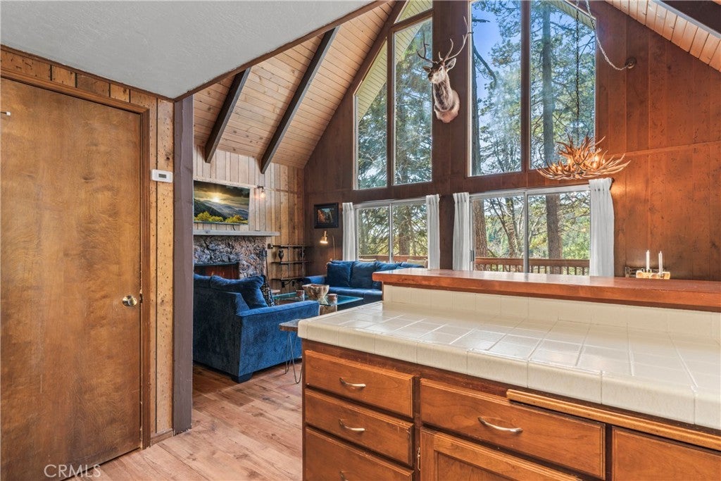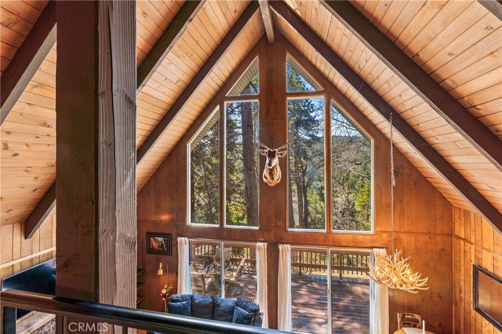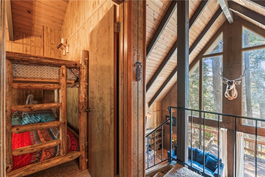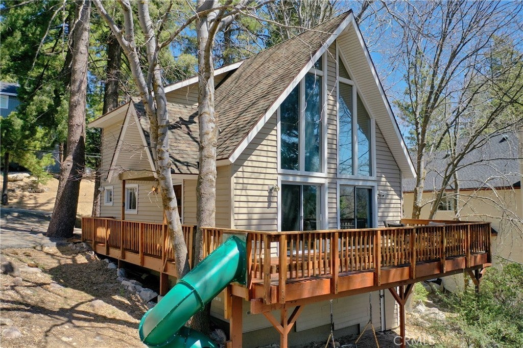 Don't Miss this Mountain Chalet with Lake Rights! Discover the perfect blend of rustic elegance and modern mountain living in this beautifully maintained A-frame style chalet, complete with coveted lake rights. Tucked along a tranquil, tree-lined street, this refined retreat offers nearly a quarter-acre of gently sloping, usable land—an inviting setting for year-round outdoor enjoyment. A level, covered entry welcomes you into a dramatic great room showcasing soaring open-beam ceilings, rich hardwood floors, and a striking wall of glass that frames peaceful forest views and floods the space with natural light. Centered around a classic stone, wood-burning fireplace, the open-concept living area flows seamlessly into an inviting dining space and a well-appointed kitchen featuring crisp white tile countertops, a breakfast bar, and generous cabinetry. Step outside onto the expansive deck—an entertainer’s dream—perfect for al fresco dining, lounging under the stars, or simply breathing in the cool mountain air. A custom Twister Slide and generous deck space add a playful, one-of-a-kind touch to this sophisticated mountain haven. The main level offers a comfortable bedroom and full bath, while the upper level features two spacious guest rooms and a second full bath. Thoughtful updates include newer carpet upstairs paired with original wood paneling that enhances the home’s authentic cabin warmth and sophistication. Designed for comfort and convenience, the property includes parking for up to four vehicles and sits on a main plowed road for effortless year-round access. Just minutes from the lake and The Village, this residence may be available fully furnished—creating a truly turnkey opportunity. Whether you envision it as a full-time residence, a serene vacation escape, or a high-end investment property, this exceptional mountain chalet offers timeless design, natural beauty, and effortless mountain lifestyle. Schedule your private showing and experience mountain luxury today!