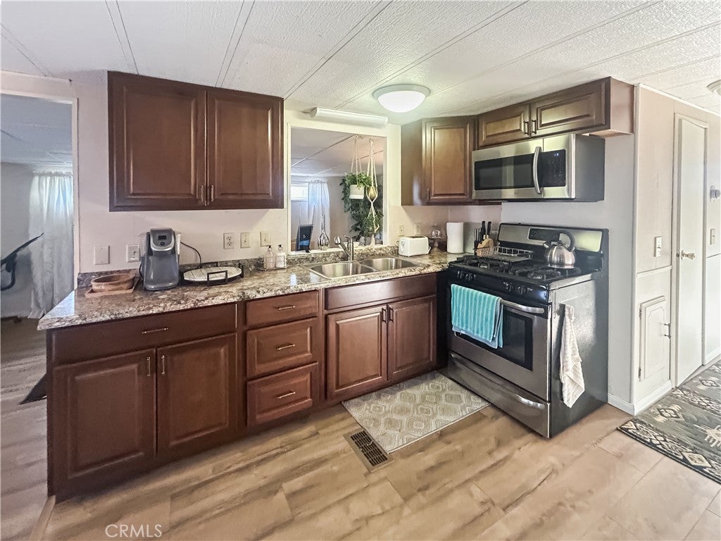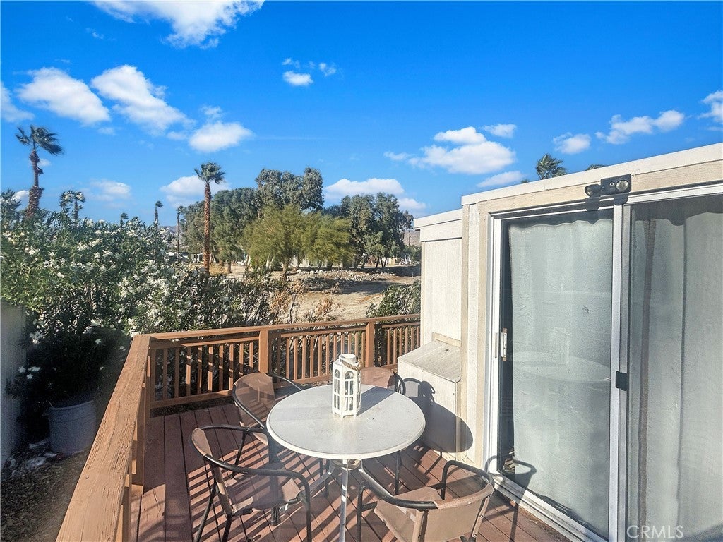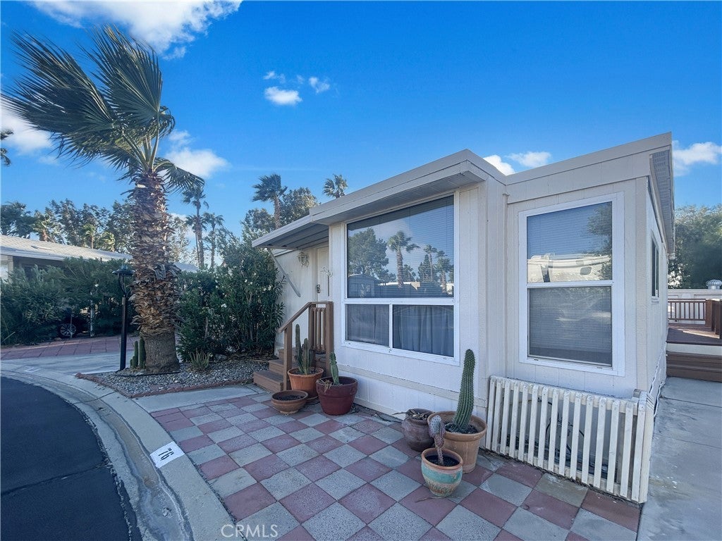 Enjoy resort-style living in this beautifully maintained 712 sq. ft., 1-bedroom, 1.5-bath Park Model at The Sands Golf & RV Resort in Desert Hot Springs. Ideally located near the clubhouse and amazing community amenities, this charming retreat sits next to a tranquil lake with no neighbor on one side, offering extra privacy and peaceful desert views. Inside, you’ll find a thoughtfully designed open layout with stylish laminate flooring, and large windows that frame the surrounding palms and mountains. The upgraded kitchen features lots of cabinetry, granite countertops, and stainless-steel appliances, while the dining and living areas flow together seamlessly for comfortable entertaining. The spacious primary suite includes an en-suite half bath and direct access to the private rear deck overlooking the lake—perfect for morning coffee or relaxing at sunset. Additional highlights include an indoor laundry area with a stacked washer and dryer, full guest bath, driveway parking, low-maintenance landscaping, and a storage shed for added convenience. Residents of The Sands Golf & RV Resort, a gated 55+ community near Palm Springs, enjoy an active desert lifestyle with resort-style amenities including a 9-hole executive golf course, heated pool and spa, pickleball and tennis courts, a fitness center, and a vibrant clubhouse hosting activities, games, and social events. Surrounded by the natural beauty of the San Jacinto Mountains and just minutes from Joshua Tree National Park, Coachella Valley Preserve, and shopping and dining in downtown Desert Hot Springs, this home offers the perfect blend of comfort, convenience, and carefree desert living.