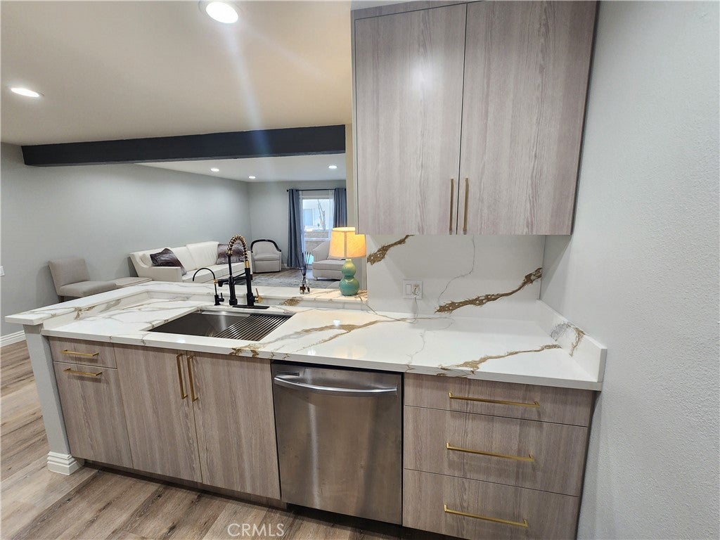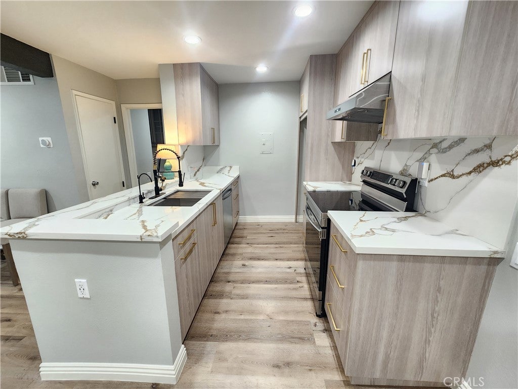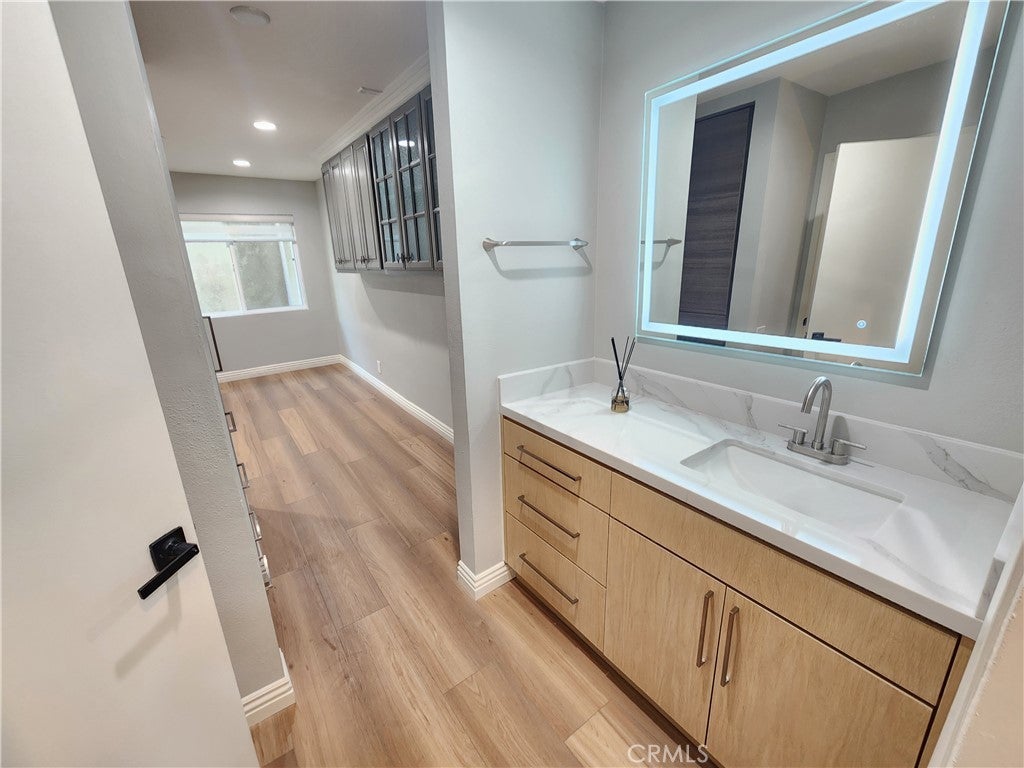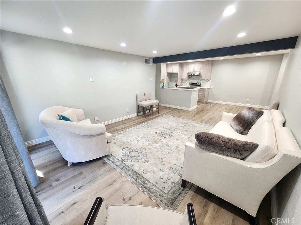 Gorgeous 2 bedroom -2 bath Condominium located in the heart of Encino. This unit has been completely upgraded with new custom kitchen cabinets, Quartz countertops, stainless steel appliances, vinyl flooring, central AC. This home provides 990 Sq ft of comfortable living space ,which is perfect for professionals or small households. The community has a pool, spa, sauna, recreation room, tennis court, gym. This unit is conveniently located near all shops, restaurants, freeways, hiking trails. Call today to schedule a showing!