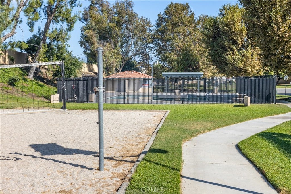 Meticulously maintained and upgraded two-bedroom one-bathroom home with great curb appeal in the conveniently located Century Village community. High ceilings, fresh interior paint, dual-paned windows and sliders, brand-new outlets and light switches throughout. Kitchen was remodeled in 2019/2020 and has several custom cabinet features, including a pot rack, cookie sheet and cutting board cubbies, Lazy Susans, pull-out drawers and spice rack, and hidden pull-out waste bin. The wall opening to the living room was enlarged, and the solid surface countertop extends to create a breakfast bar. Bosch dishwasher, KitchenAid convection range, under-sink reverse osmosis system connects to the included refrigerator. Full bathroom was remodeled in 2020, and an additional shower head was added. Living room with fireplace and a cozy window seat has plenty of room for a dining table and chairs. Primary bedroom with a large closet has access to the bathroom and back patio. Second bedroom has added lighting on the wall ledge. The HVAC system was replaced in 2018. Landscaped backyard with tiled patio, custom deck and walkway, and an herb and vegetable garden. There are several fruit trees in the back and front yards, including lemon, cherry, fig, pear/quince, and peach, plus grape vines and a blackberry bush. Finished shed with wood flooring, window, and wall A/C would make a great office, craft room, or playroom. Finished garage with epoxy flooring, newer insulated garage door, shelving, overhead storage area, and pegboard wall. Association pool, playground, volleyball court, and only 3 miles to Loma Linda University Medical Center.