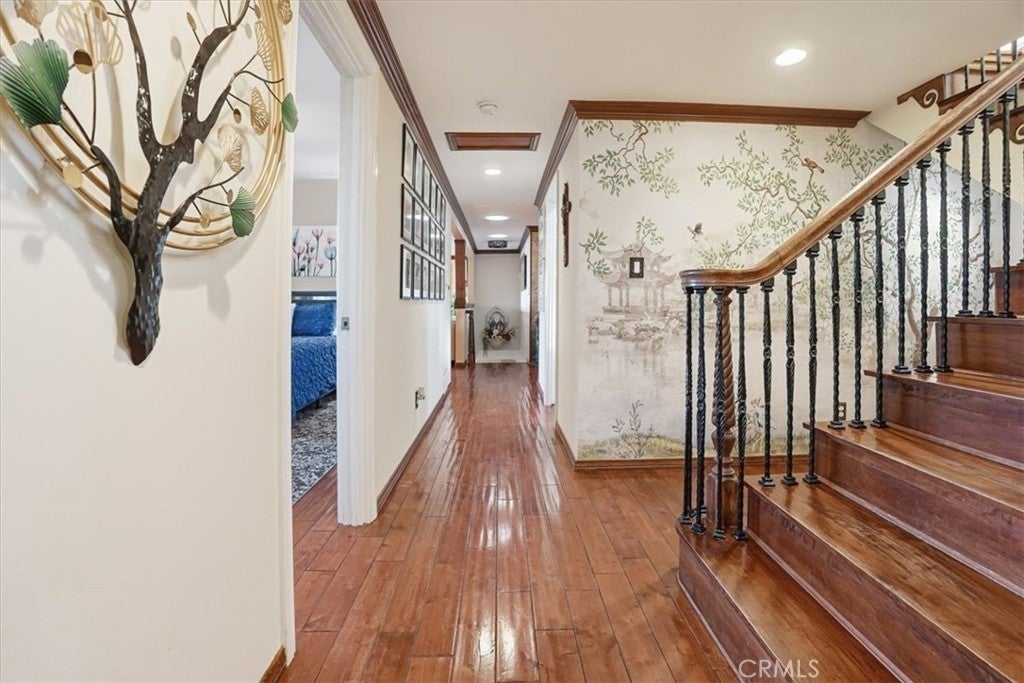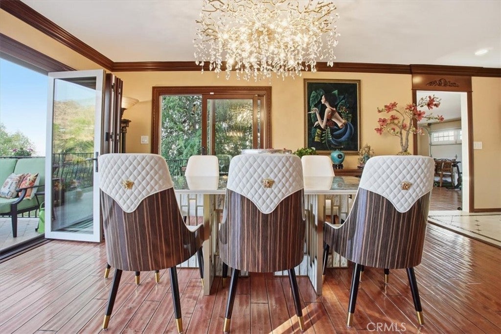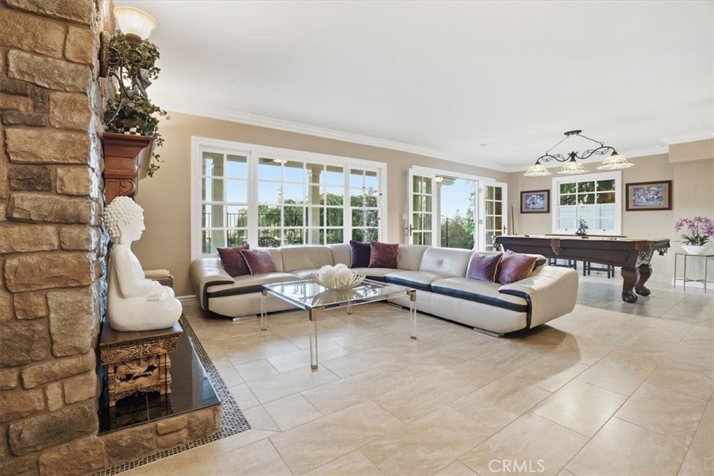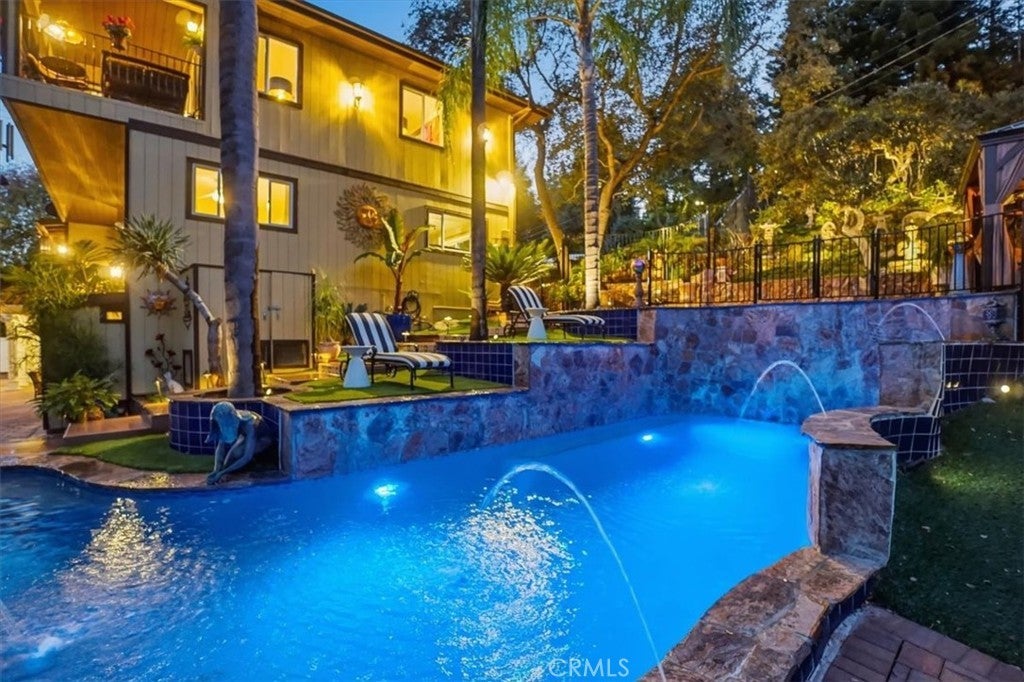 Extraordinary Monrovia Hillside Retreat with Unmatched Views The views are the story at this extraordinary Monrovia hillside retreat. From nearly every room, enjoy sweeping, unobstructed vistas of city lights, rolling hills, and distant mountains—a breathtaking panorama that defines elevated Southern California living. Designed to maximize its incredible setting, the home features dramatic accordion-style doors that open the main living area to a newly built terrace that features an electric retractable awning, creating a seamless indoor-outdoor flow that blurs the line between home and horizon. Step inside to a warm and inviting living room with an elegant fireplace and rich flooring that extends into the dining area and beyond. The expansive kitchen is a chef’s dream, featuring an upgraded Wolf cooktop, custom built-in Miele refrigerator, double ovens, wine fridge, bar with TV, and sophisticated finishes that complement the home’s architectural elegance. Every detail throughout reflects modern luxury and refined design. The main level includes three generous bedrooms, each with mirrored closet doors, abundant natural light, and timeless flooring. Bathrooms feature walk-in showers, stone countertops, and high-end finishes. Upstairs, the primary suite is a true sanctuary—complete with a private balcony overlooking the city that connects to an additional retreat room for additional relaxation, a spa-inspired bathroom with dual sinks, walk-in shower, vanity area, and spacious walk-in closet. Outdoors, your private resort awaits. A newly resurfaced Pebble Tec pool, brand-new hot tub, gazebo, and new fencing create a perfect blend of relaxation and style. The pool is powered by a brand new paid-off solar system dedicated exclusively to pool heating, offering sustainable comfort all year long. Multiple seating areas provide the ideal setting for entertaining or enjoying quiet evenings beneath the stars. The lower level features a large den with a stunning stone fireplace and generous living area, perfect for a game room, media space, or guest retreat. A two-car garage with tiled flooring adds both functionality and style. Experience luxury, privacy, and panoramic beauty—this is the ultimate Southern California getaway.
