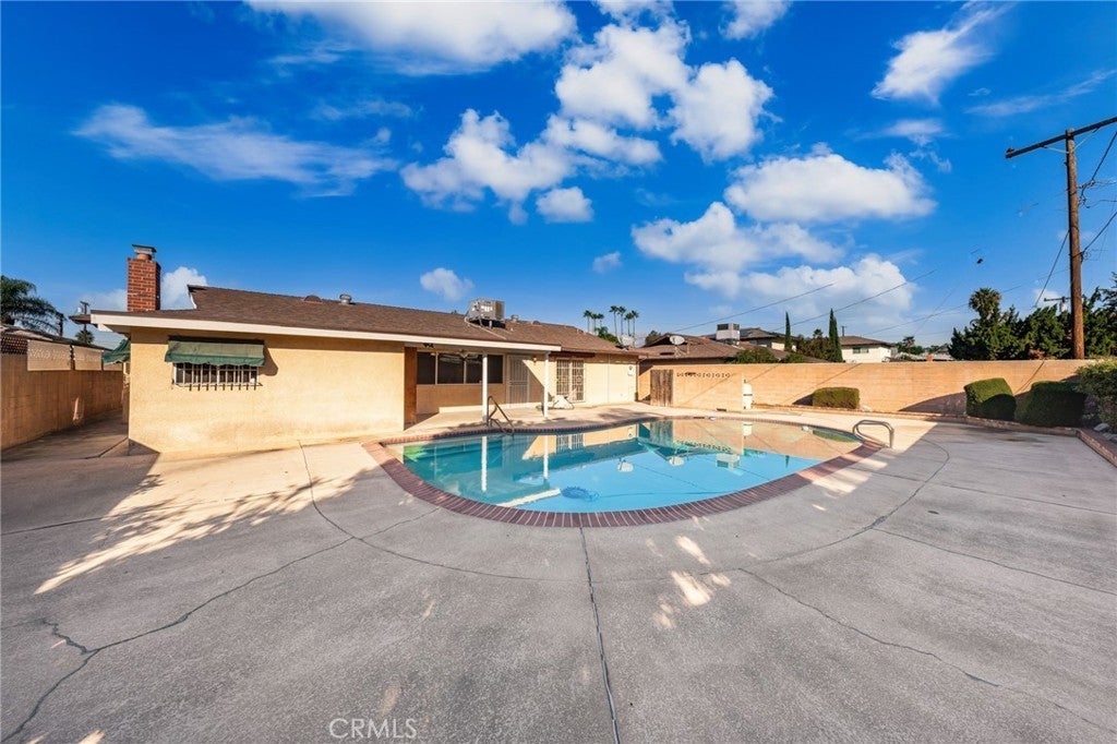Single story, turnkey pool home with an attached two car garage and no HOA - minutes from Kaiser Fontana! Located on a quiet cul-de-sac street off of Sierra Ave near the In N Out Burger and El Super, this move in ready home is a peaceful location that is still convenient for your commute. You're greeted by mature landscaping. Enter the home via the iron gate, or directly through the garage. The spacious kitchen has tremendous counter space and plenty of built in storage. All appliances, including a brand new range and the french door refrigerator, are included! There are three bedrooms, including a primary with it's own bathroom and a sliding glass door with direct access to the private, low maintenance back yard. In addition to the bedrooms, there is a fourth room with it's own access that could be used as a bedroom or home office. The home also features two living areas - a sizable living room and a cozier den with a fireplace. There is a block wall surrounding the property, and the semi finished garage has insulation in the ceilings, drywall, a shop sink, overhead storage, and a wall unit AC.