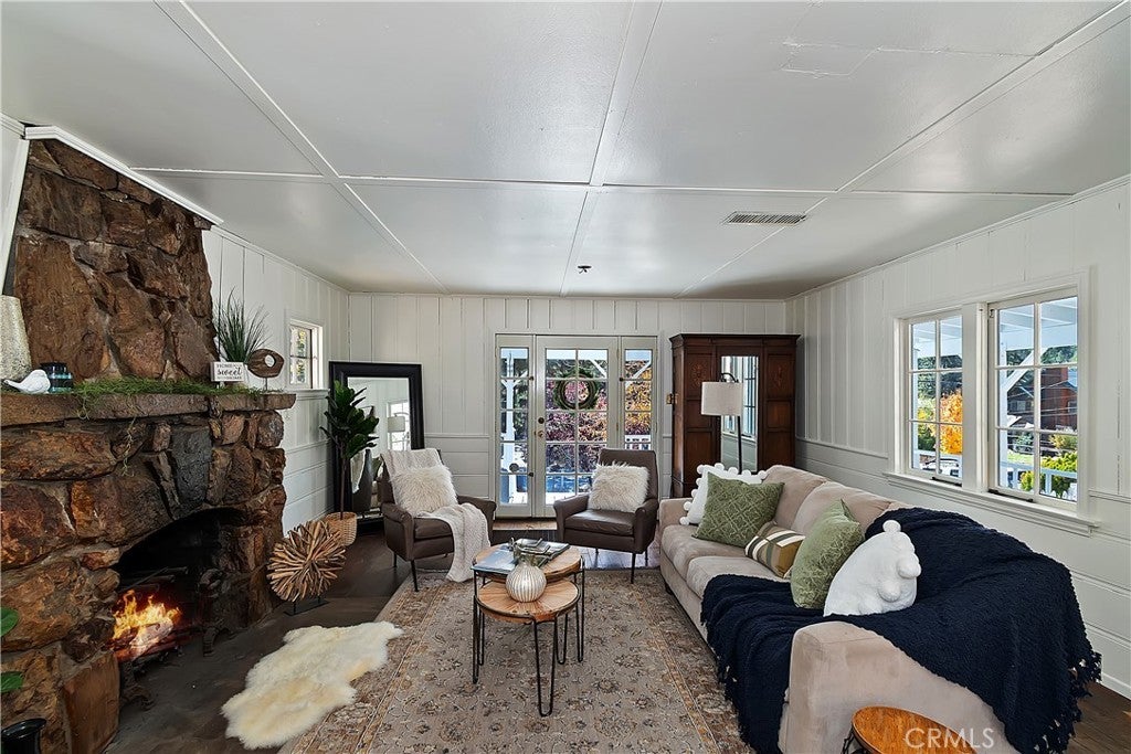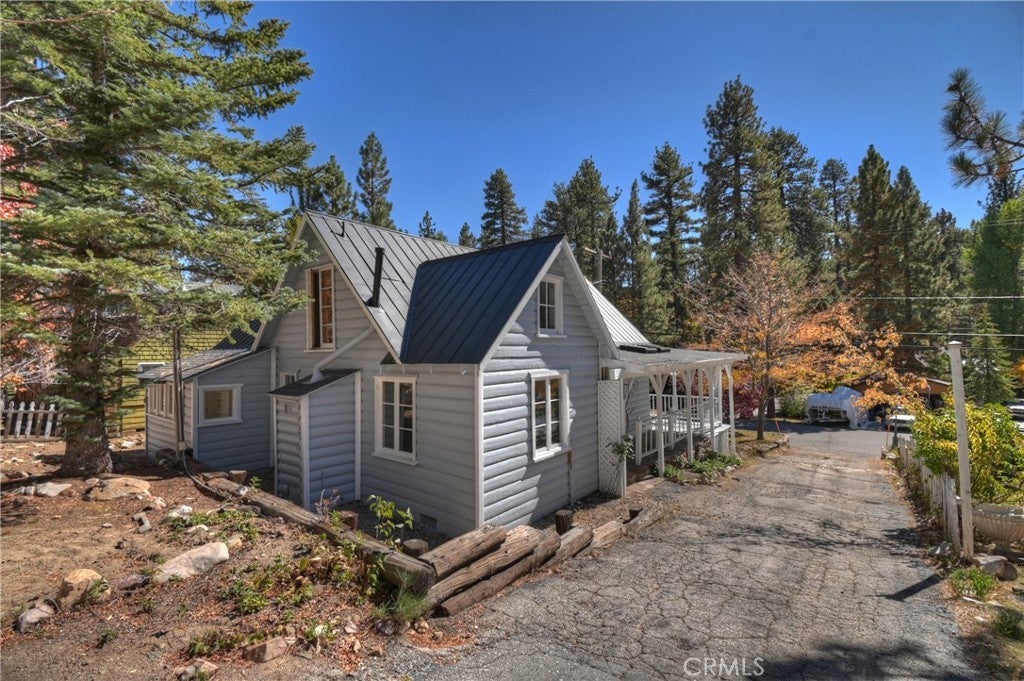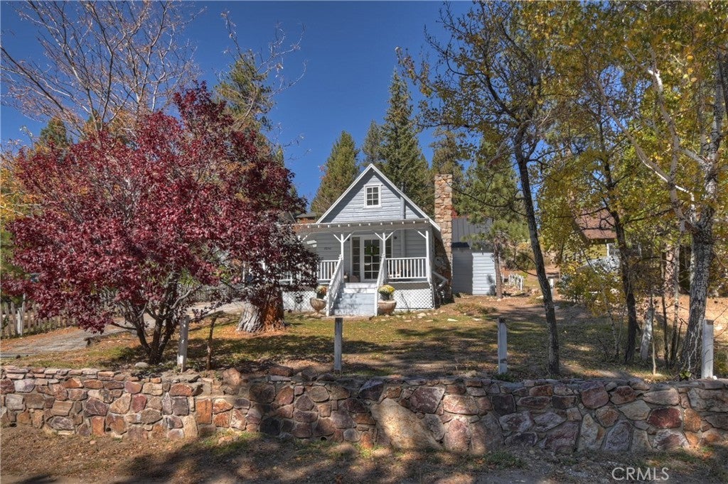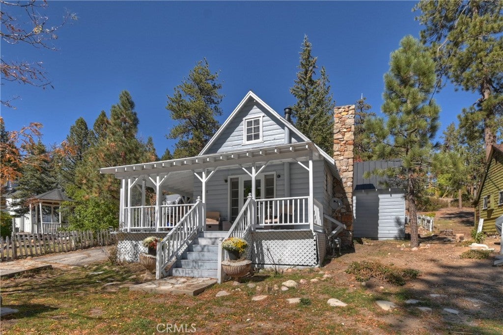 Charming mountain cottage located within yards of the lake, park, restaurants, and shopping in the heart of Big Bear Lake. The main cabin features one bedroom, one bathroom, and a loft area, offering a warm and inviting atmosphere with a natural stone fireplace and hardwood floors throughout. A separate detached studio guest cabin provides additional living space or potential rental opportunity, featuring open-beam ceilings, hardwood floors, and a full bathroom with a clawfoot tub. The property captures the Cozy Big Bear cottage feel with convenient proximity to the lake and village amenities. This unique property offers flexible use as a full-time residence, vacation retreat, or income-producing investment in a desirable lakeside neighborhood