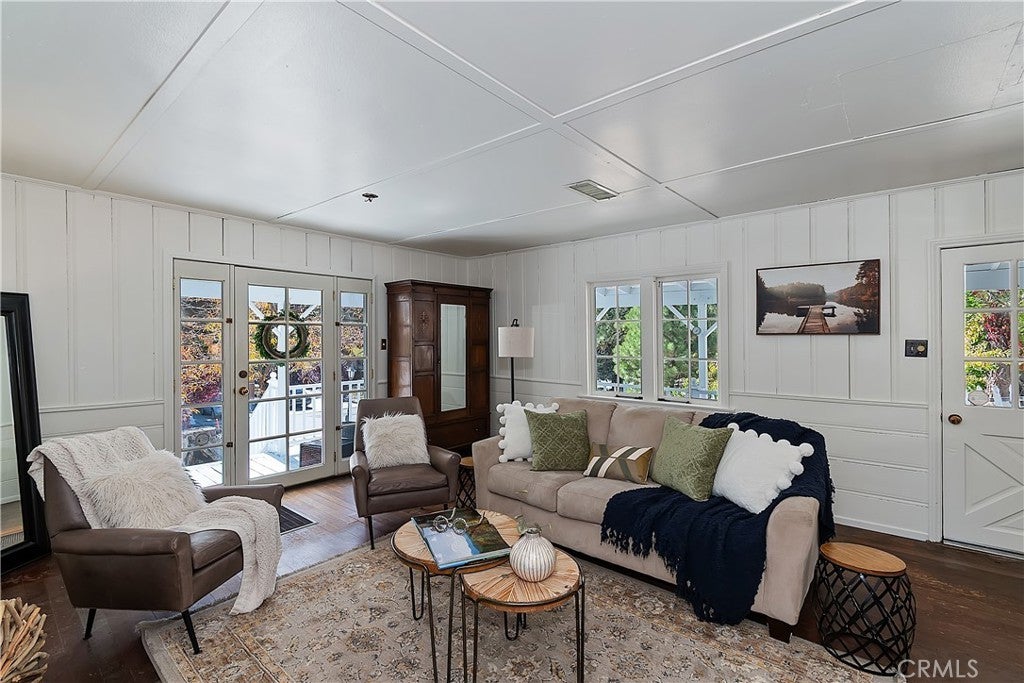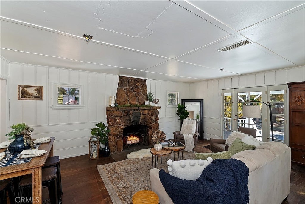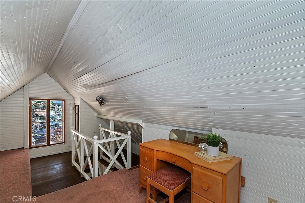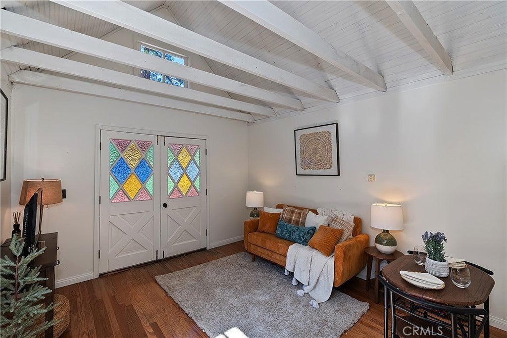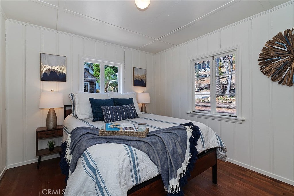 Charming mountain cottage located within yards of the lake, park, restaurants, and shopping in the heart of Big Bear Lake. The main cabin features one bedroom, one bathroom, and a loft area, offering a warm and inviting atmosphere with a natural stone fireplace and hardwood floors throughout. A separate detached studio guest cabin provides additional living space or potential rental opportunity, featuring open-beam ceilings, hardwood floors, and a full bathroom with a clawfoot tub. The property captures the Cozy Big Bear cottage feel with convenient proximity to the lake and village amenities. This unique property offers flexible use as a full-time residence, vacation retreat, or income-producing investment in a desirable lakeside neighborhood