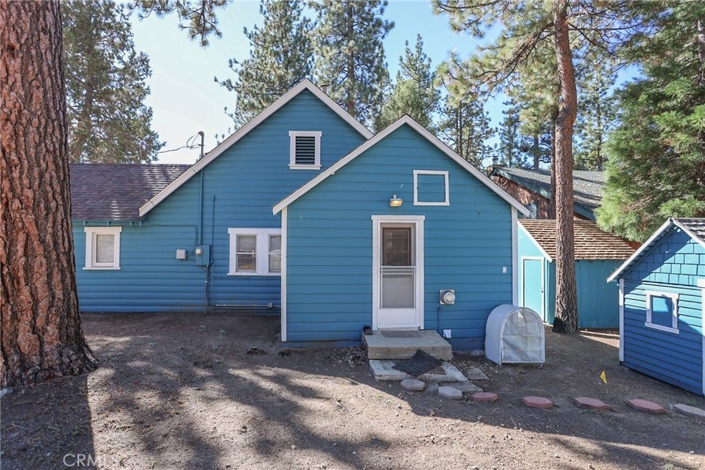 ~ CHARMING BIG BEAR RETREAT IN PRIME MOONRIDGE LOCATION ~ This classic Maltby style home sits on a large 10,000+ SF corner lot in one of the area's most desirable locations - just across the street from the new Rathbun Creek Trail walking path and a short walk to the up-and-coming Moonridge Corridor, where you'll have easy access to all it has to offer. Inside the 2 bedroom 1 bath home, you'll find a well-maintained interior featuring new flooring throughout, new appliances, and a beautiful native rock fireplace. This home also includes a bonus laundry/mud room, making it very functional. Outside there is a large patio for outdoor gatherings and BBQs and a spa looking out to the serenity of the mountains and even ski slope views. We have a 1 car garage and 2 separate outdoor sheds for lots of storage. It is a current STR (short-term rental) and sold completely furnished, this home is completely turn-key, just bring your toothbrush and start enjoying mountain living at its best!!