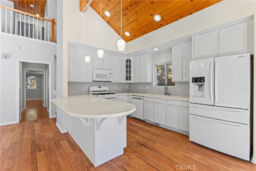 Off the Charts Pride of Ownership on this Completely Remodeled Dramatic 3-Story Residence boasting 2,340 sqft of Gleaming Hardwood Flooring with towering Mirror Sheen Knotty Pine Ceilings, Open Kitchen with Convection Oven and Barstool Counter opens to Dining and Living Room with Fireplace all Drenched in Natural Light, Dual Pane Tinted Windows throughout, Surround Sound on First and Second Floors, Primary Ensuite Bedroom, 2 Guest Bedrooms, Expansive Closet Spaces and Custom Shelving, Rare Over-sized Laundry Room with Side by Side Washer and Dryer, Entertaining Decking Areas with inviting Jacuzzi, Epoxy Flooring Immaculate Utility Room inclusive of Water Purification System, Natural Gas Forced Air Heating Unit and 2-On Demand Water Heaters one for the Residence and the other for the Heated Cement Driveway with 2-Zones, Family Room with Fireplace, Bonus Fenced Rear Yard and Storage Area Workshop complete with Stainless Dog Washing Sink and Toilet and of course the Garden Area is complete with Irrigation Sprinklers. Absolute Impeccable Turnkey Residence and one of the finest homes offered in this Treasured Community of Green Valley Lake!