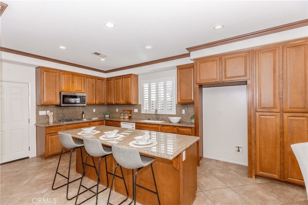 **Multi-generational living or Toy parking seekers*** this one’s for you! With RV parking and a flexible floor plan that fits every lifestyle, this home offers room for everyone and everything. From the moment you arrive, you’ll notice the beautiful curb appeal framed by tropical palms and low-maintenance landscaping and a peaceful front semi enclosed porch, setting the tone for what’s inside. Step through the front door into a spacious, light-filled home boasting over 3,600 square feet of comfort and function. The downstairs level offers a junior master suite with a private en-suite bath, perfect as in-law quarters or guests, plus a separate den ideal for a home office or playroom. At the heart of the home, the upgraded open-concept kitchen with center island flows seamlessly into the family room, featuring a cozy fireplace, crown molding, and generous natural light, an inviting space for gatherings and everyday living. Upstairs relax in the primary suite complete with a private balcony perfect for sipping on morning coffee, hearing nature, or watching the little ones play at the nearby park, a true retreat area that can double as a gym or home office, and a spa-style bathroom. Every bedroom includes its own walk-in closet, and the loft adds even more versatility for work or play. Step outside to your private backyard paradise, a lush, tropical setting with stamped-concrete patio, mature palms, and fruit trees creating a true oasis for relaxing or entertaining. Additional features include a three-car garage, ample storage, and RV parking for your toys or trailers. Located in one of the most sought-after neighborhoods in Murrieta/French Valley, this home sits within the highly acclaimed Murrieta Valley School District and is just minutes from parks, shopping, and dining. Welcome home to your own slice of paradise, where comfort, flexibility, and location all come together.