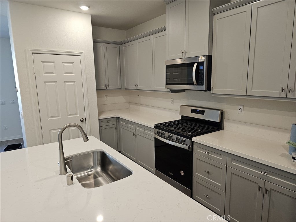 Moonstone at Sunset Ranch is a practically new townhome located in a newly built resort style community in south Ontario. Built in 2025. Featuring 3 bedrooms, 2.5 baths, two story with bright floorplan with living area, dining area and kitchen all open with high ceilings. The kitchen has a large island, lots of counter space, a pantry, stainless appliances with refrigerator included. The garage features and extra storage area, tankless water heater, opener and direct access into the home. Step upstairs, you will see the laundry room that includes a washer and dryer. The primary suite is very spacious with a large walkin closet and an ensuite bathroom with dual sinks, a walkin shower and a private toilet room. There are two more bedrooms and another bathroom to share. The hall bathroom has dual sinks and a bathtub/shower. You will save on utilities in this energy efficient home with paid off solar and dual pane windows. Your community features a pool, spa, dog park, two parks, pickleball court, sports courts and walking paths. This home is very conveniently located- close to Costco, 99 Ranch Market, Amazon Wherehouse, lots of shopping, restaurants, gyms, Cloverdale Marketplace, Eastvale Gateway and 15, 10 and 60 freeways. Ontario International Airport and Ontario Mills Mall are also close by.