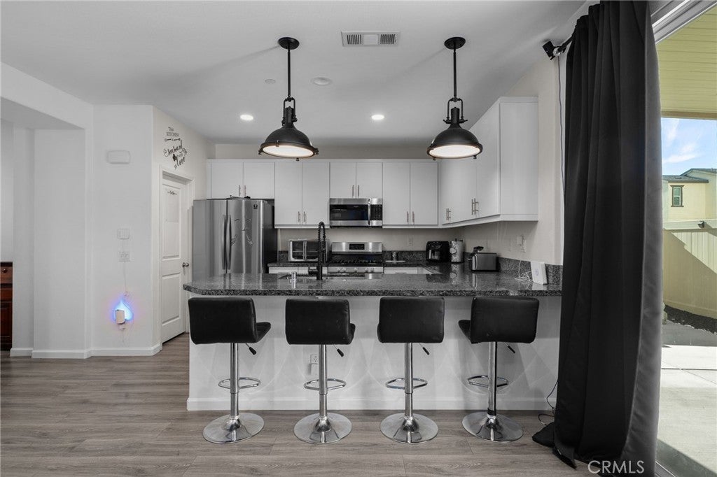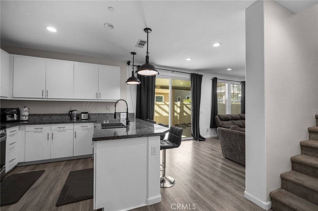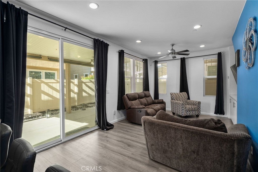 Step into this beautifully designed Jurupa Valley condo, offering a spacious, functional layout perfect for comfortable living. The main floor welcomes you with an open-concept flow featuring a kitchen with a granite peninsula, convenient bar seating, and a pantry for extra storage. The kitchen opens to the cozy family room, complete with built-in media storage, and sits adjacent to a guest-friendly powder bathroom. From the family room, step outside to the newly finished covered patio—a stylish, private outdoor retreat ideal for relaxing or entertaining. The second floor hosts a thoughtful and well-organized layout with three bedrooms, two bathrooms, and the laundry room. The primary bedroom offers a peaceful escape, paired with a large ensuite bathroom featuring dual sinks and built-in storage. Two additional secondary bedrooms share a full bathroom—also appointed with dual sinks—and this level is completed by the conveniently located laundry room. On the third floor, you’ll find a versatile loft area along with a fourth bedroom and an additional full bathroom—perfect for guests, multigenerational living, or anyone seeking added privacy. Additional highlights include paid-off solar for energy efficiency and long-term savings. The gated community also features a children’s playground. With its smart tri-level design, updated outdoor space, and generous room count, this condo provides exceptional comfort, flexibility, and value in a great Jurupa Valley location.