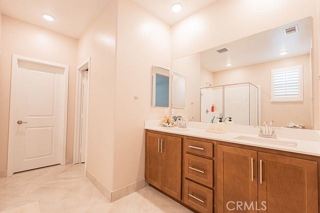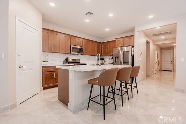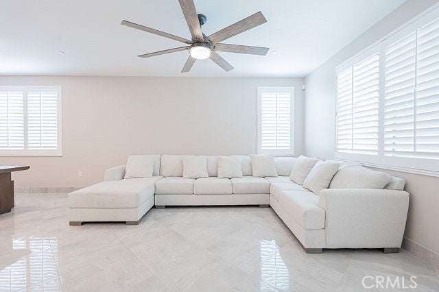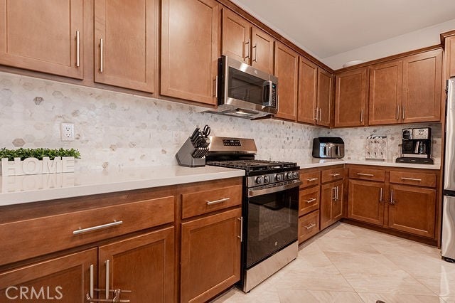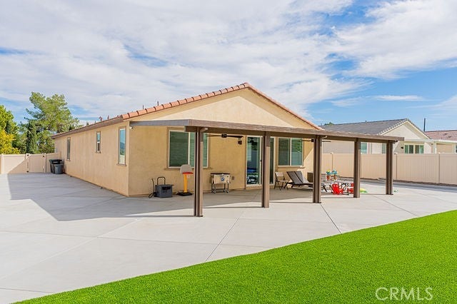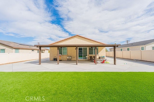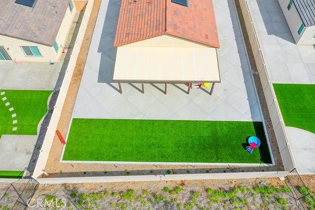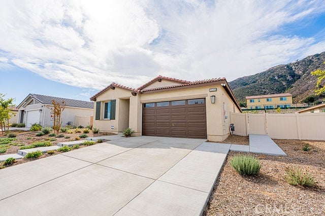 This stunning one-year-old home offers 4 bedrooms and 3 bathrooms with nearly 2,000 sq. ft. of living space. Over $100,000 in upgrades enhance every corner, including upgraded tile flooring throughout, custom backsplash, and a freshly painted interior. The open-concept kitchen features stainless steel appliances and modern finishes. Step outside to your private, low-maintenance backyard complete with turf, an extended 15-foot covered patio with cooling fans and lighting — perfect for entertaining year-round. The garage boasts epoxy flooring and a full camera security system for peace of mind. Additional highlights include shutters on every window, potential RV parking, and one of the larger lots in the community. Conveniently located near schools, shopping, and freeways — this home blends comfort, style, and function in a prime location!