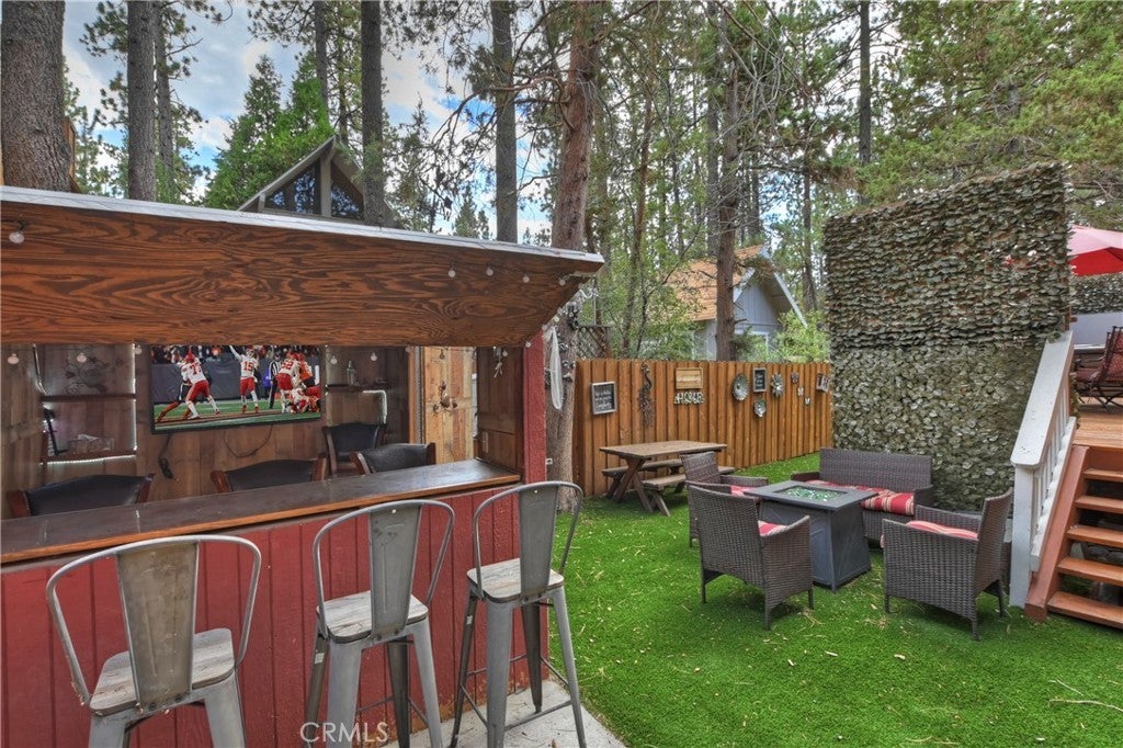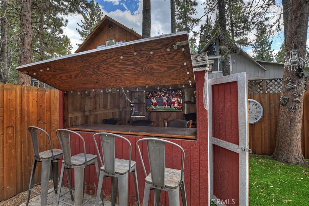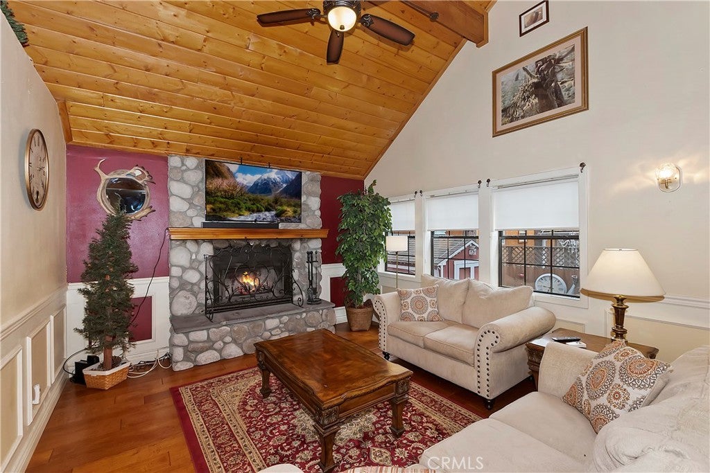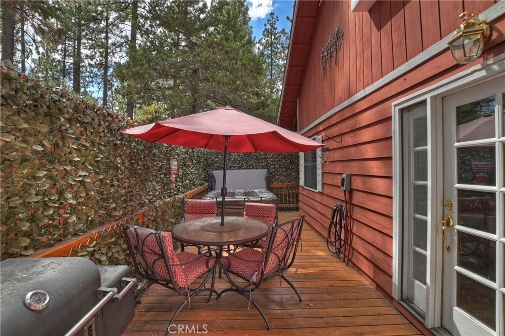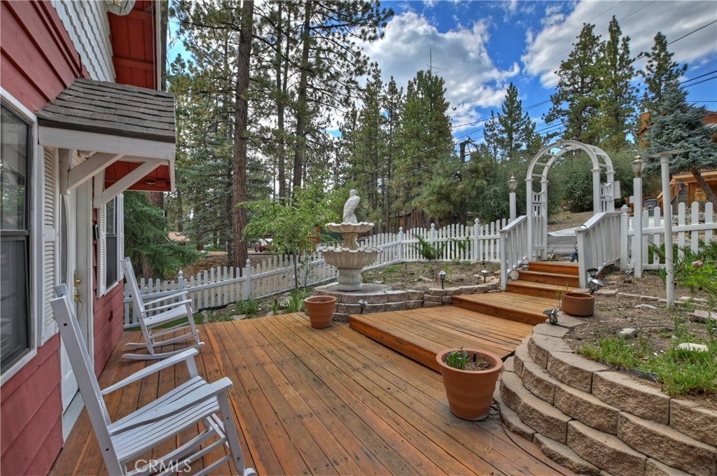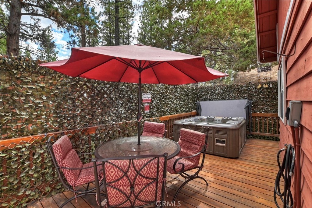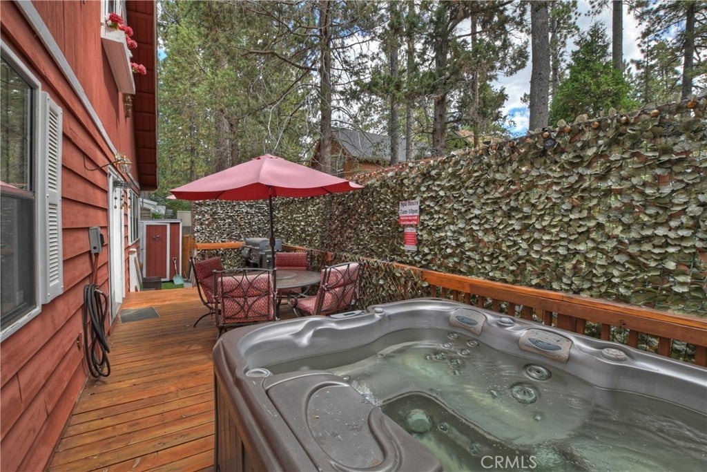 SOLAR, ON GRID ELECTRIC AND WHOLE HOUSE GENERATOR. Step into this energy efficient, family friendly 4-bedroom 3 bath 2737 sq. ft. home. Featuring owned SOLAR and also on the grid of Bear Valley Electric AND a backup whole house generator. Never be without power again! Don't let the age fool you, original house was 500 sq ft there was a 2200 sq ft addition added in 2003. Master suite on main level with huge walk-in closet. You will enjoy instant hot water with the tankless water heater. Open floor plan with 2 living rooms, vaulted T&G ceilings, hardwood floors and a cozy fireplace. Beautiful fountain in front yard as you sit on the front porch and enjoy the peacefulness of the area. Go to the back yard for a hot bubbling jacuzzi waiting for you surrounded with patio furniture, bbq and an outdoor bar! Storage shed and fenced yard for added security and safety. Parking for 4 cars. Only a block away from the zoo and Moonridge Village shops and less than a mile from Bear Mountain Ski Resort. Free shuttle to the ski resort is only a block away.