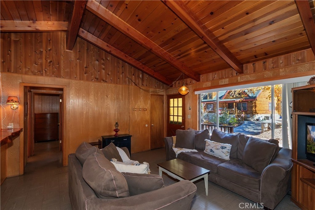 Beamed Ceilings, Breakfast Bar, Cathedral Ceiling(s), Eat-in Kitchen, Open Floorplan, Wood Product Walls