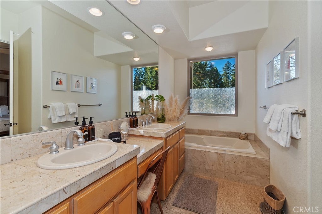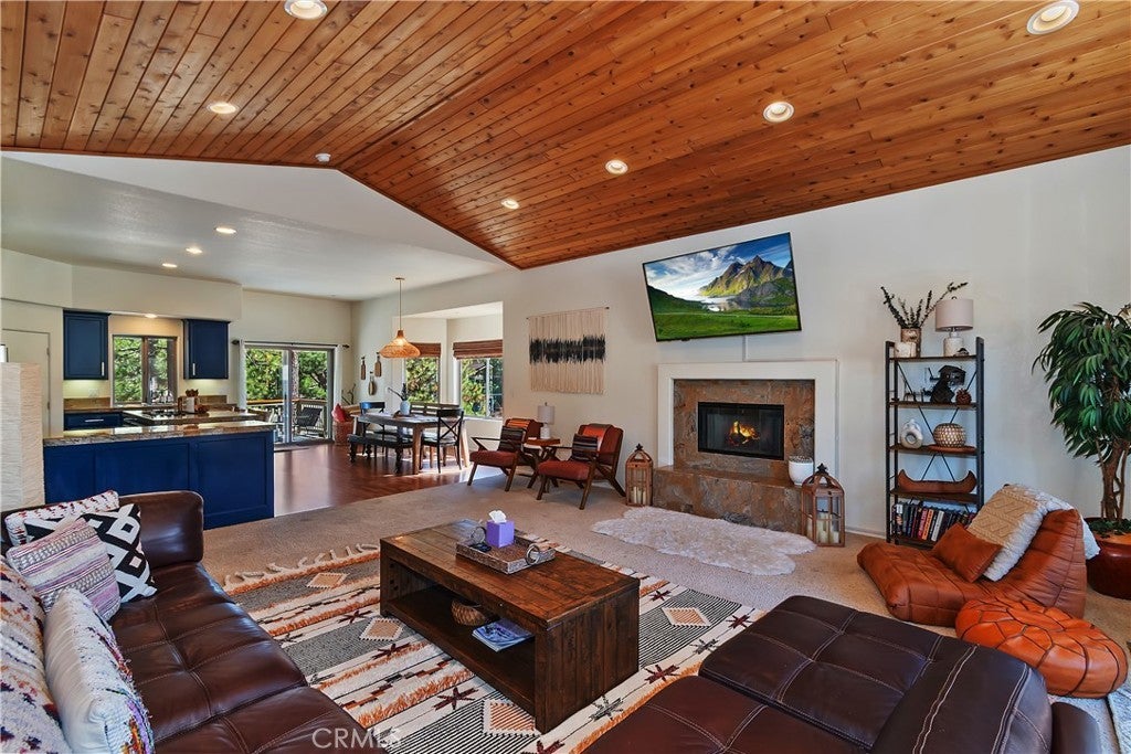 Breakfast Bar, Cathedral Ceiling(s), Eat-in Kitchen, Granite Counters, Open Floorplan, Pantry, Recessed Lighting, Bedroom on Main Level, Entrance Foyer, Main Level Primary, Primary Suite, Living Room Deck Attached
